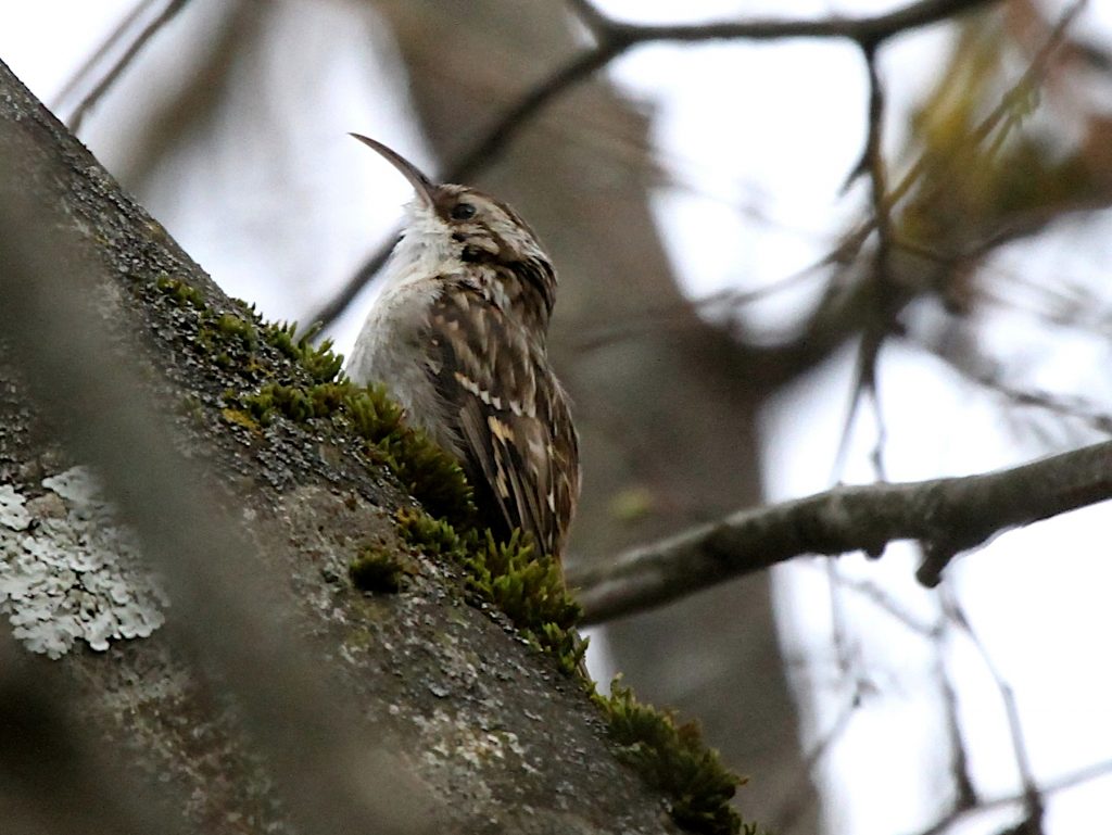 En épiant les oiseaux à leur baignoire, j’ai été survolé par un Grimpereau qui est allé explorer un tronc juste au dessus de moi. Il était tellement inconscient de ma présence qu’il a même fait un brin de toilette.