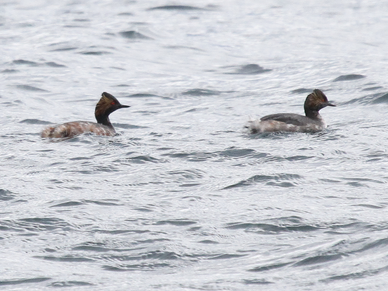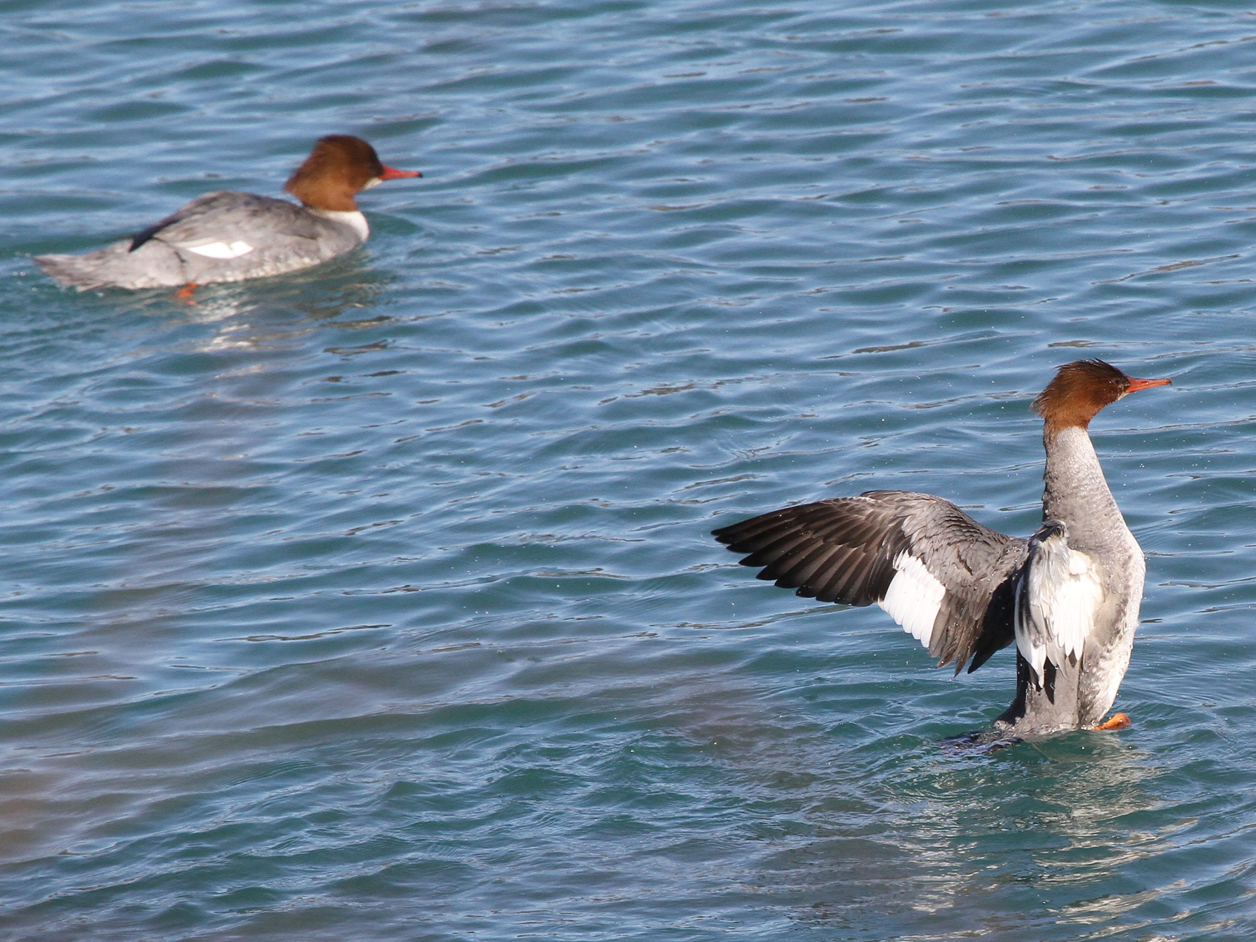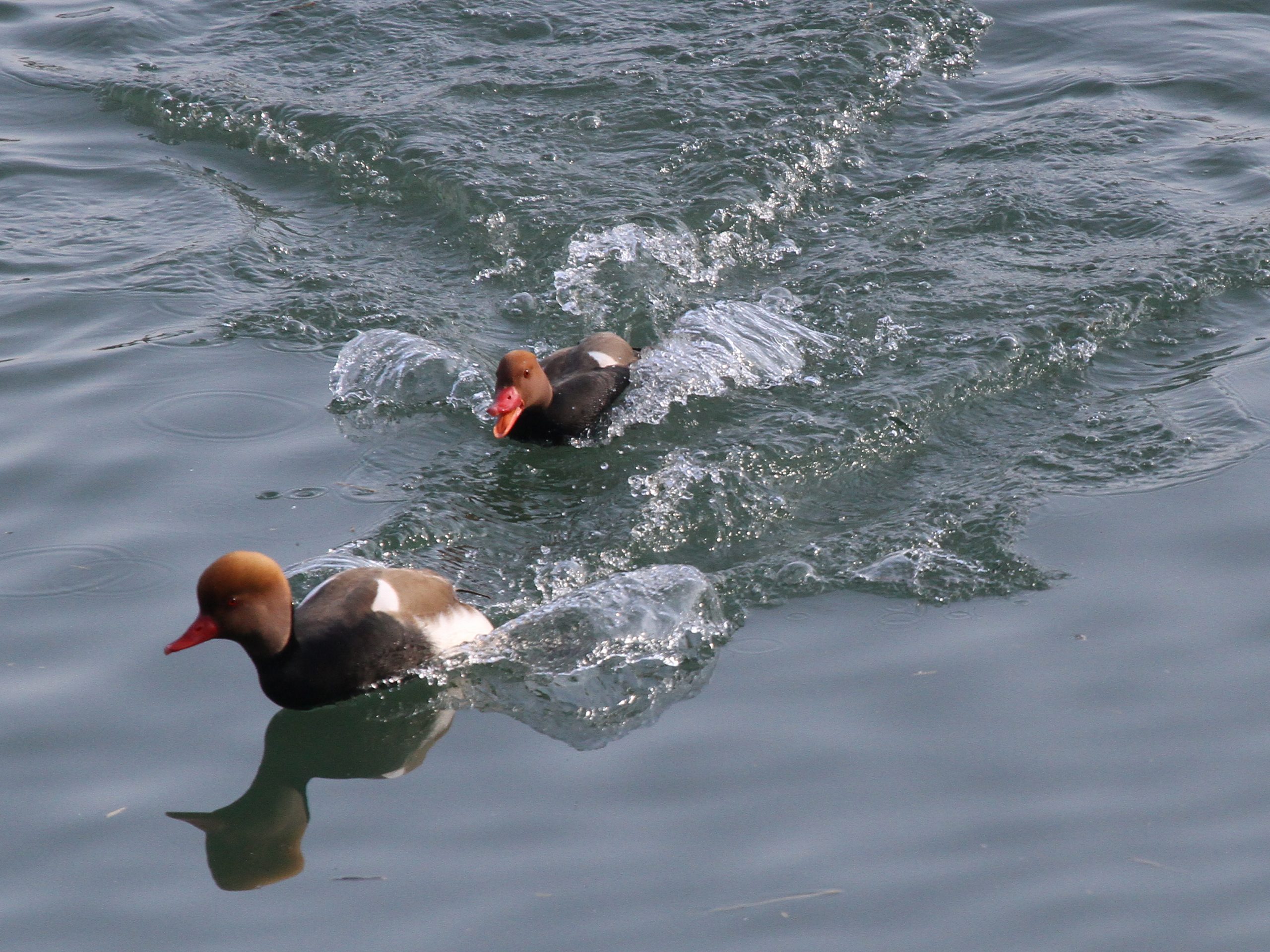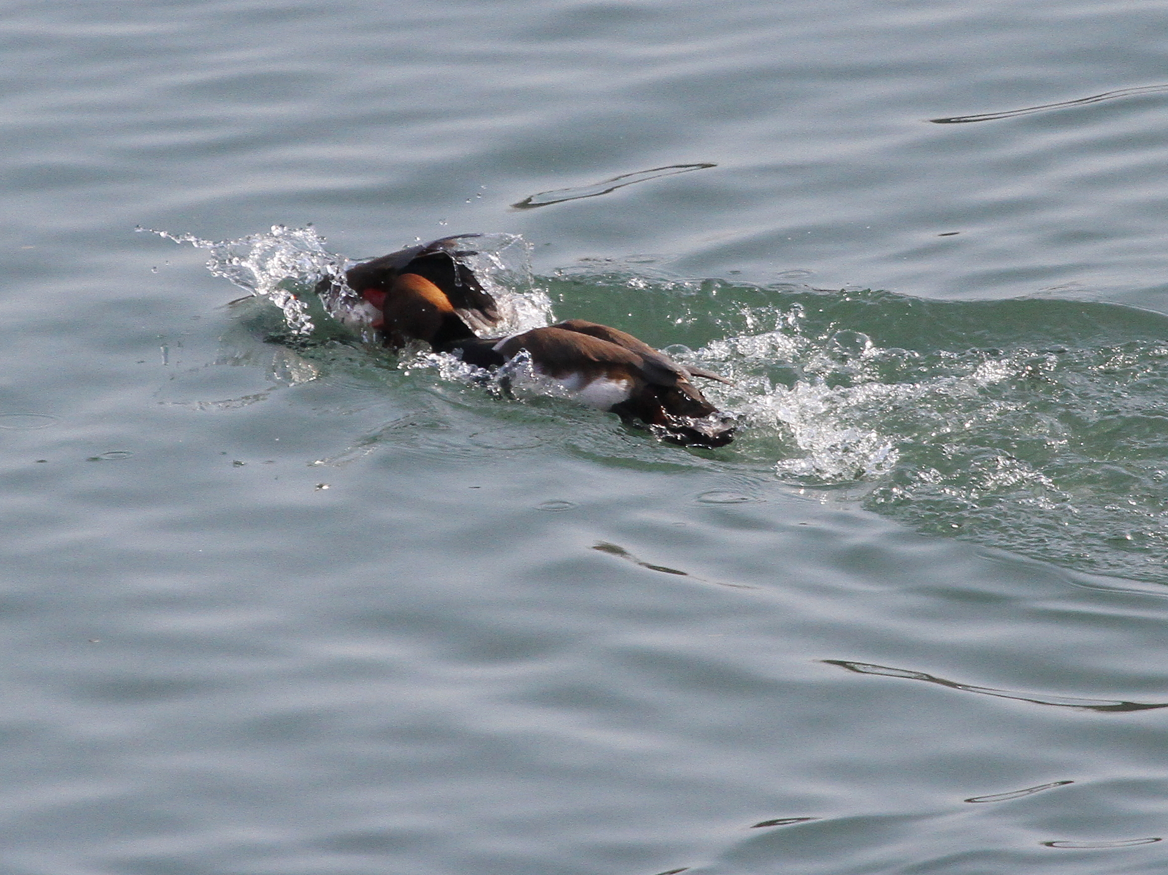 Du côté des Fuligules morillons, l’agitation autour des femelles est toujours intense. Les mâles ont enfin leur huppe bien développée, c’est certain qu’ainsi ils ont plus de chances de séduire une partenaire.
