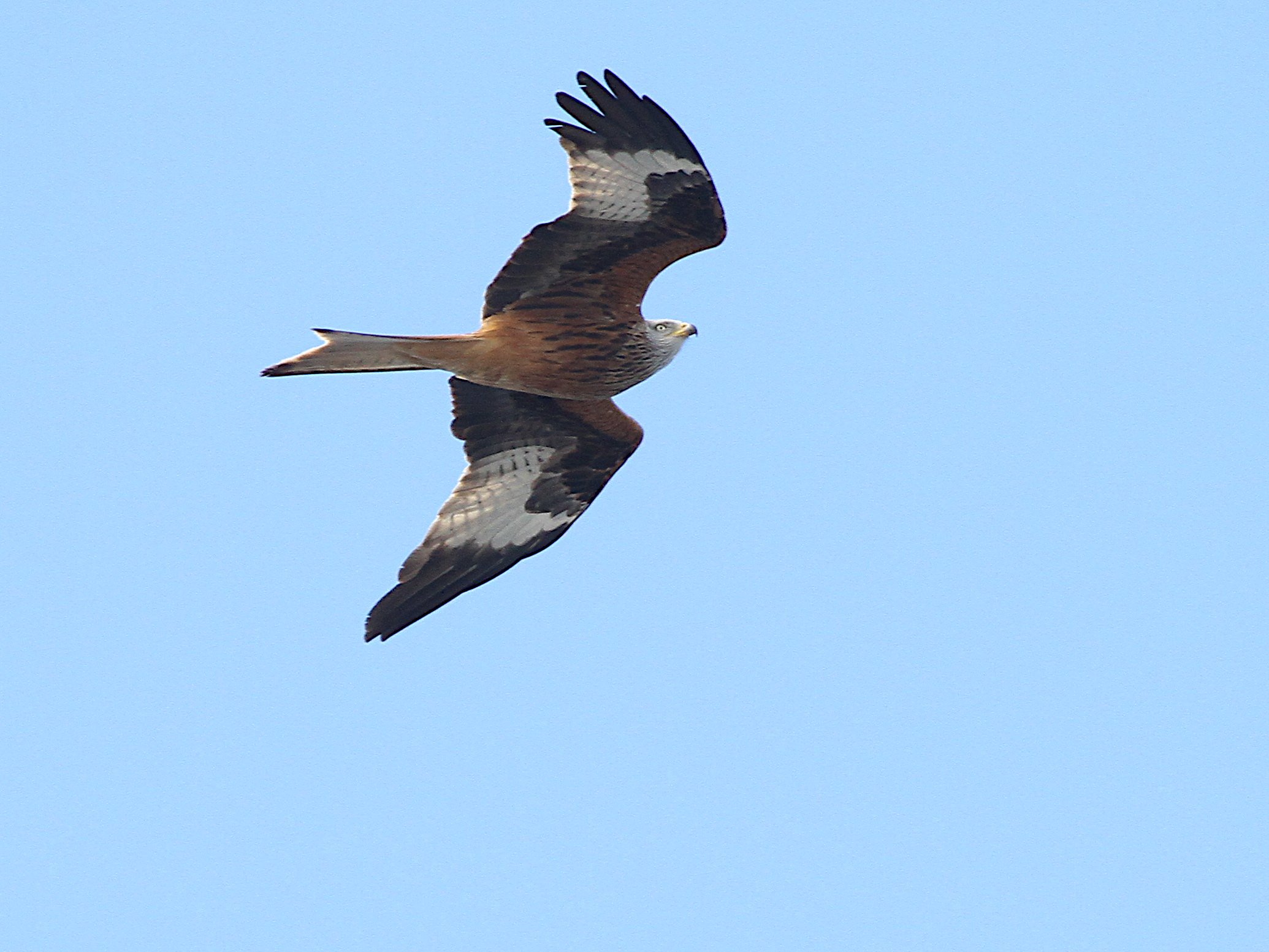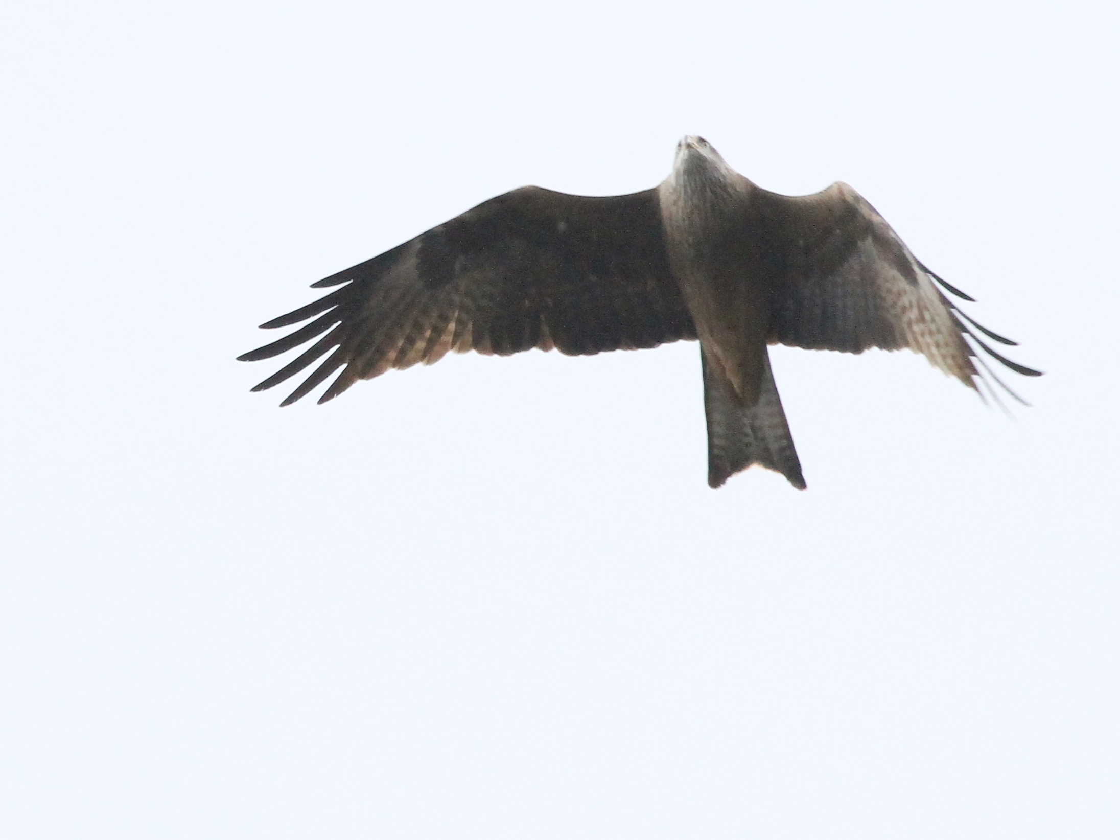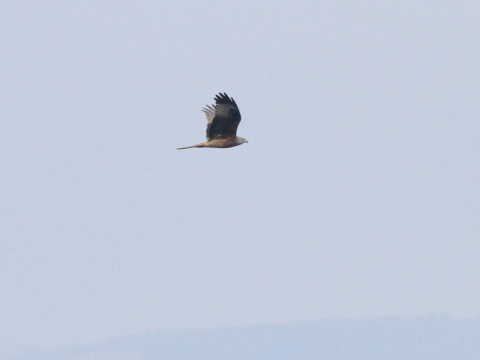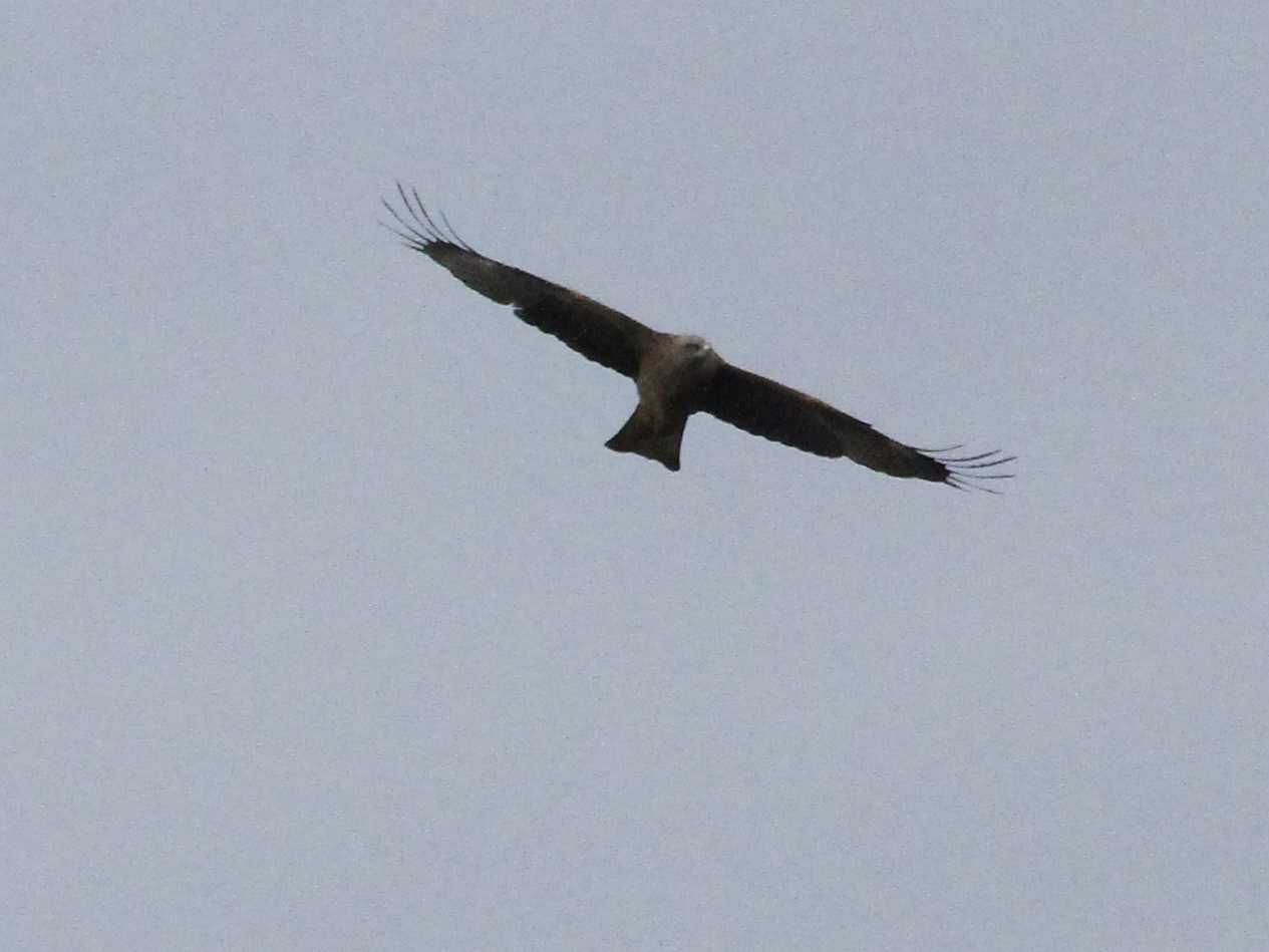 Bien entendu, les grands rapaces migrateurs continuent à passer dans le ciel. Voici le Milan royal.
