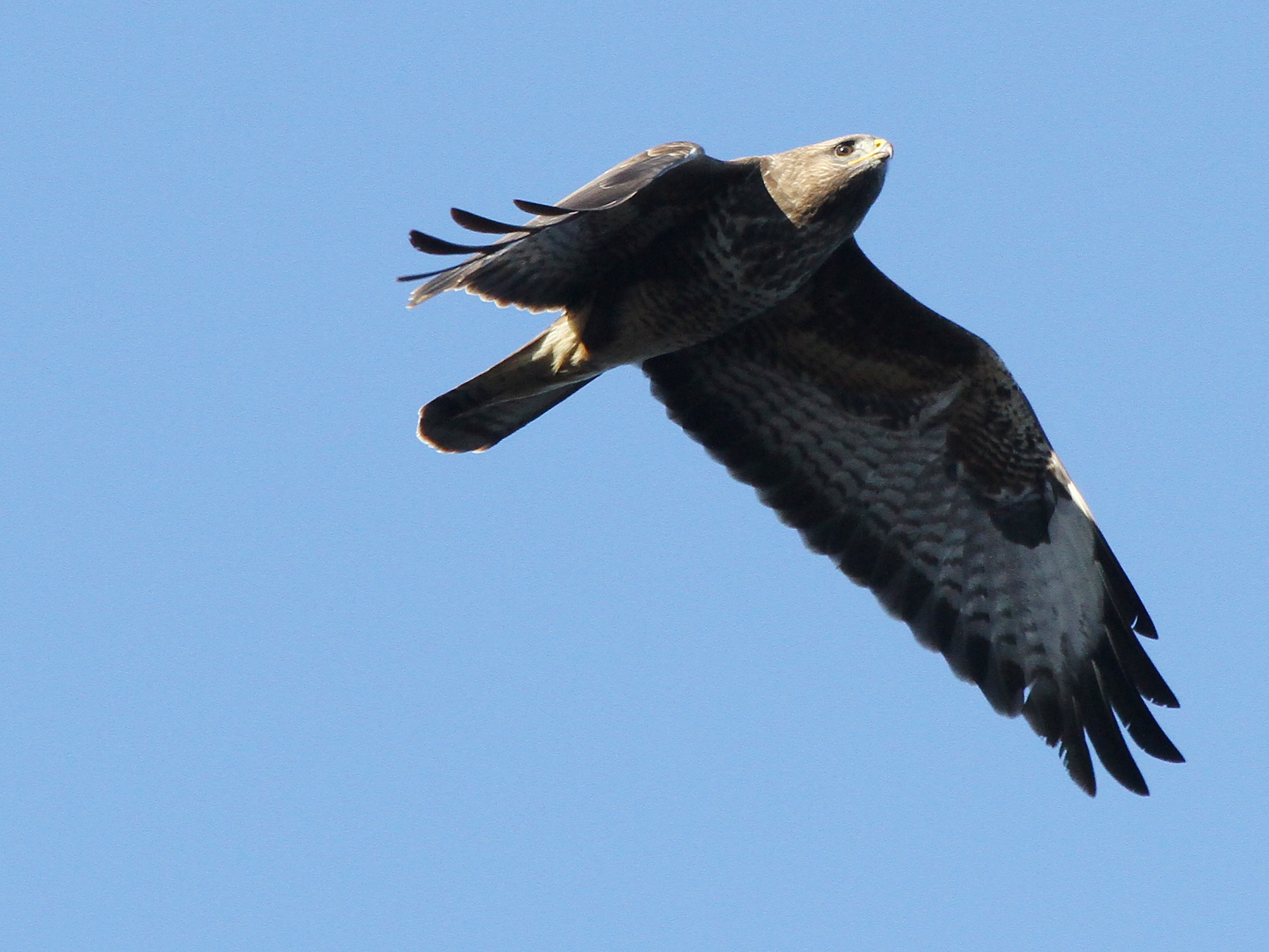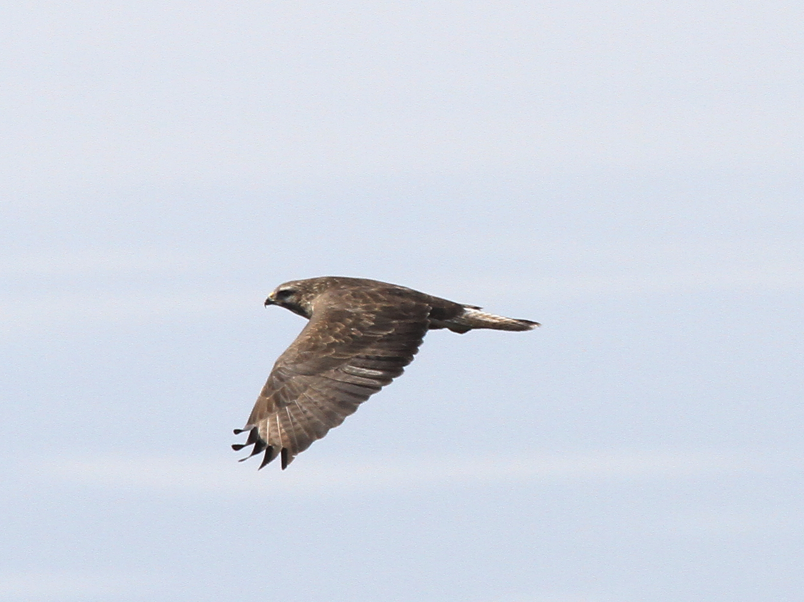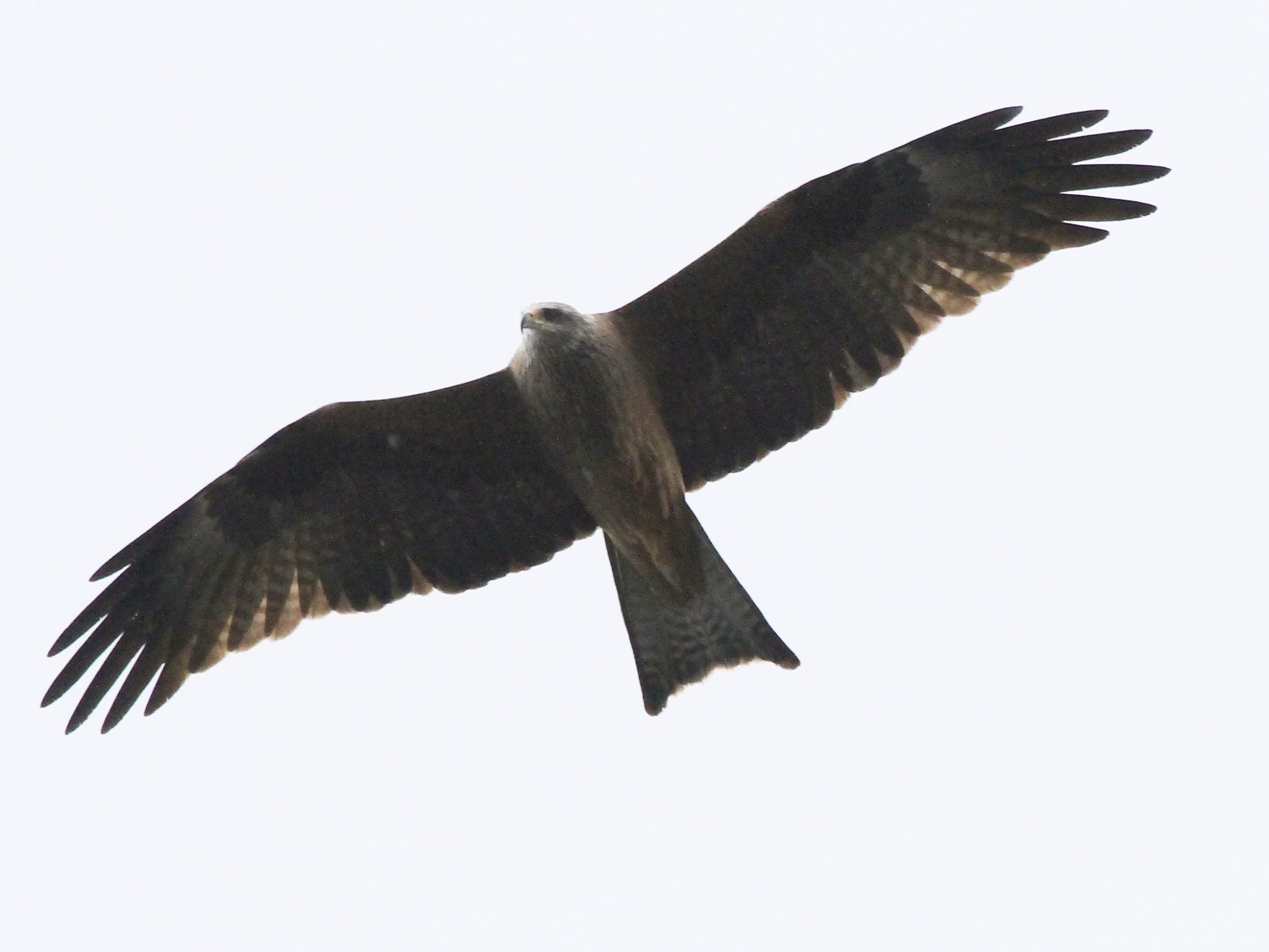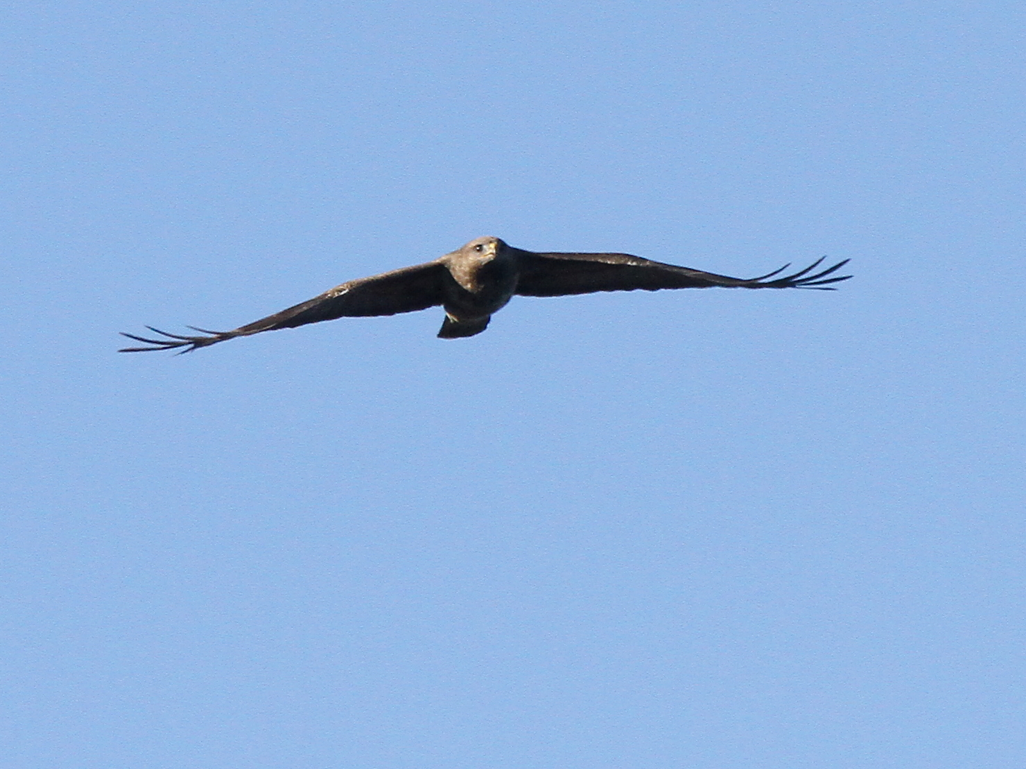 Bien entendu, les grands rapaces migrateurs continuent à passer dans le ciel. Voici le Milan royal.