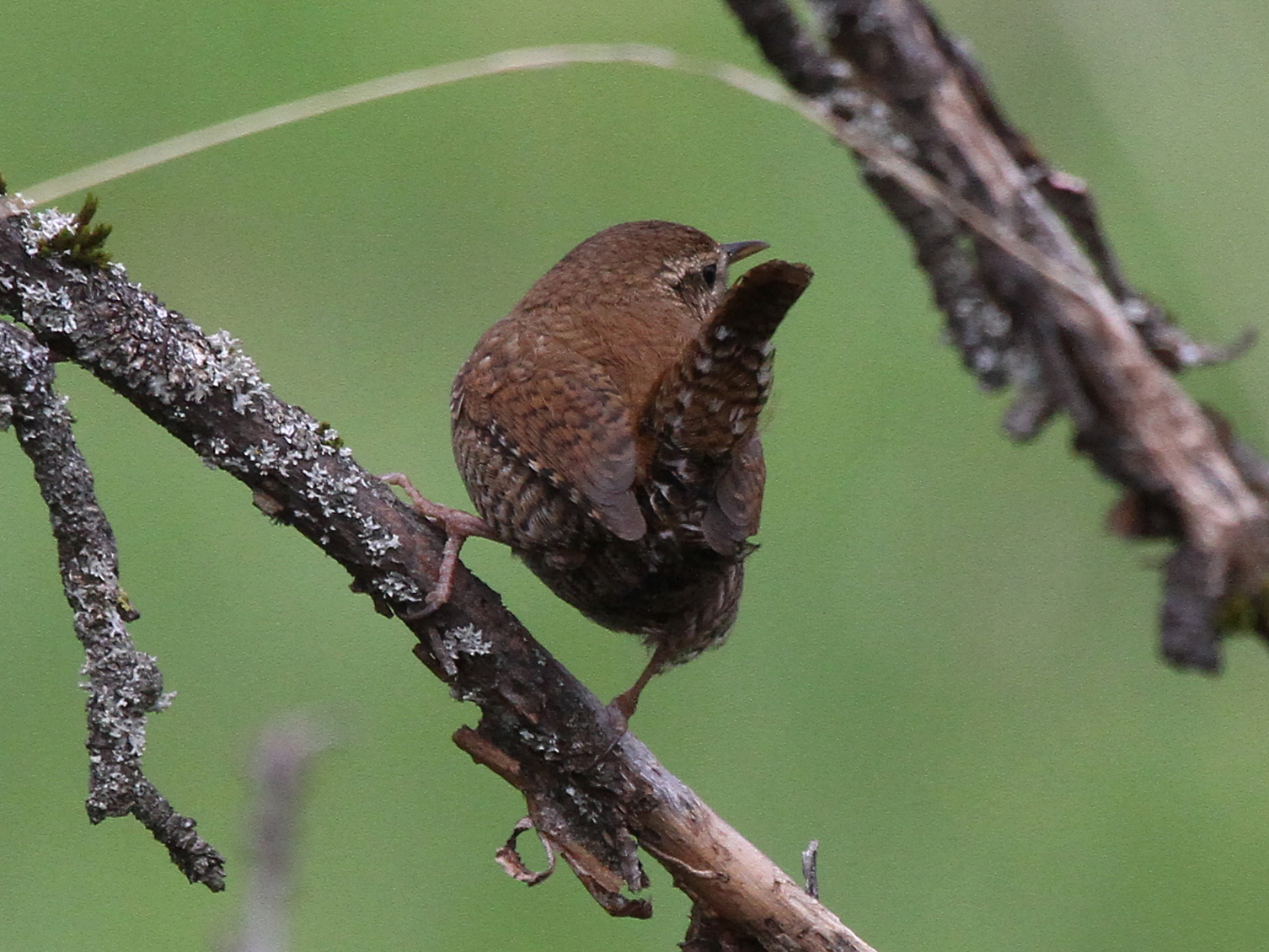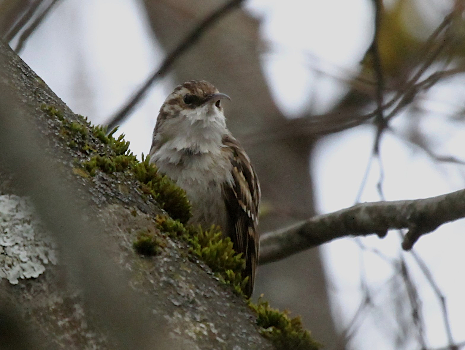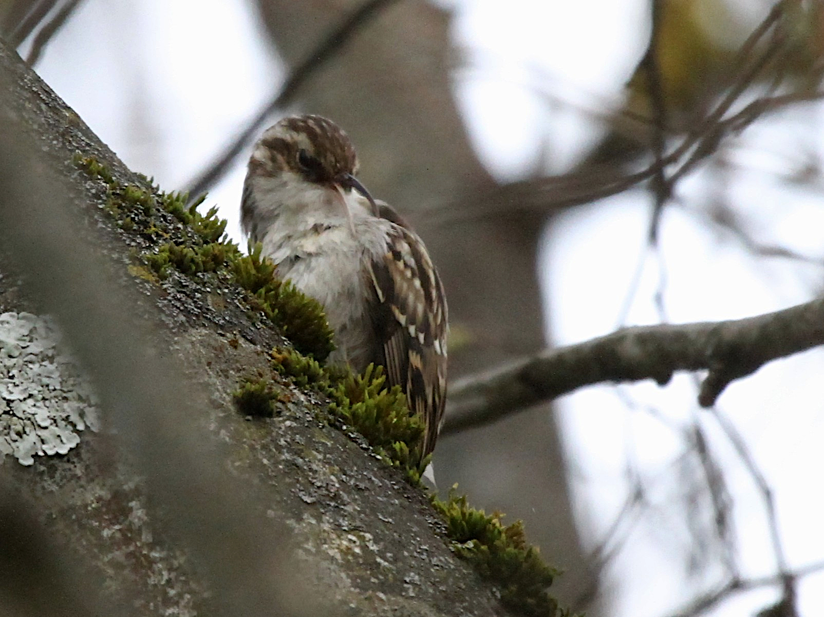 En épiant les oiseaux à leur baignoire, j’ai été survolé par un Grimpereau qui est allé explorer un tronc juste au dessus de moi. Il était tellement inconscient de ma présence qu’il a même fait un brin de toilette.