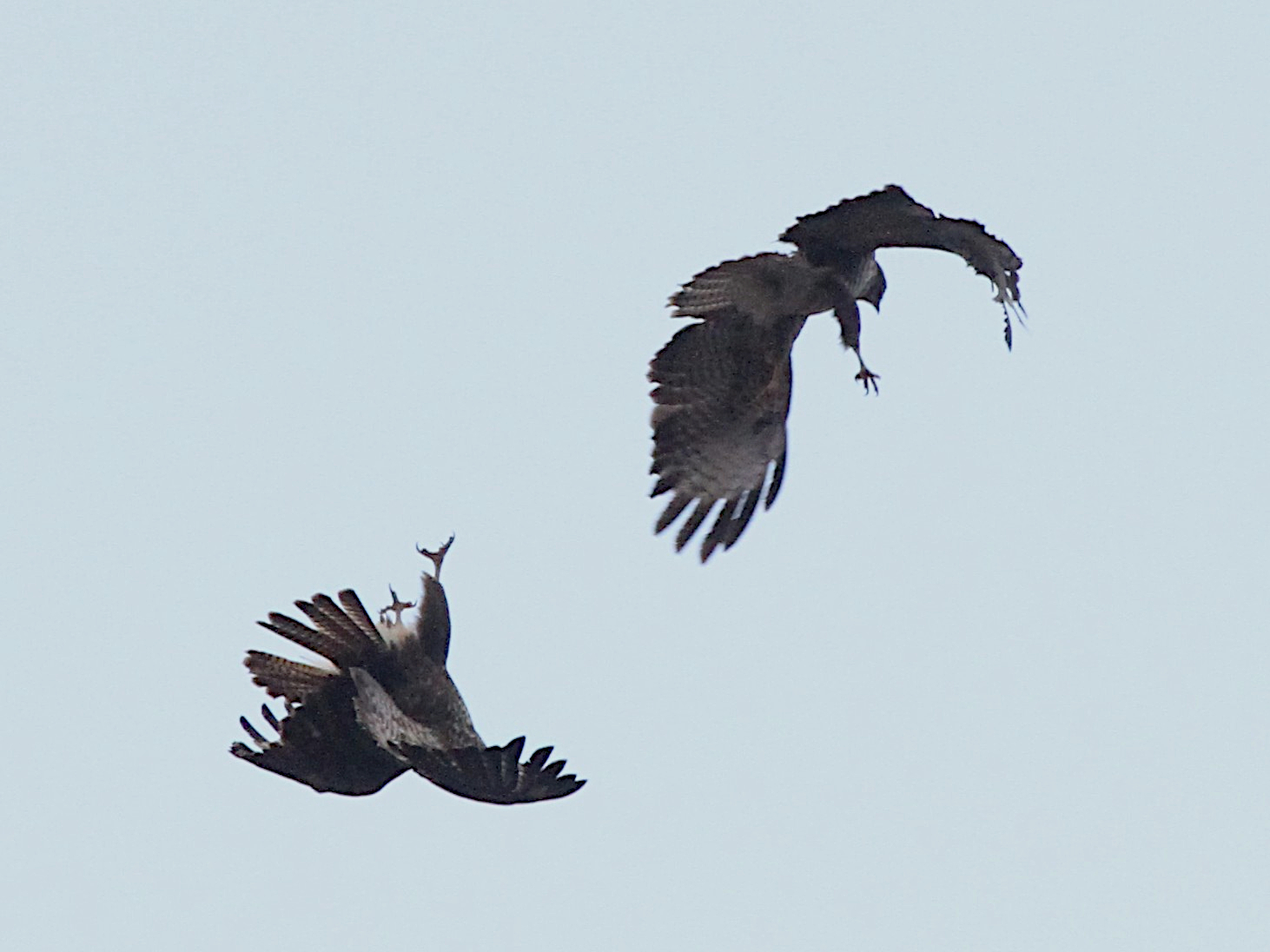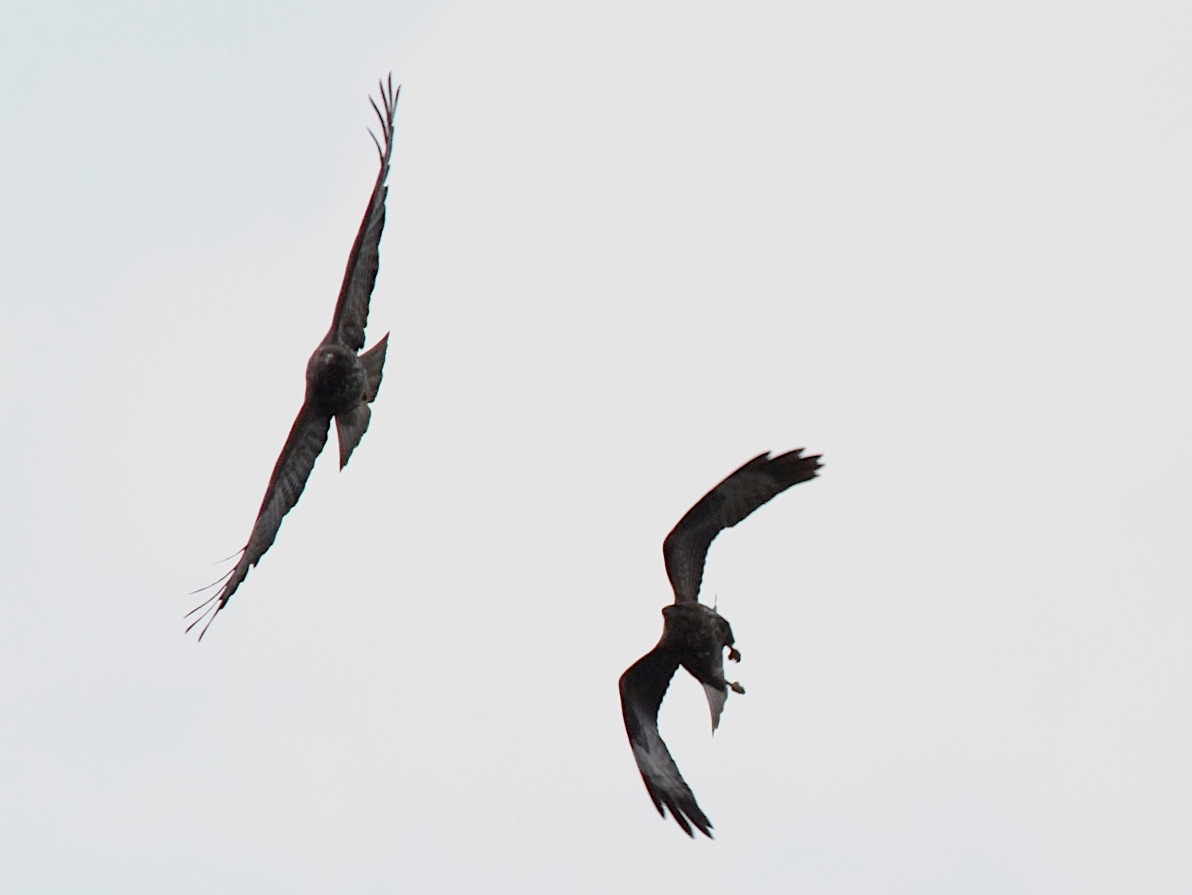 Le Milan noir passe aussi en grand nombre et certains des oiseaux « locaux » sont revenus sur leurs perchoirs préférés. Il est difficile d’affirmer que ce sont les mêmes oiseaux que l’an dernier, faute de signe distinctif, mais le comportement – utilisation d’une série de perchoirs, nuit passée auprès d’un ancien nid – donnent quelques indications. J’ai aussi vu, migrateur ou local je ne sais pas, un Milan noir se ravitailler en vol, sans réussir à identifier le casse-croûte.