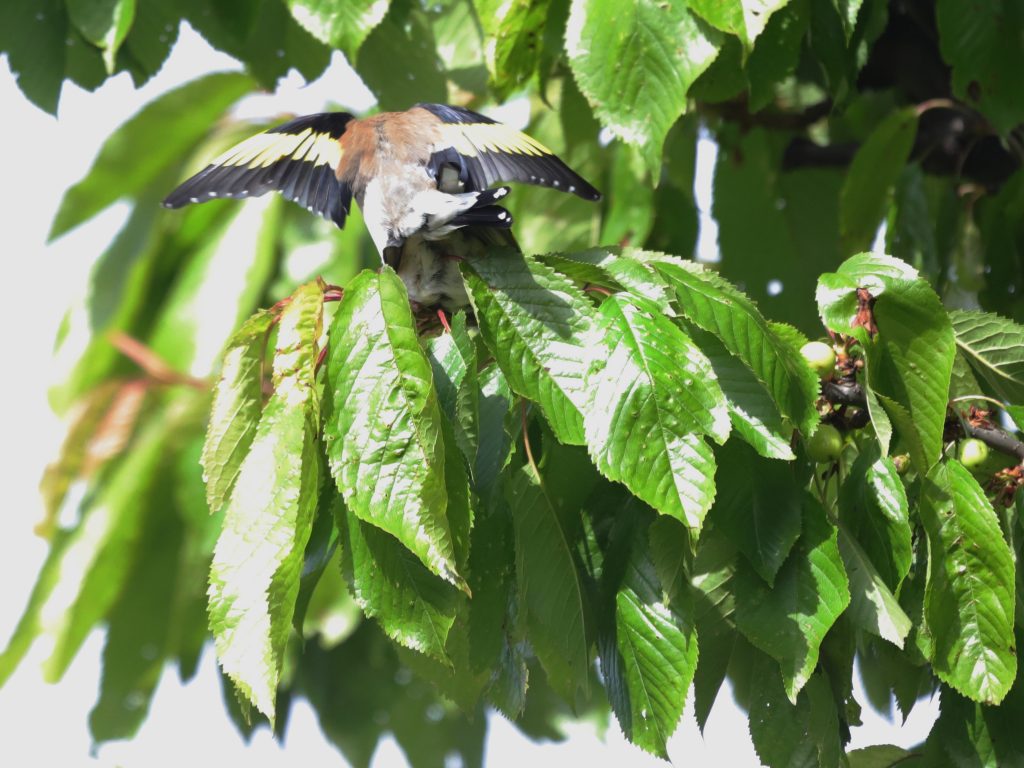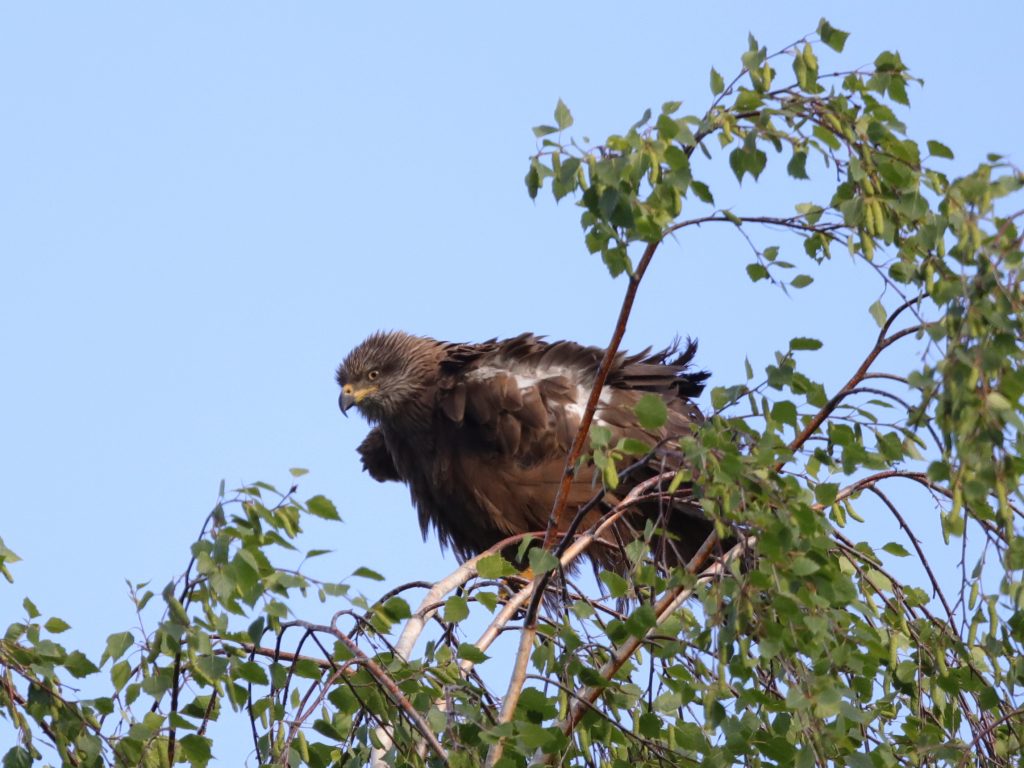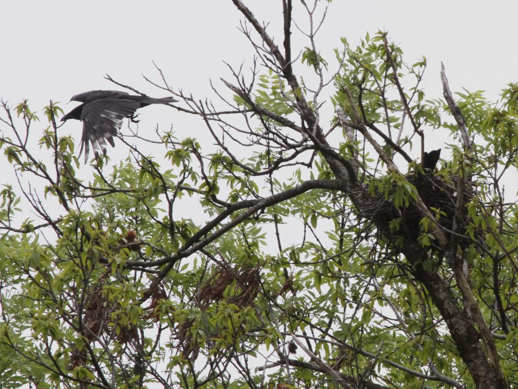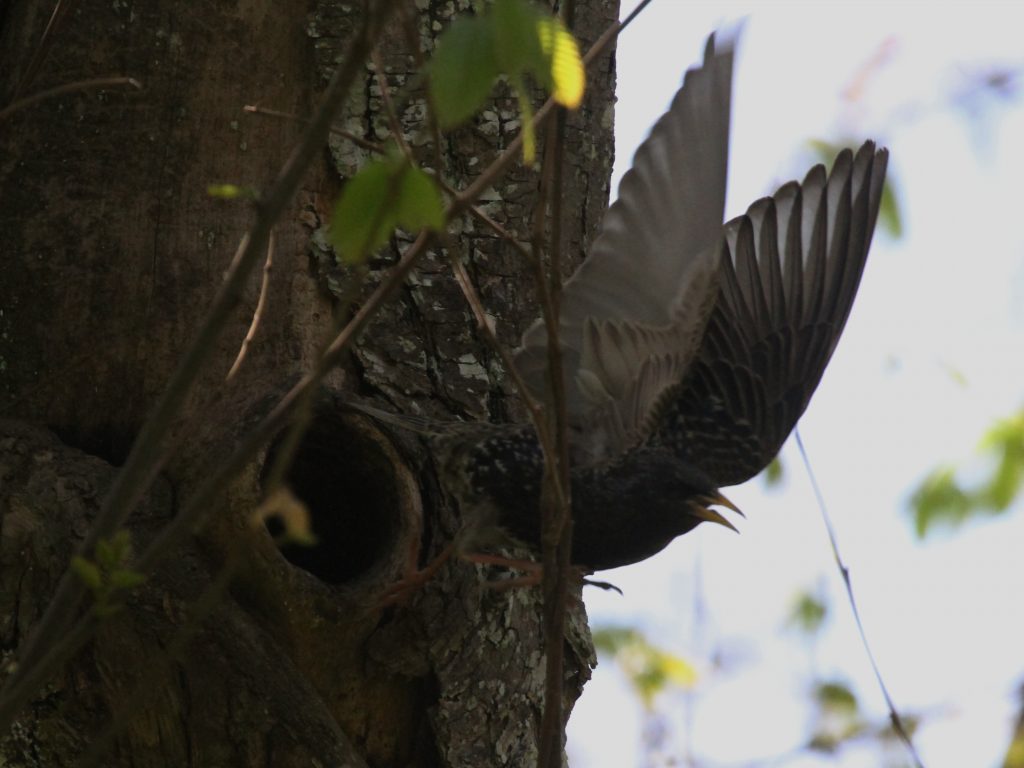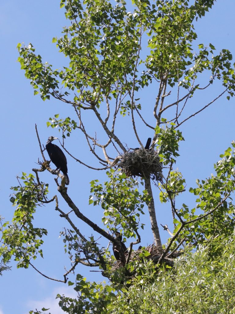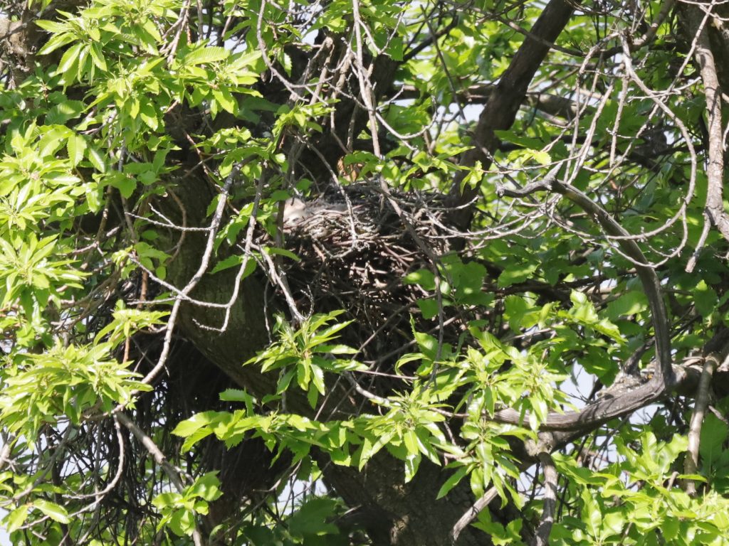 Les Milans noirs, qui couvaient encore la semaine dernière, sont maintenant dans l’obligation de nourrir leurs poussins. Je n’ai pu voir s’il y en avait deux ou trois. Si les feuilles ne se développent pas de trop, je pourrai contrôler dans quelques jours, quand ils seront plus grands.