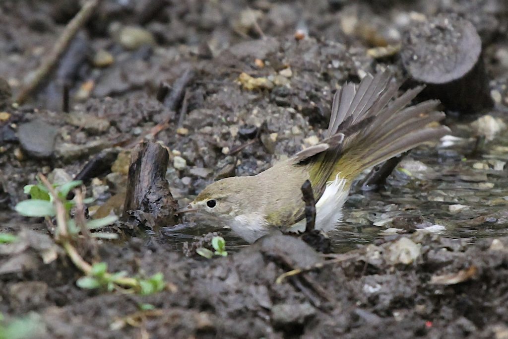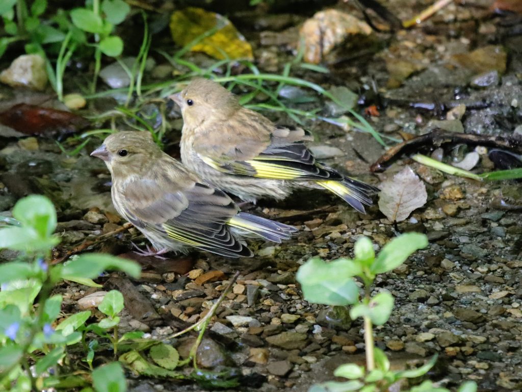 Le Verdier d’Europe, qui partage ci-dessus le bain du Chardonneret, est lui aussi consommateur de graines.