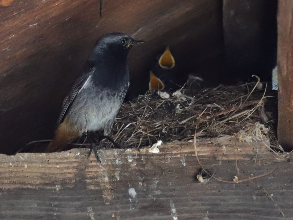 … et le Rougequeue noir. Trois poussins au moins à nourrir du matin au soir, cela fait pas mal d’insectes et d’araignées capturés.