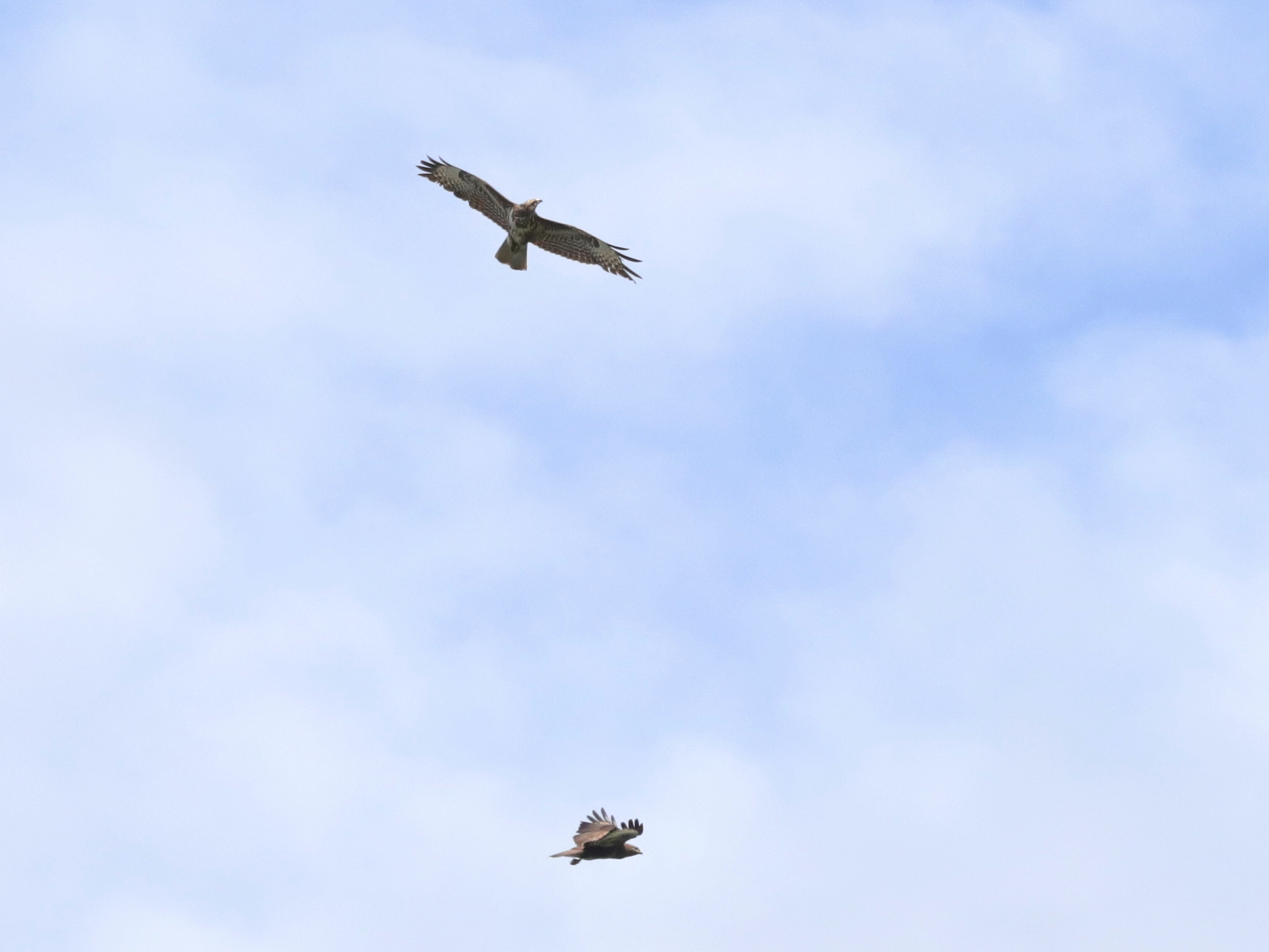 Les Buses variables se livrent en ce moment à des appels et des acrobaties qui font penser à du vol nuptial.