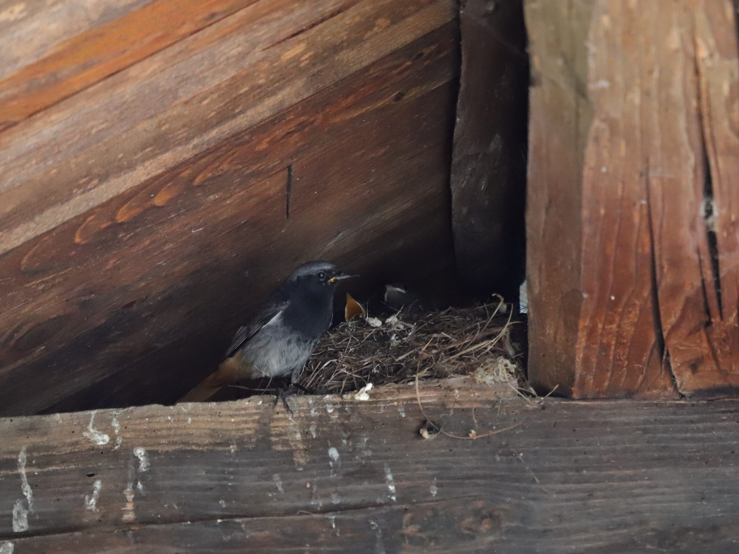 … et le Rougequeue noir. Trois poussins au moins à nourrir du matin au soir, cela fait pas mal d’insectes et d’araignées capturés.