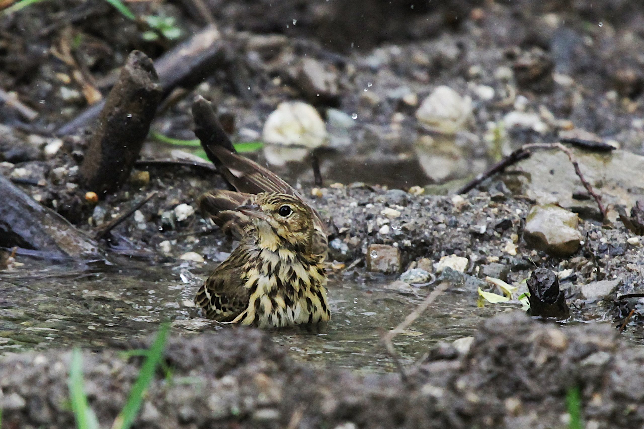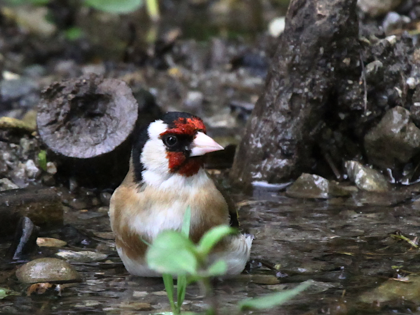 Le Verdier d’Europe, qui partage ci-dessus le bain du Chardonneret, est lui aussi consommateur de graines.