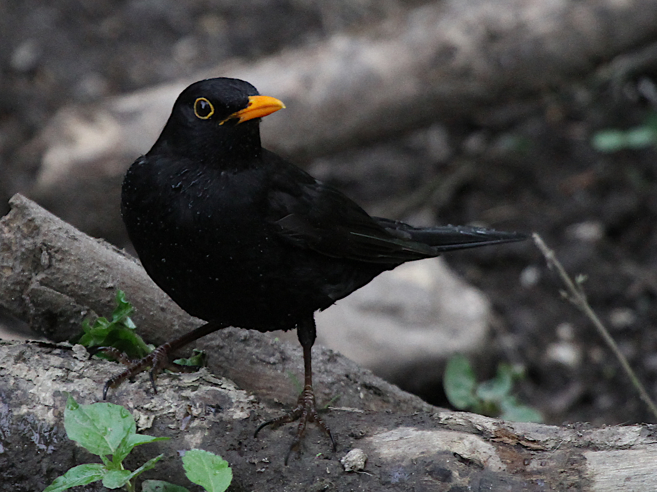 Certains Merles noirs préparent une nichée, ici c’est une femelle qui rassemble des fibres, perchée sur l’arceau d’une benne à verre – pas très bucolique mais au moins photogénique.