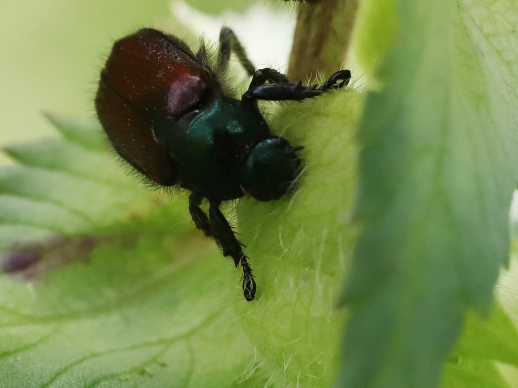 Je n’ai pu identifier ces deux coléoptères mais les antennes en « feuille », signe disctinctif des mâles, en font une jolie photo.