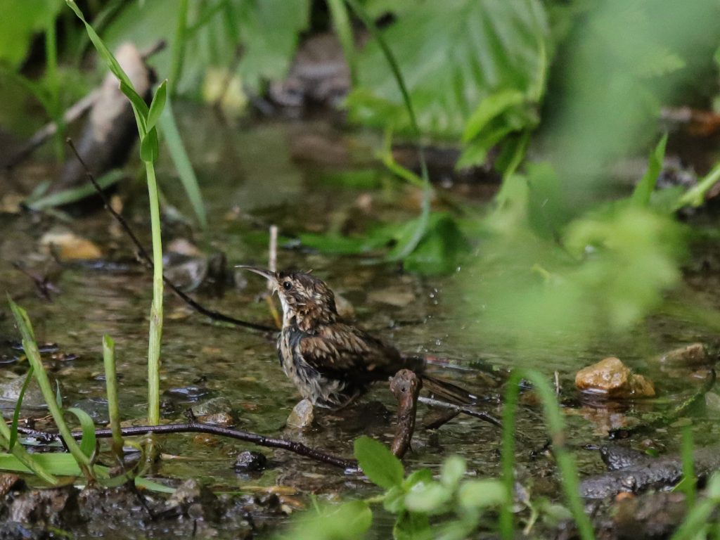 Pour la première fois depuis que je photographie des oiseaux à la source, j’ai observé un Grimpereau prenant son bain. Difficile ensuite de dire de quel grimpereau il s’agit puisque c’est le motif des « échelles » sur les ailes et la longueur de l’ongle postérieur qui donnent des indices.