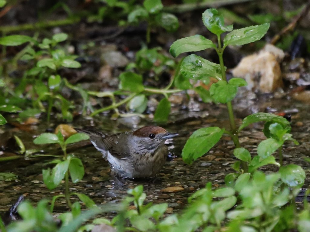 Re-voici, puisque ce sont des oiseaux observés à chaque fois que je passe à la source, des Fauvettes à tête noire – femelle avec la tête rousse.