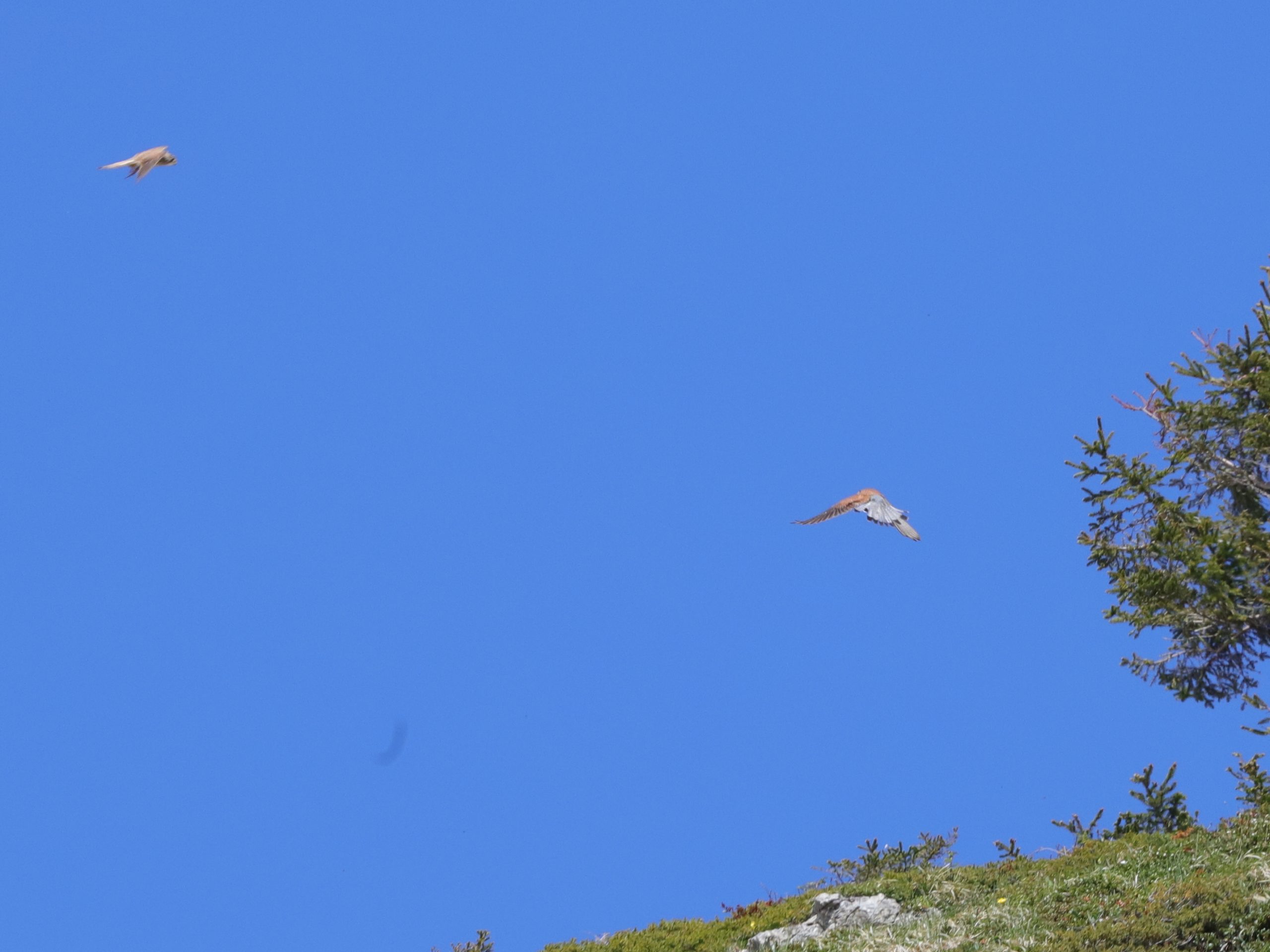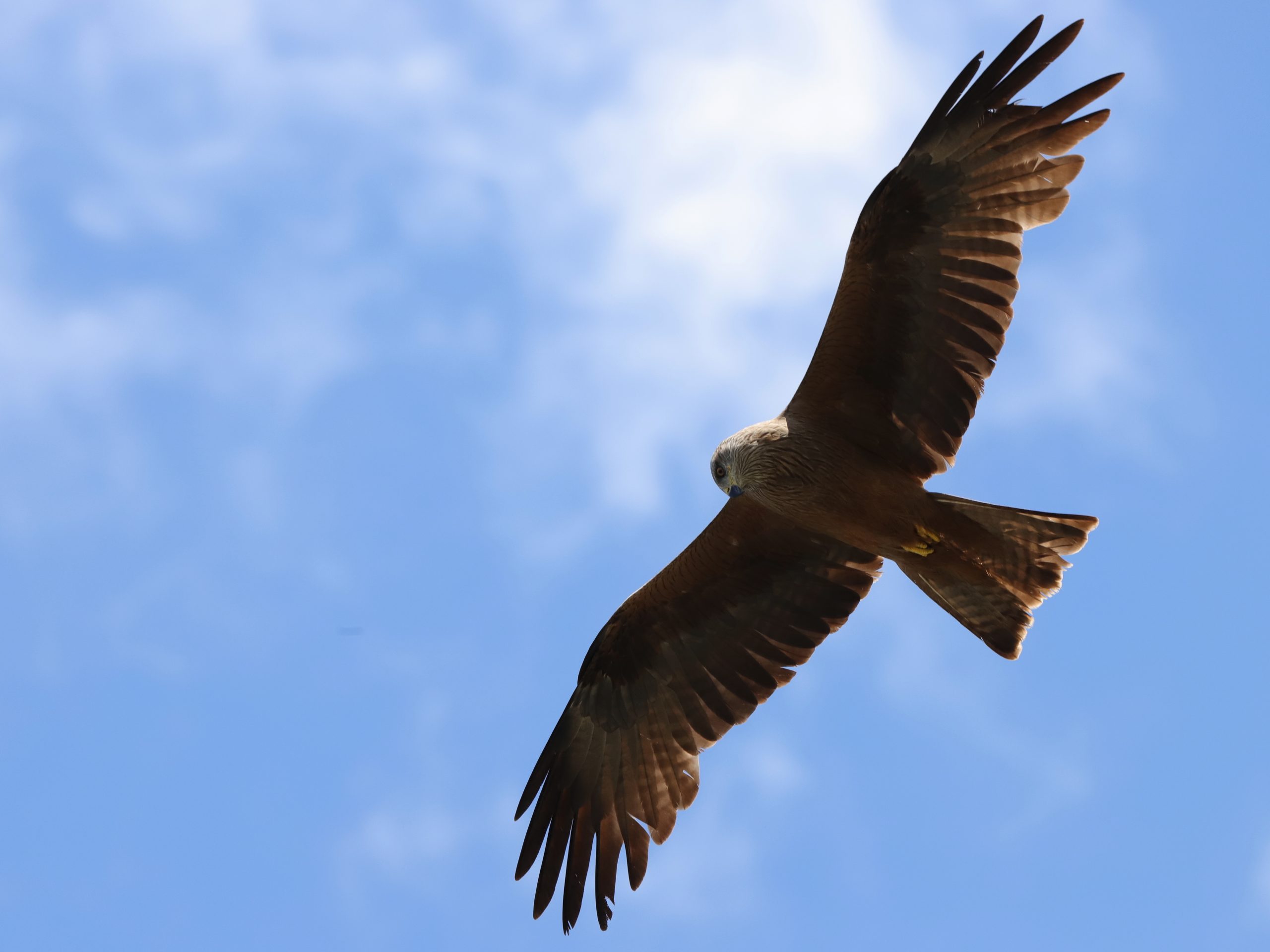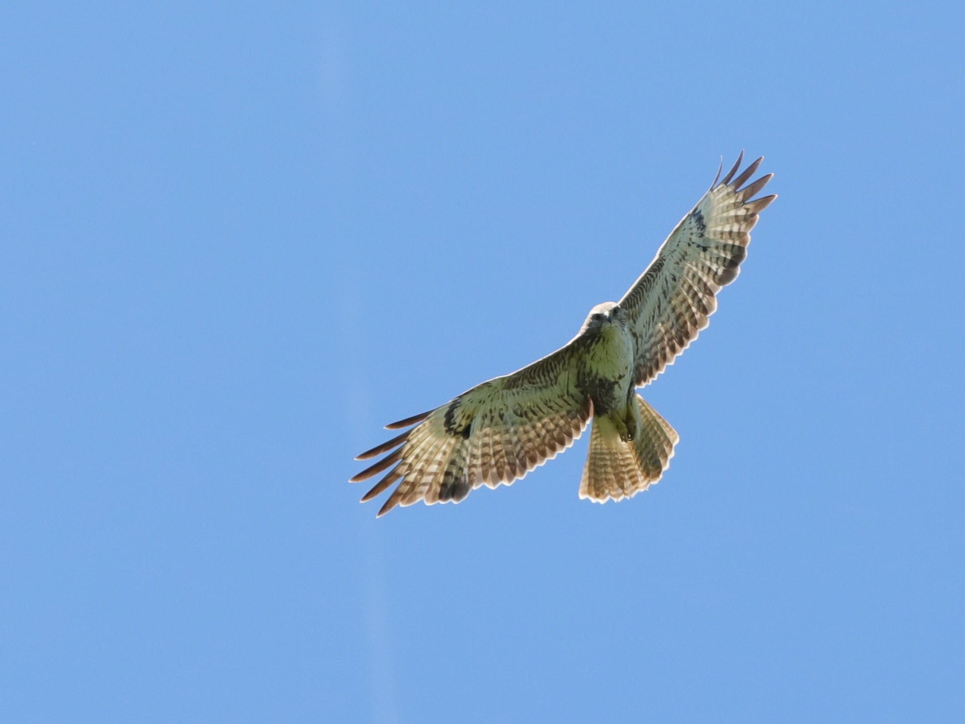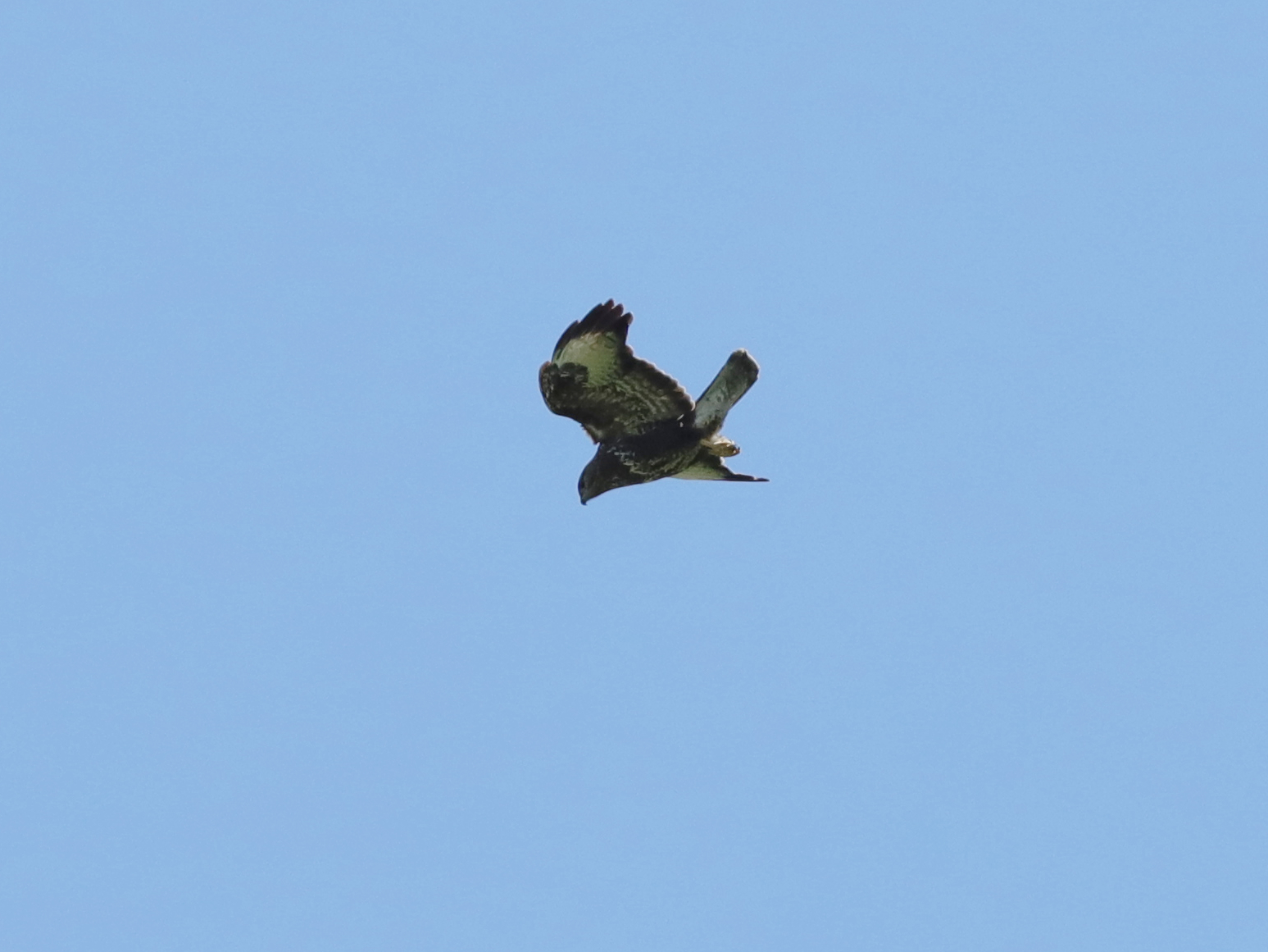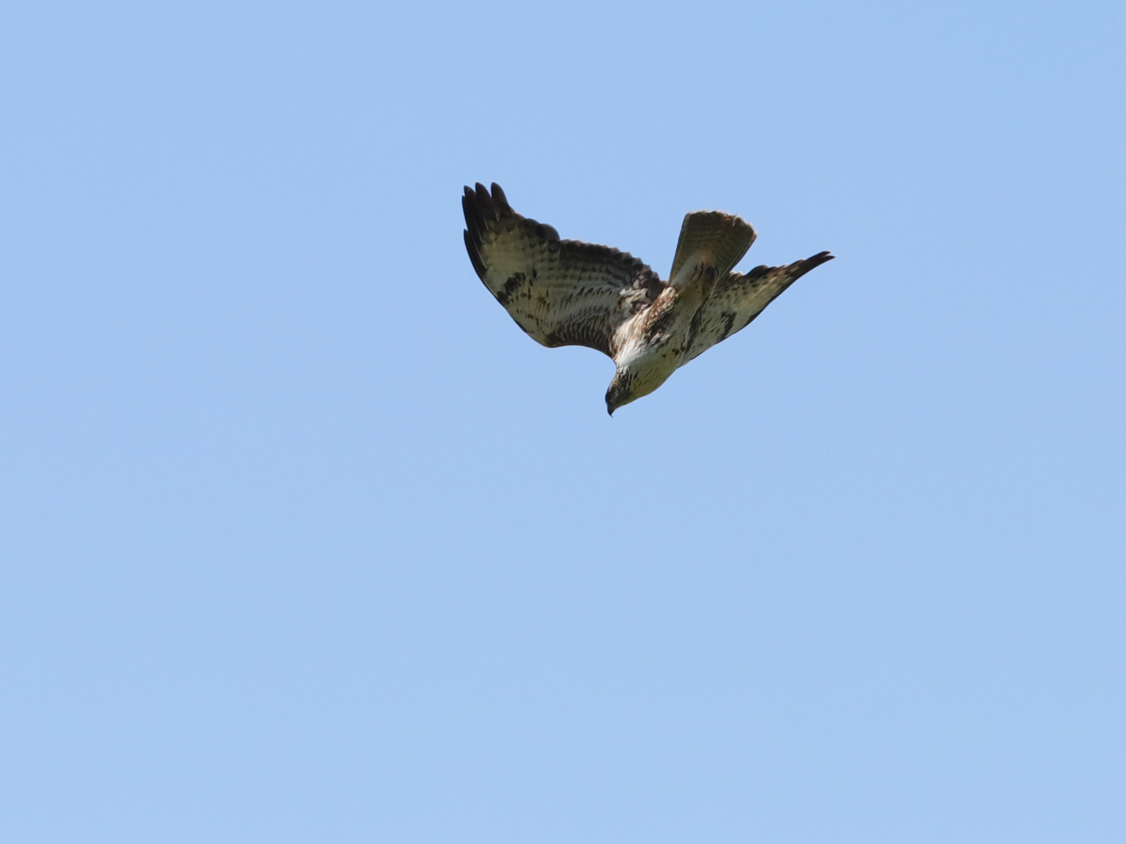 Les Milans noirs se rassemblent ces jours-ci en groupes, de 5 à plus de 60 oiseaux, et tournent dans les ascendances thermiques. Des intrus comme les Buses variables se glissent parfois dans ces spirales, sans bagarre. Un Milan noir a pris son en-cas en vol alors qu’un autre est venu me survoler d’assez près pour un portrait en gros plan.