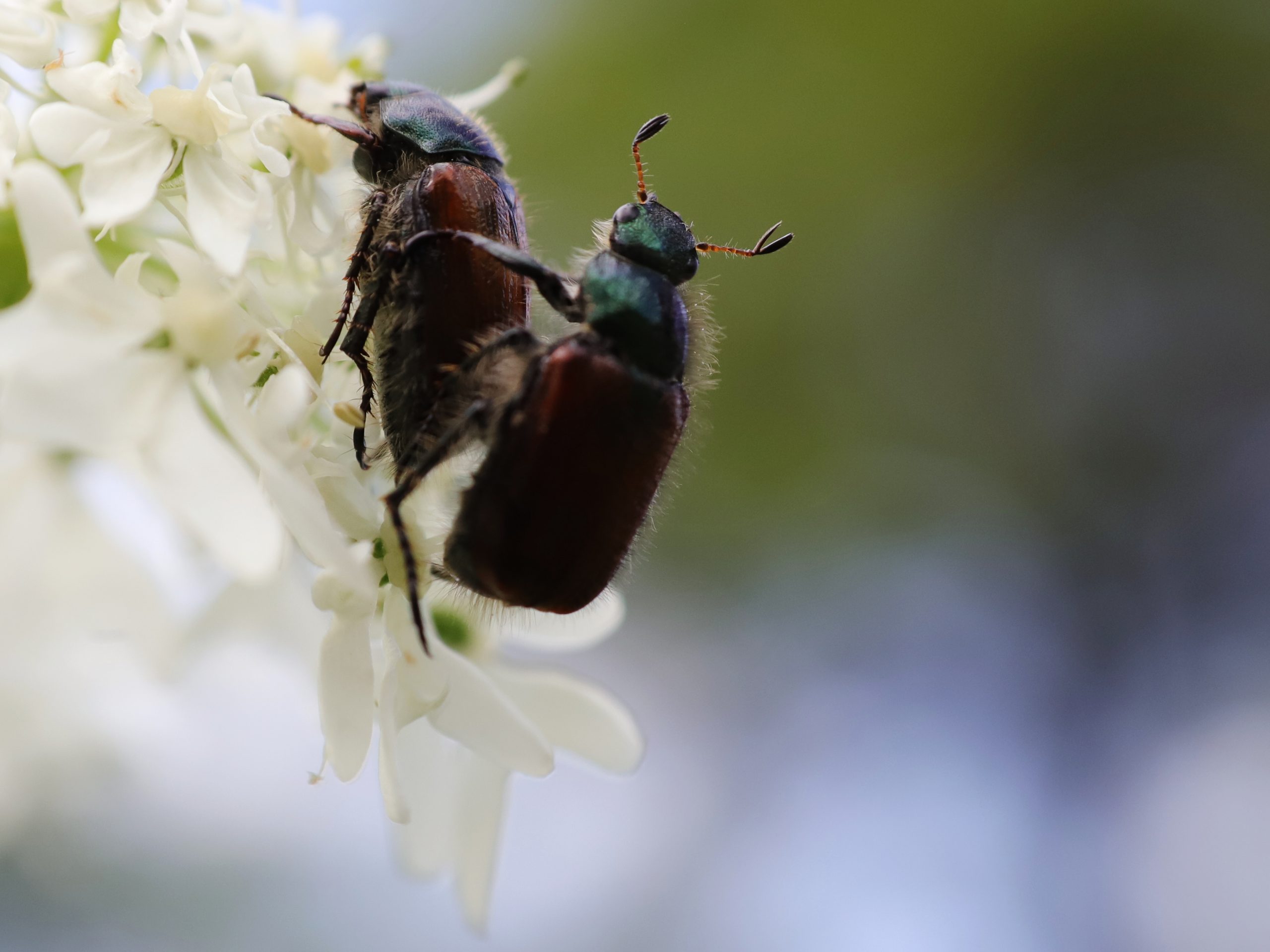 Je n’ai pu identifier ces deux coléoptères mais les antennes en « feuille », signe disctinctif des mâles, en font une jolie photo.