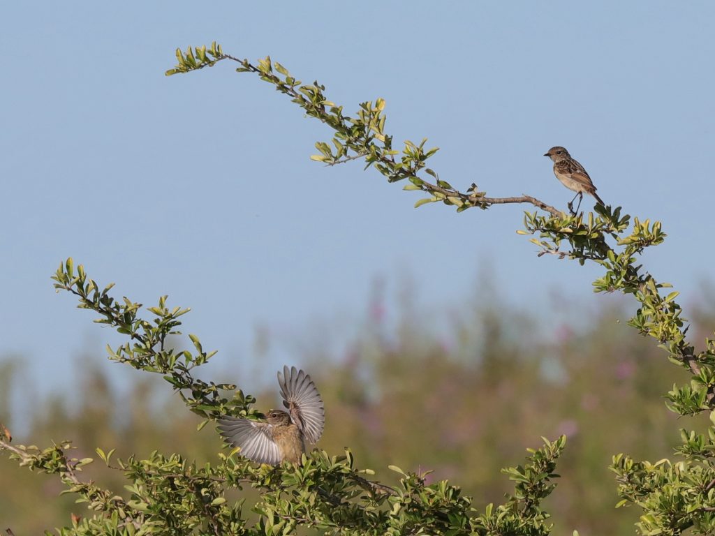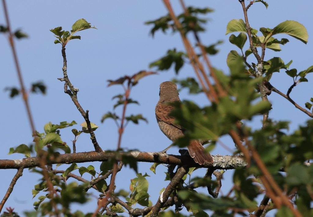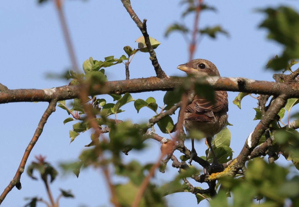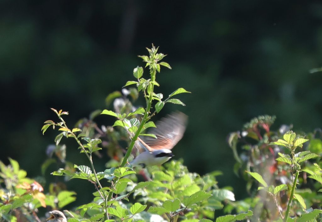 Cet oiseau reste encore quelques semaines ici avant d’entreprendre son voyage : la Pie-grièche écorcheur. Le mâle est sur les cinq premières images, ensuite il y a une femelle puis deux photos d’un jeune.