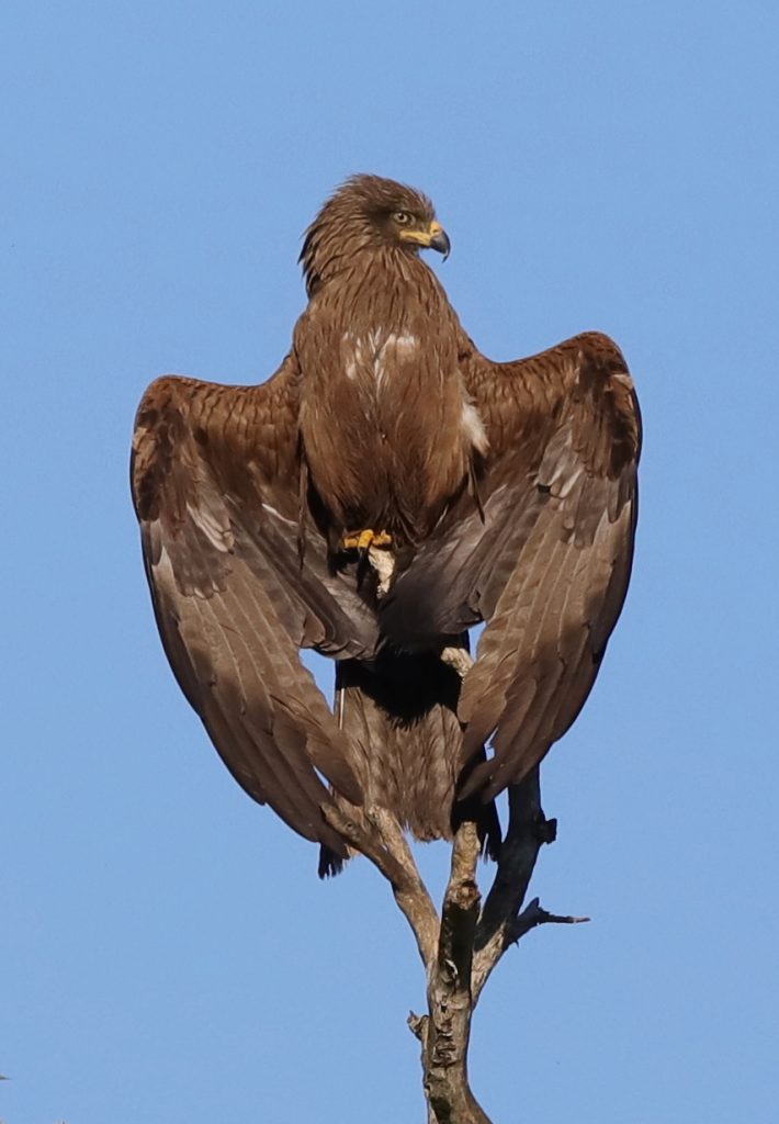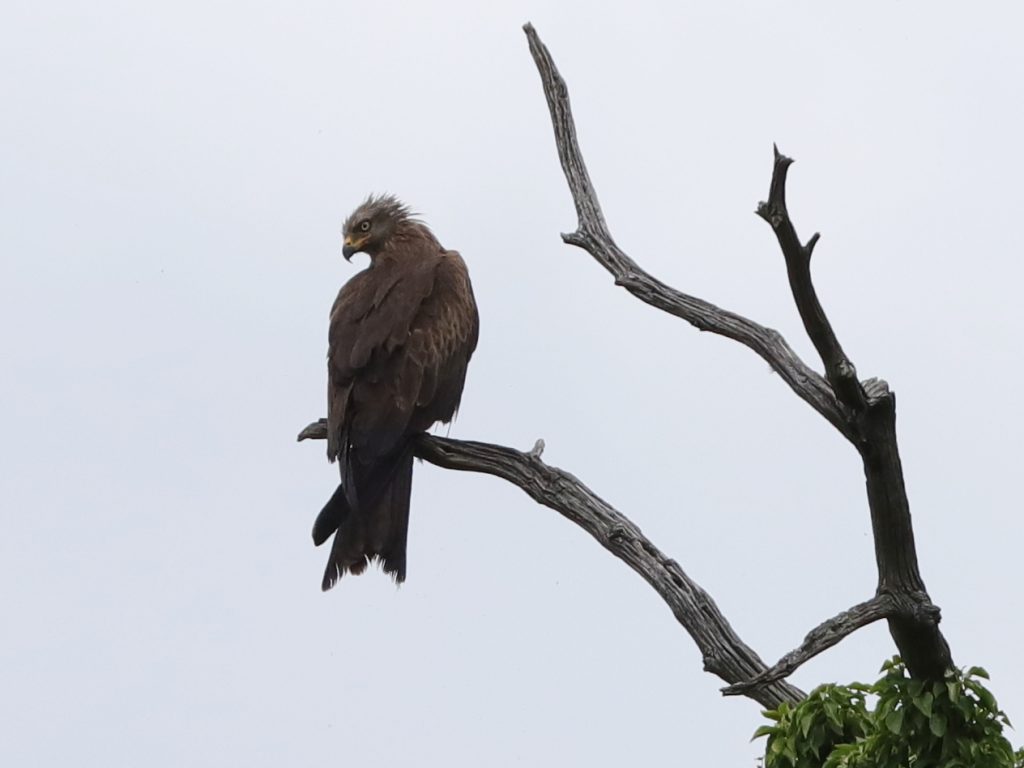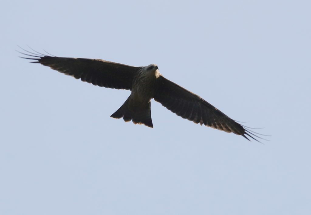 En affirmant, la semaine dernière, que tous les Milans noirs étaient partis, j’ai un peu exagéré. Ils sont encore là, bien qu’en plus petit nombre et il s’agit surtout de jeunes de l’année, reconnaissable à leur tête claire. Difficile de savoir si ce sont ceux qui ont grandi sur place ou si ce sont chaque jour de nouveaux oiseaux qui font une halte sur leur chemin de migration. Toujours est-il qu’ils endurent les averses de manière stoïque, comme en troisième photo.