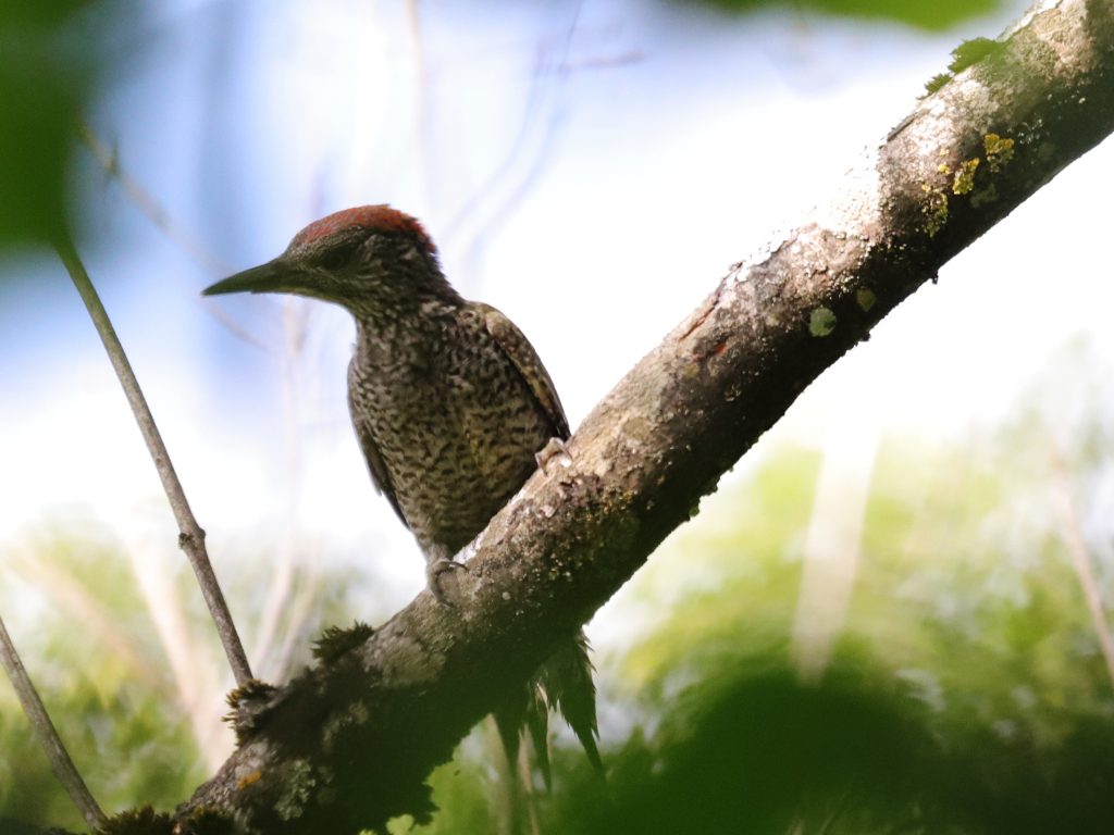 … un Pic épeiche, qui a encore ses plumes rouges sur la tête …