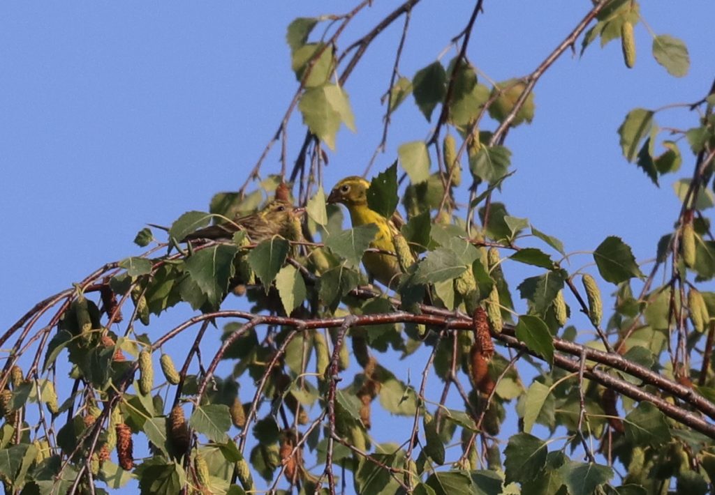 … et une séance de becquée d’un Serin cini au sommet d’un bouleau.