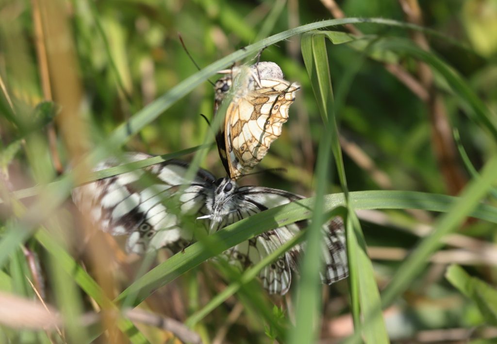Une rencontre entre deux Demi-deuils -la femelle a le dessous des ailes coloré- …