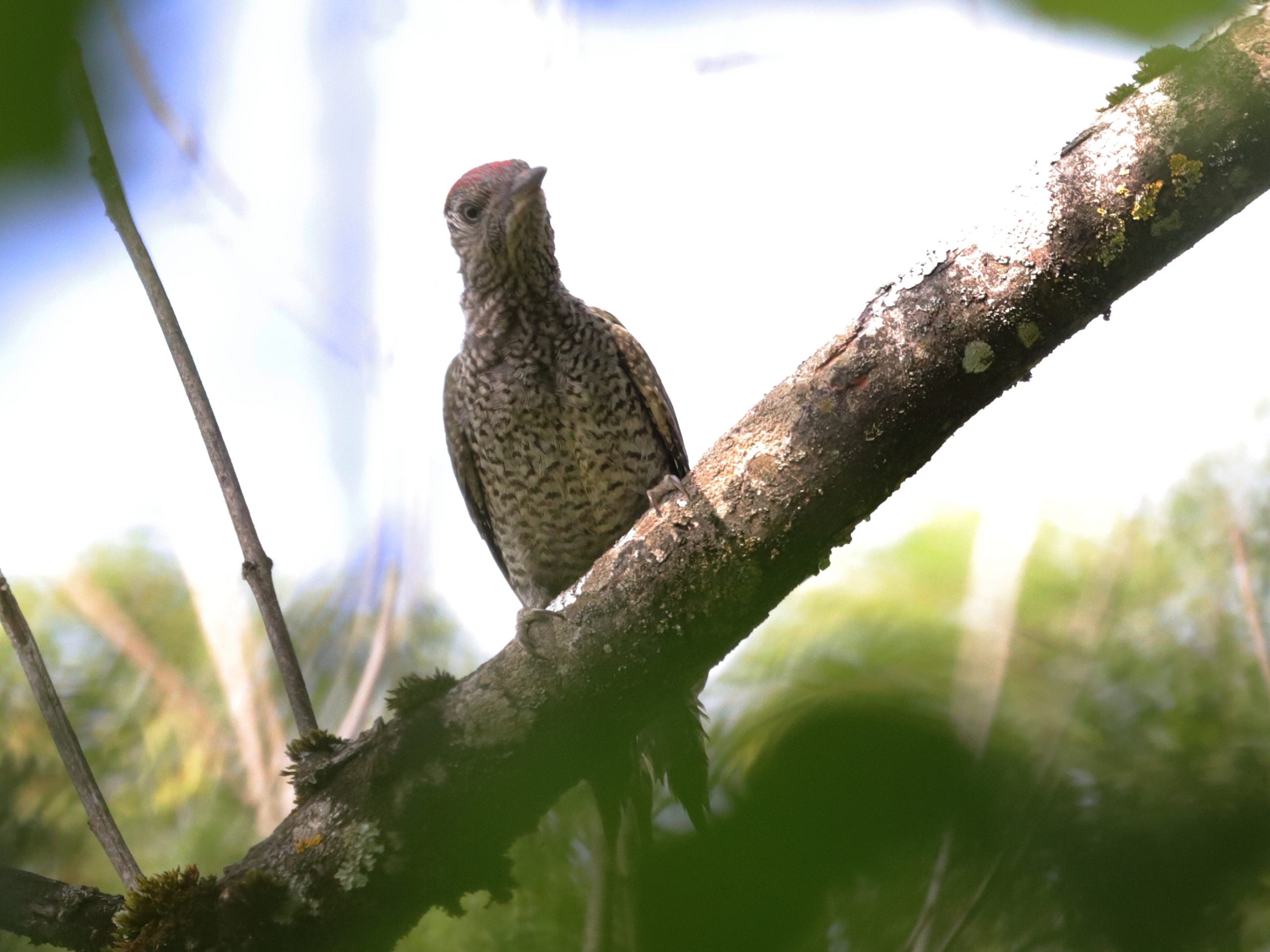… un Pic épeiche, qui a encore ses plumes rouges sur la tête …