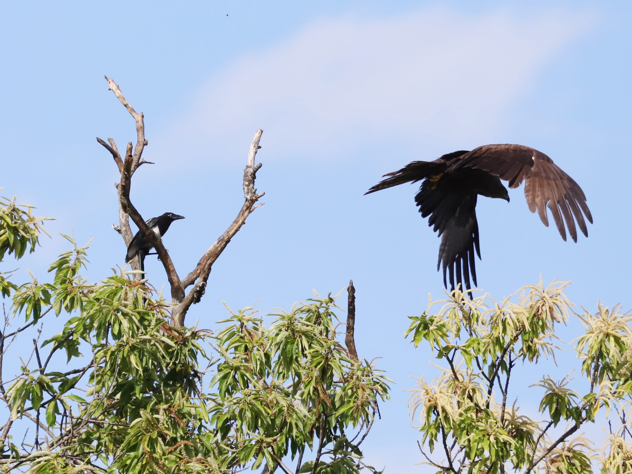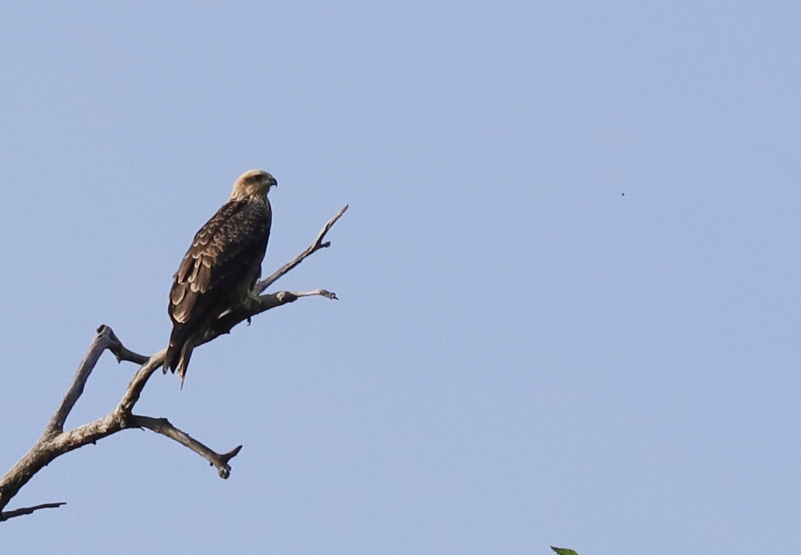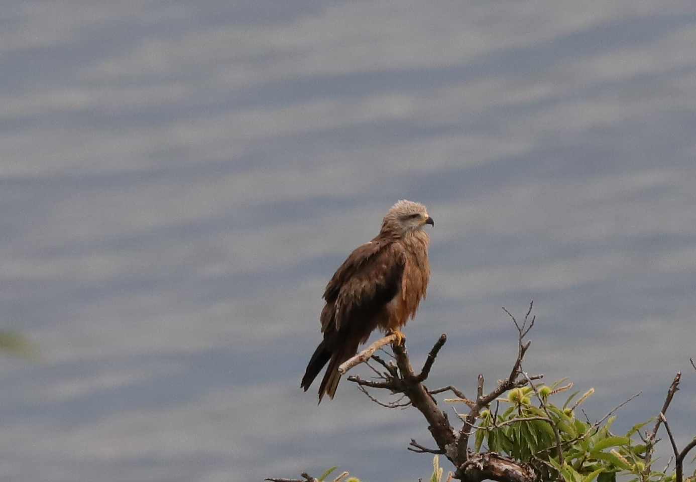 En affirmant, la semaine dernière, que tous les Milans noirs étaient partis, j’ai un peu exagéré. Ils sont encore là, bien qu’en plus petit nombre et il s’agit surtout de jeunes de l’année, reconnaissable à leur tête claire. Difficile de savoir si ce sont ceux qui ont grandi sur place ou si ce sont chaque jour de nouveaux oiseaux qui font une halte sur leur chemin de migration. Toujours est-il qu’ils endurent les averses de manière stoïque, comme en troisième photo.