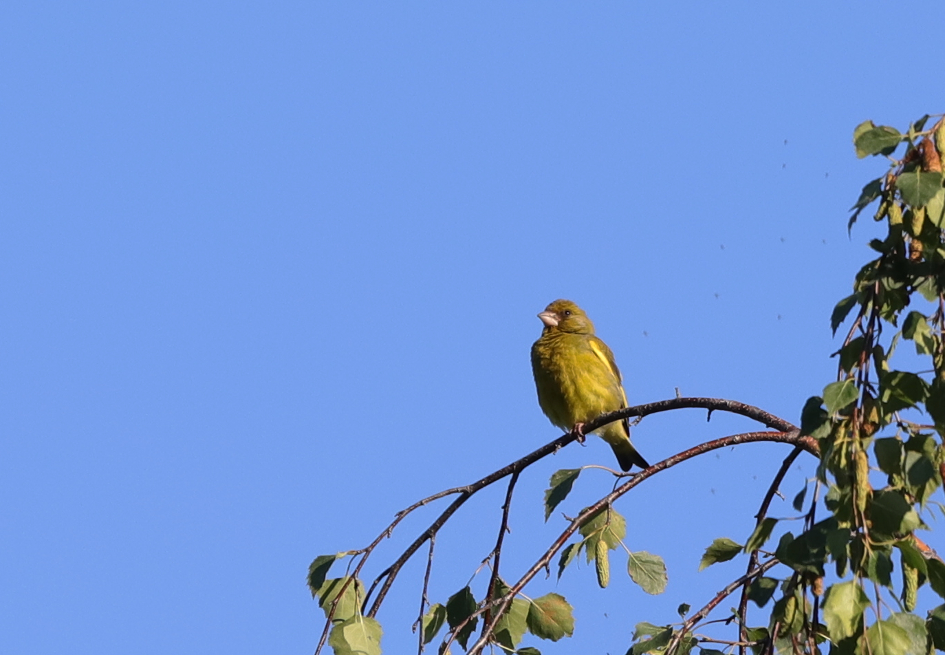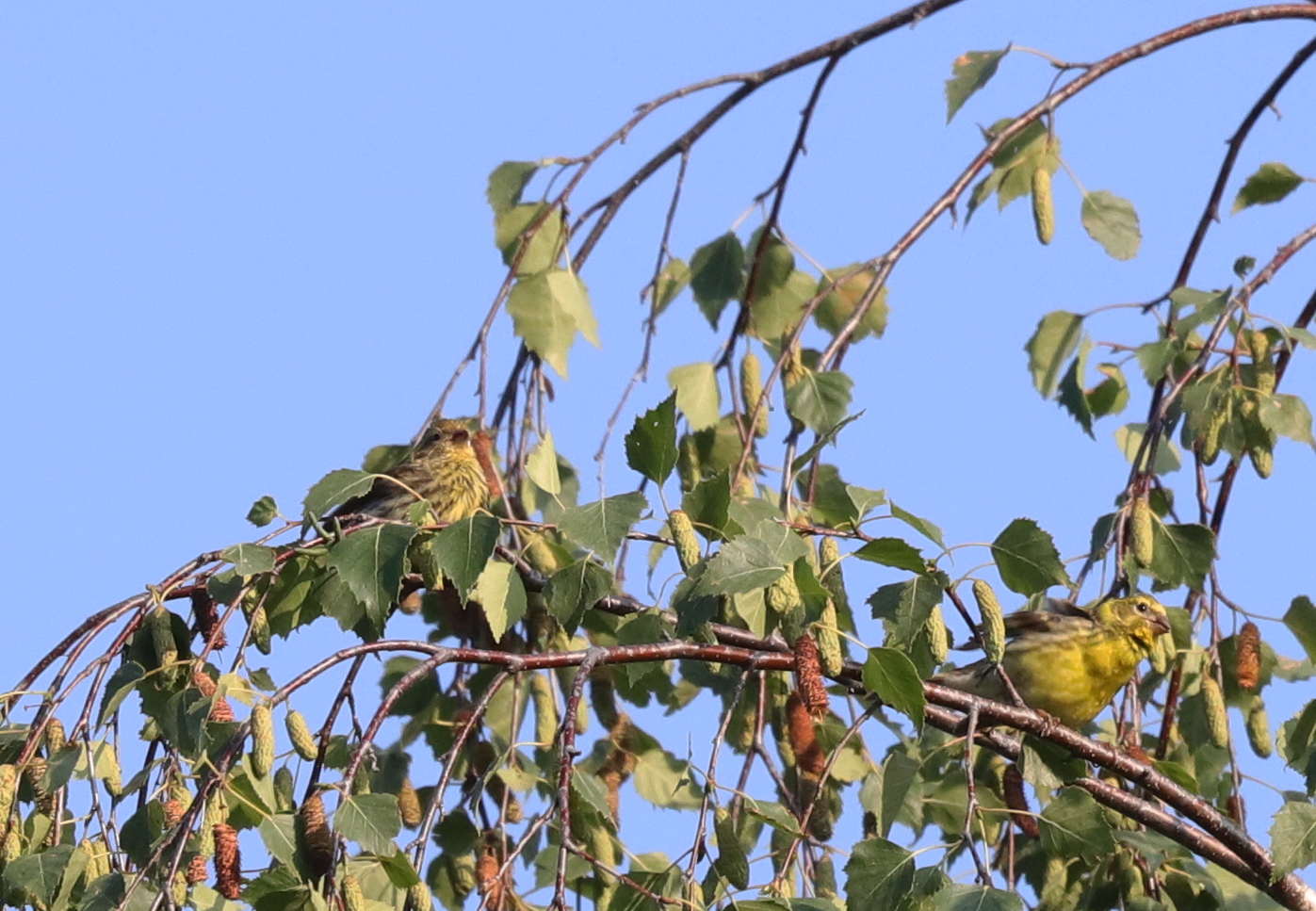 … et une séance de becquée d’un Serin cini au sommet d’un bouleau.