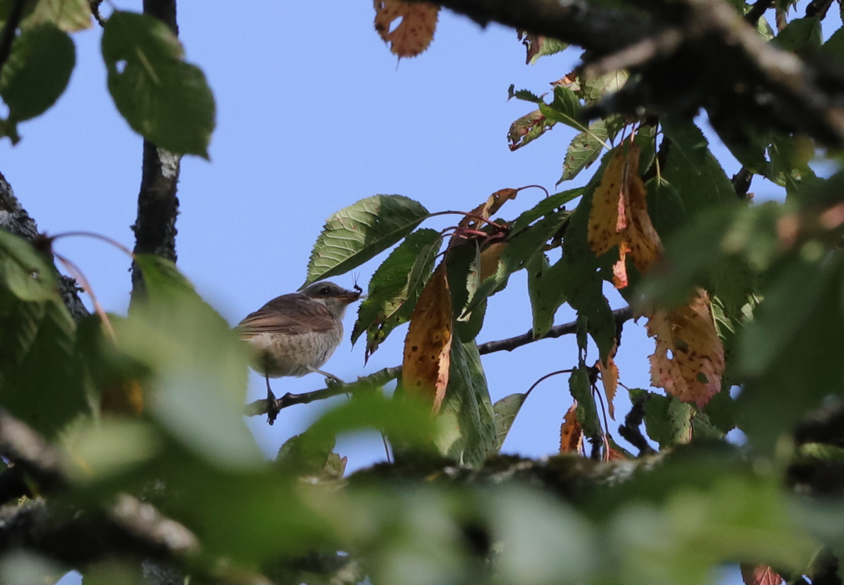 Cet oiseau reste encore quelques semaines ici avant d’entreprendre son voyage : la Pie-grièche écorcheur. Le mâle est sur les cinq premières images, ensuite il y a une femelle puis deux photos d’un jeune.
