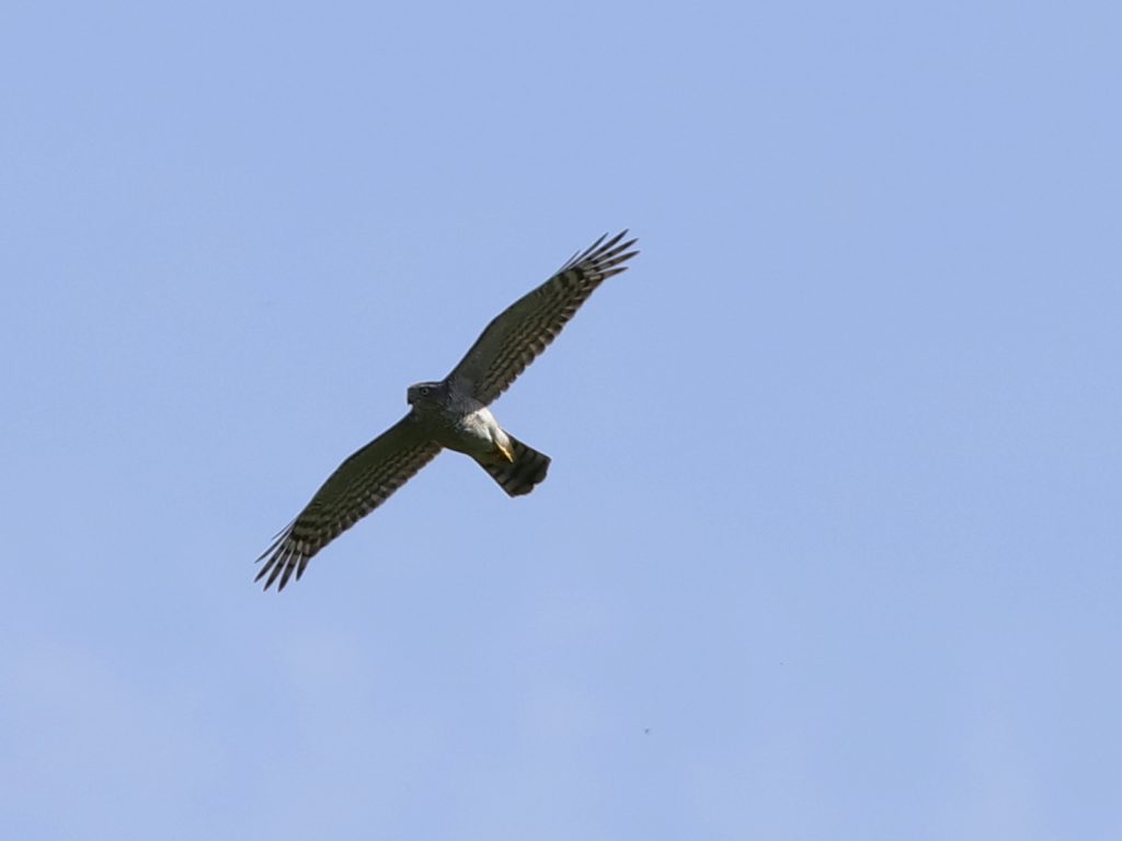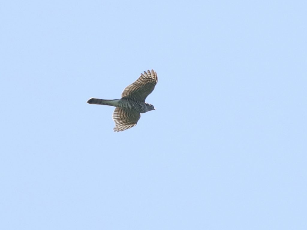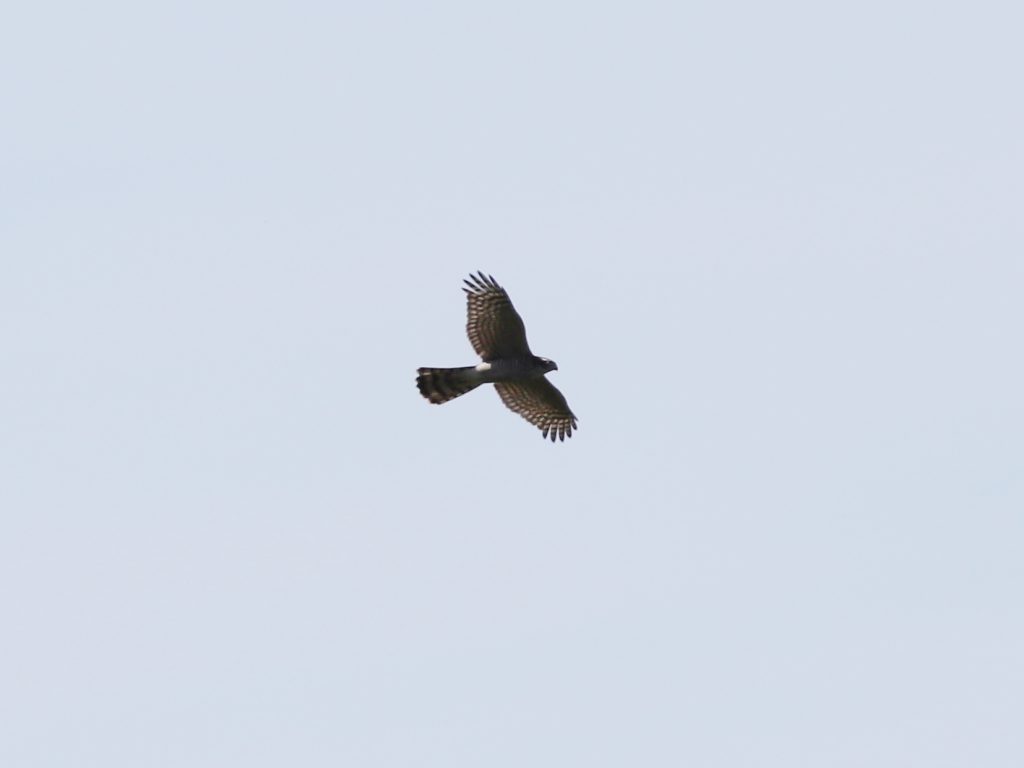 Retour vers les oiseaux de Lugrin. Un Epervier d’Europe, femelle, repéré après une tentative de capture d’un geai des chênes qui poussait des cris d’alerte encore plus fort qu’à l’habitude.