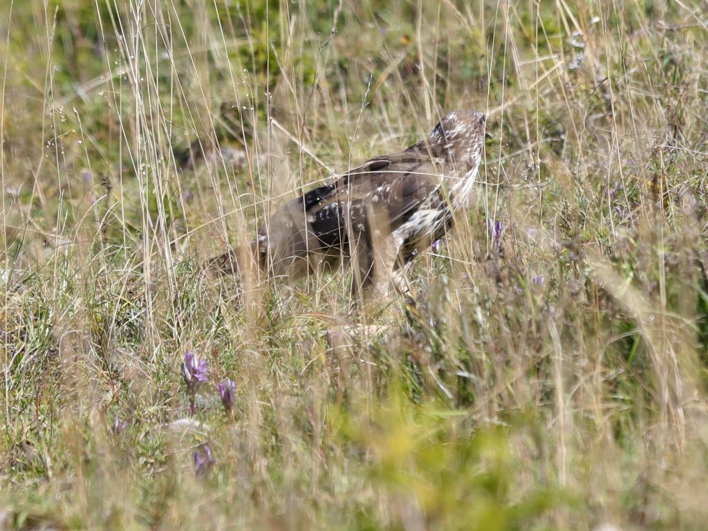Non loin, c’est une Buse variable qui est venue se poser dans les herbes avant de repartir, surprise d’avoir perçu ma présence.