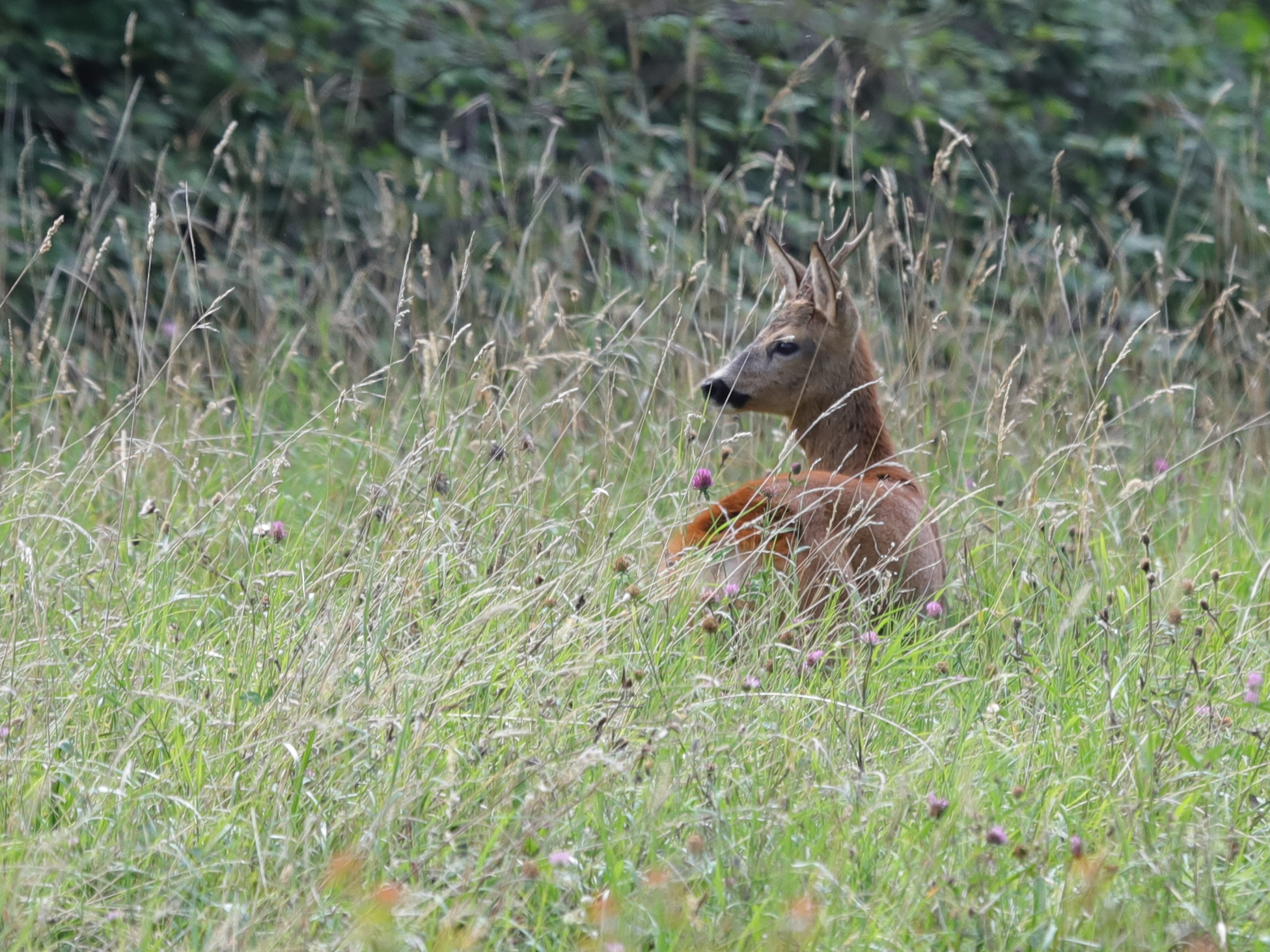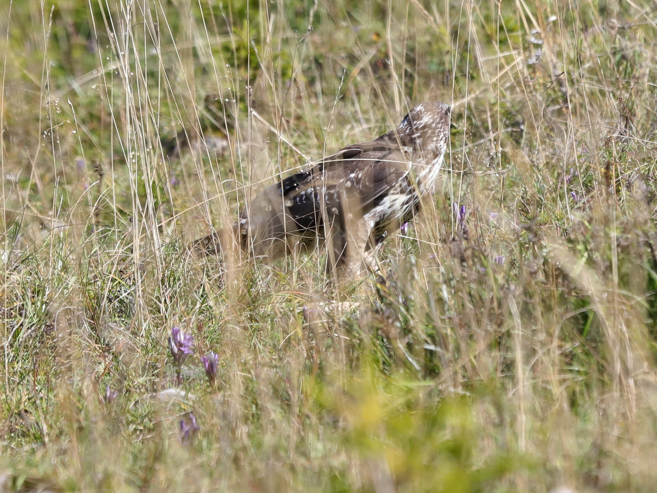 Non loin, c’est une Buse variable qui est venue se poser dans les herbes avant de repartir, surprise d’avoir perçu ma présence.