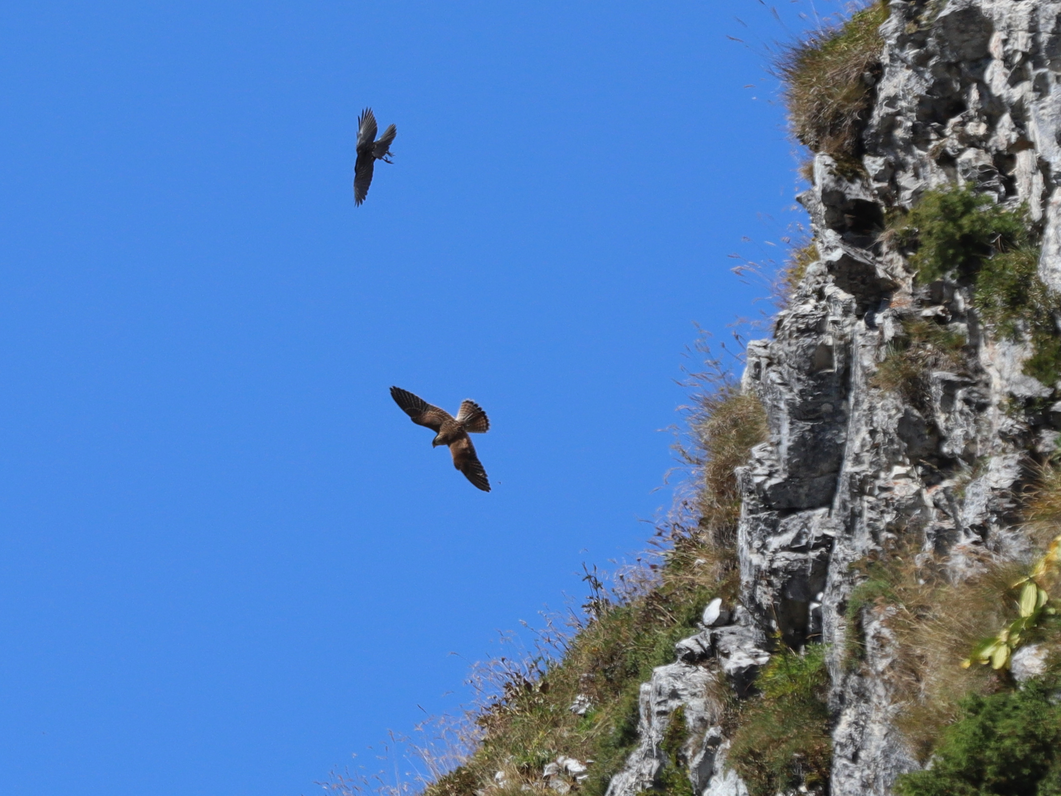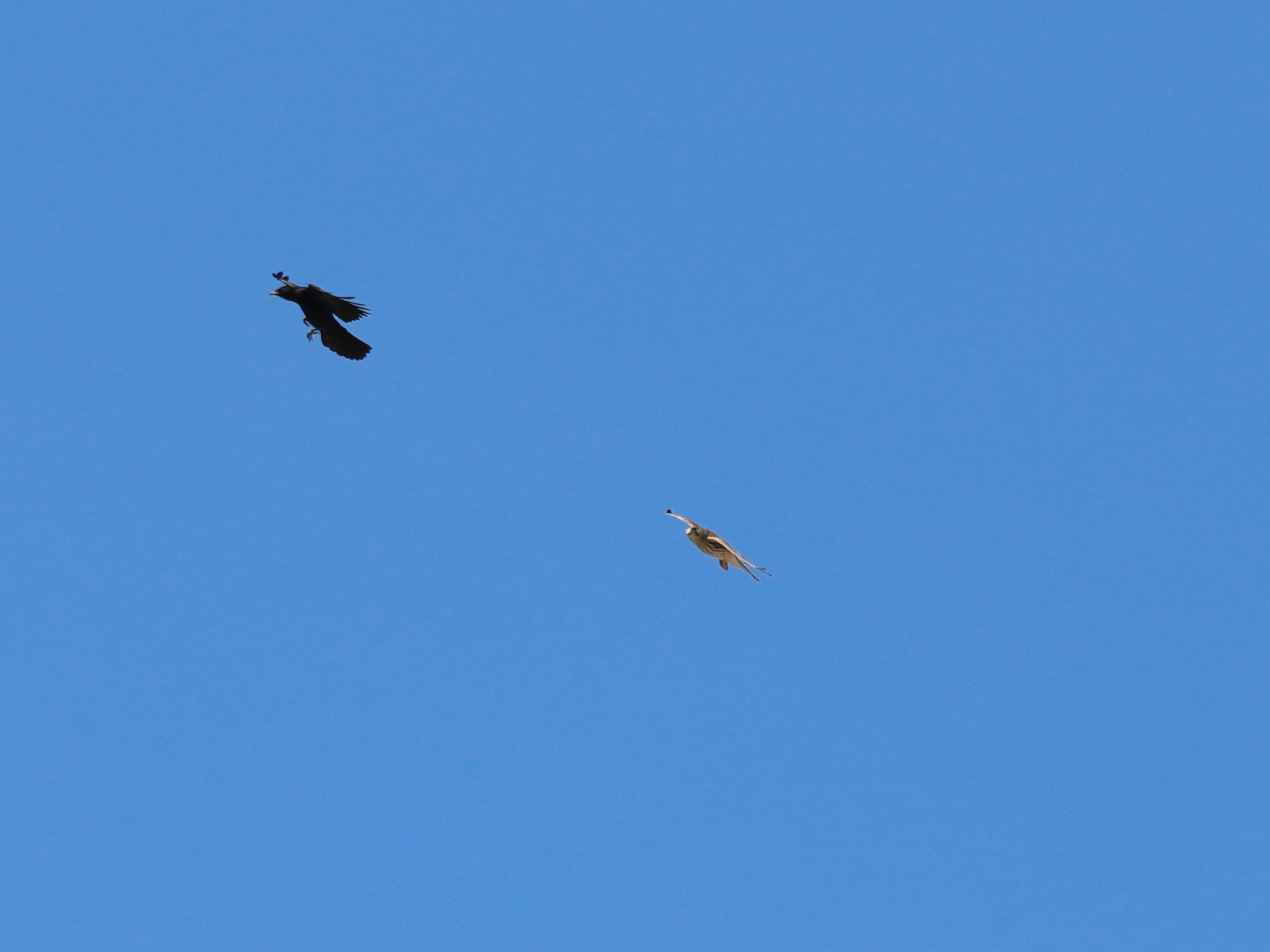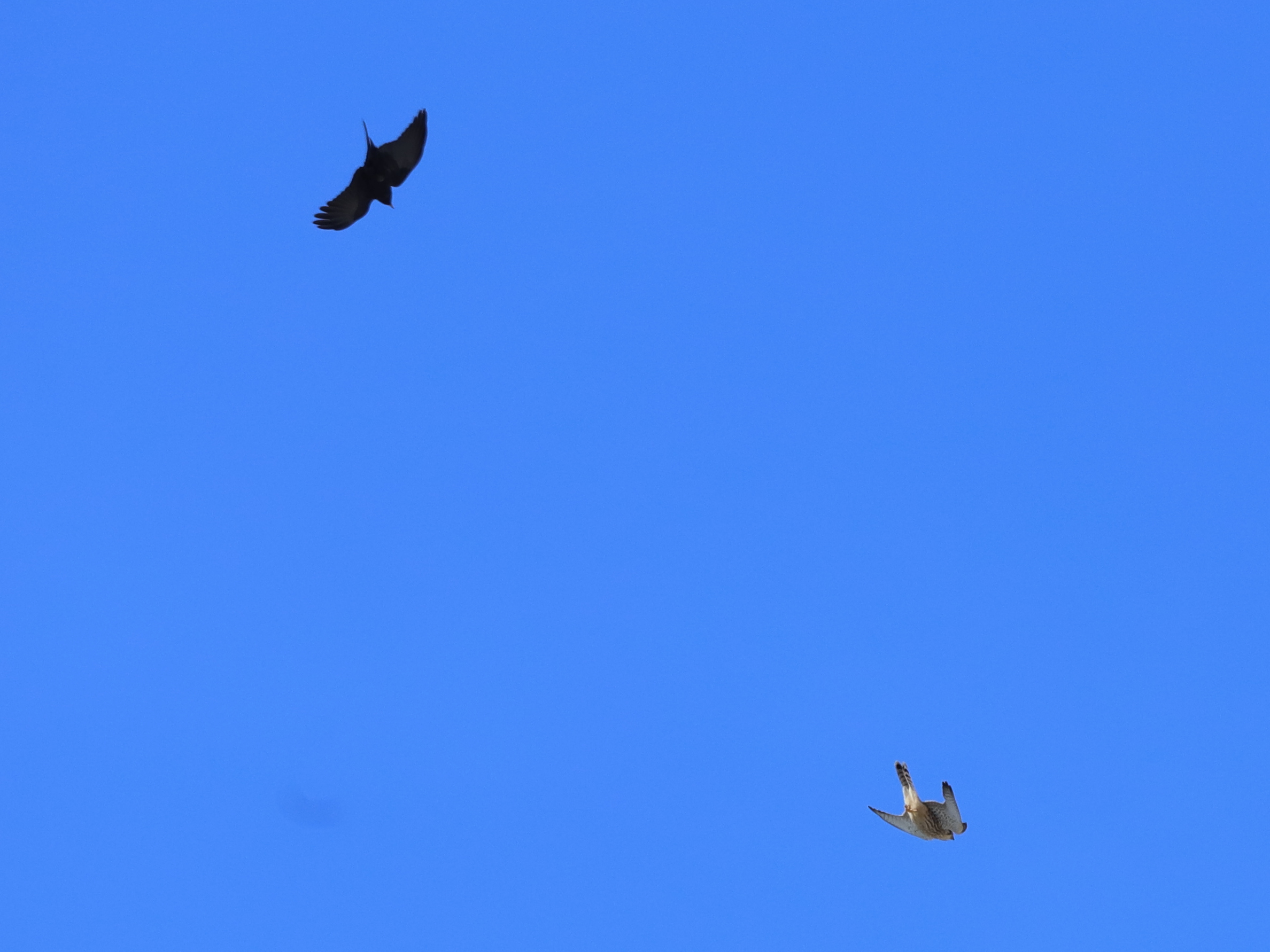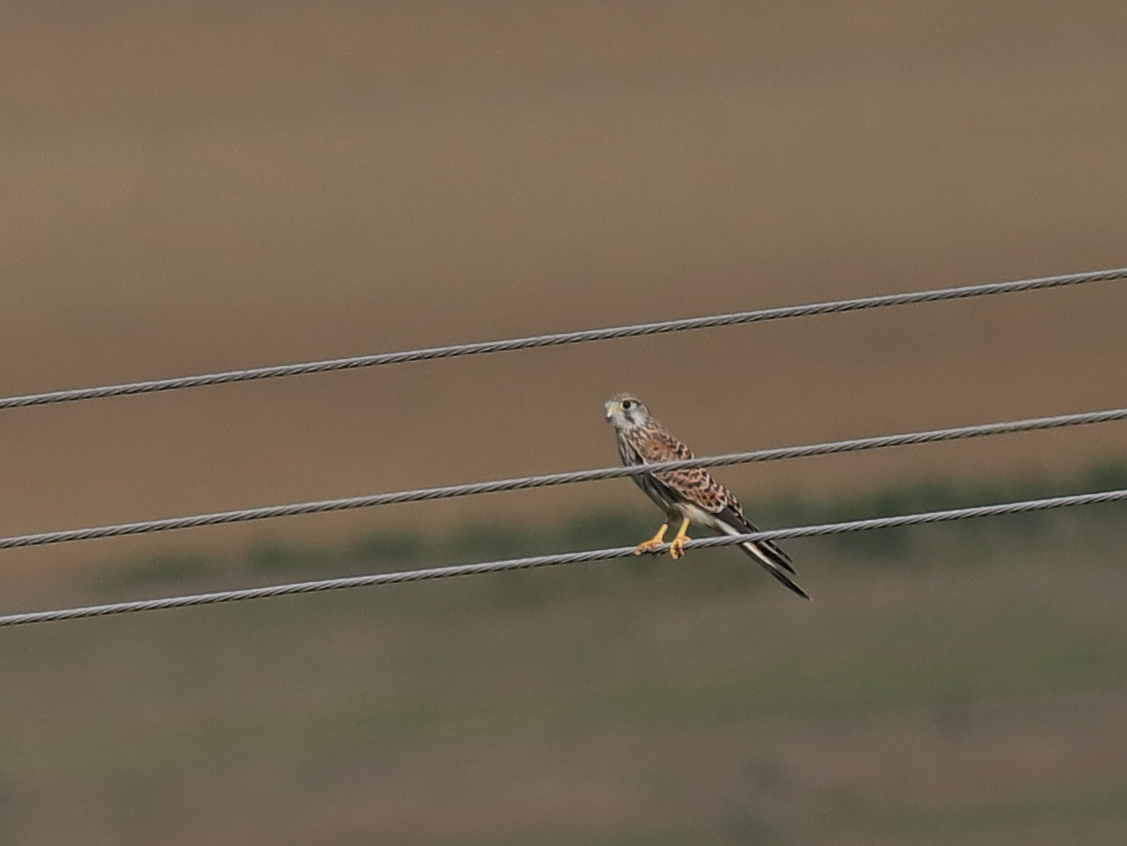 Encore au-dessus des champs de Halstroff, un Faucon crécerelle a tenté plusieurs chasses, dont une attaque ratée sur des Pigeons ramiers.