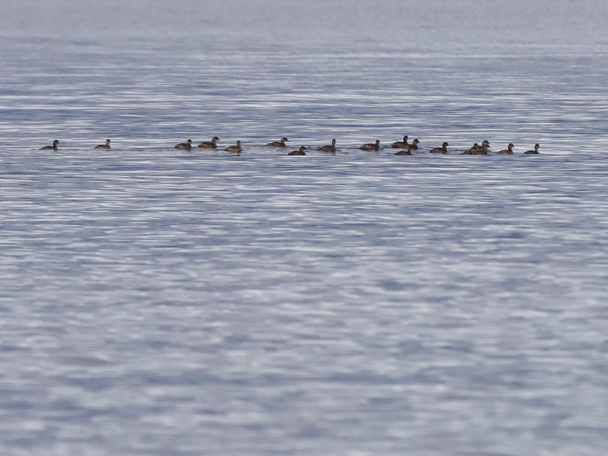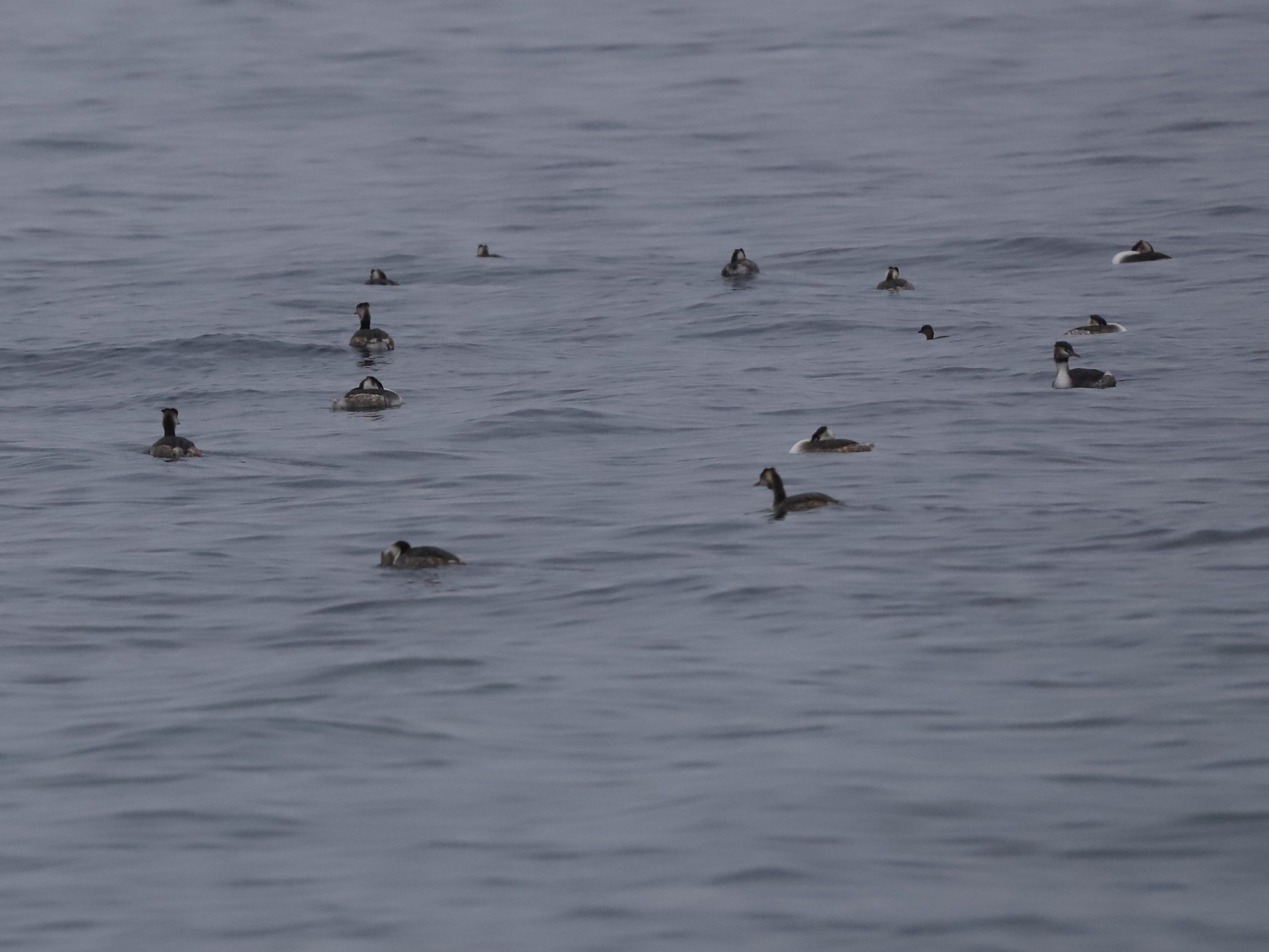 Il y a sur le lac des regroupements de différentes espèces de canards, dont les Grèbes huppés, d’une dizaine et jusqu’à une centaine d’oiseaux.