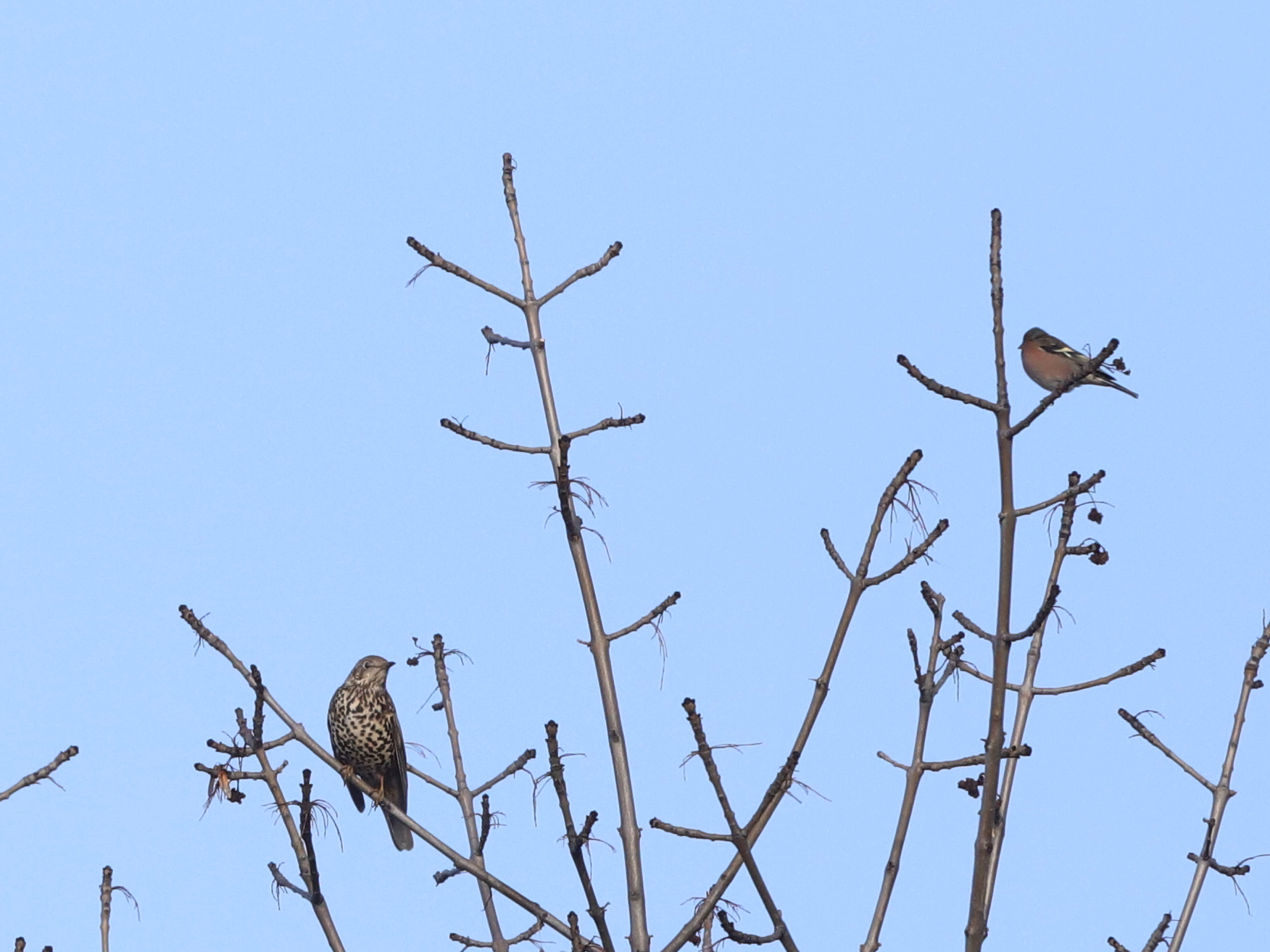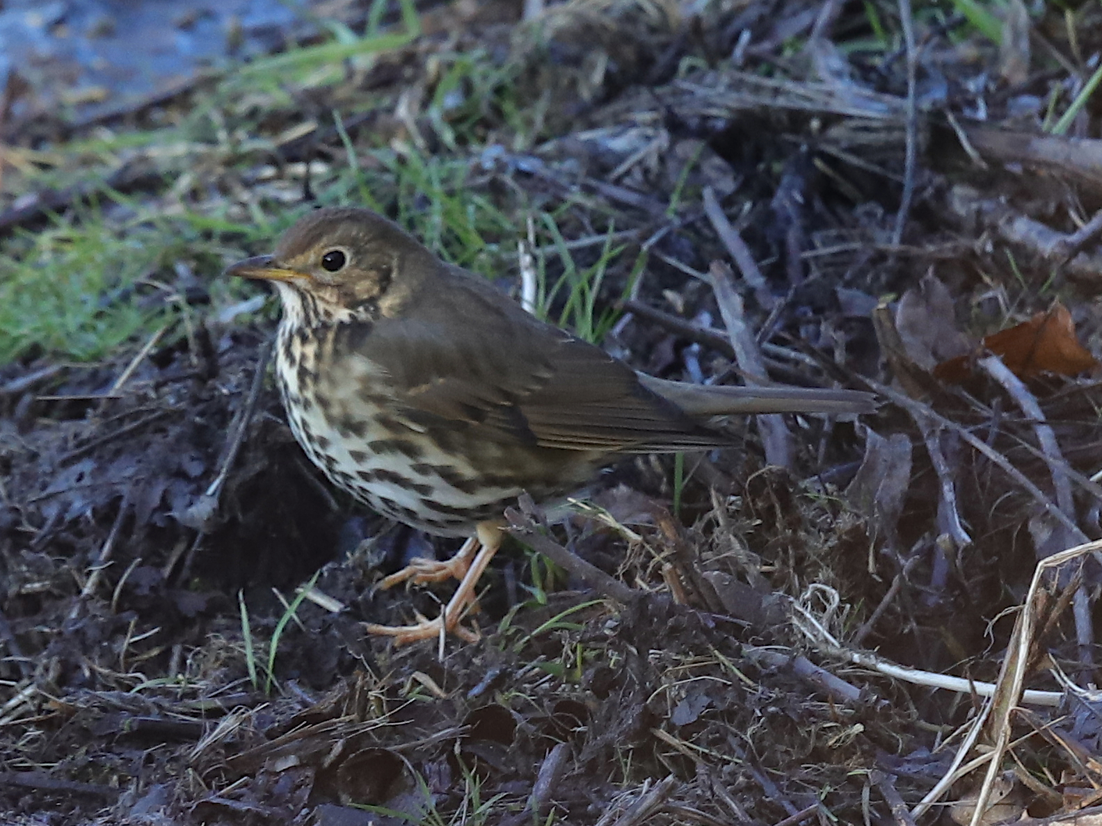 … et une Grive musicienne, dont on voit bien les taches « sagittées » en forme de pointe de flèche.