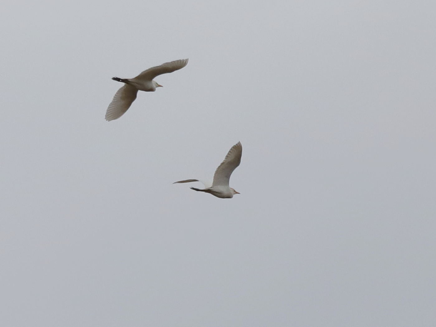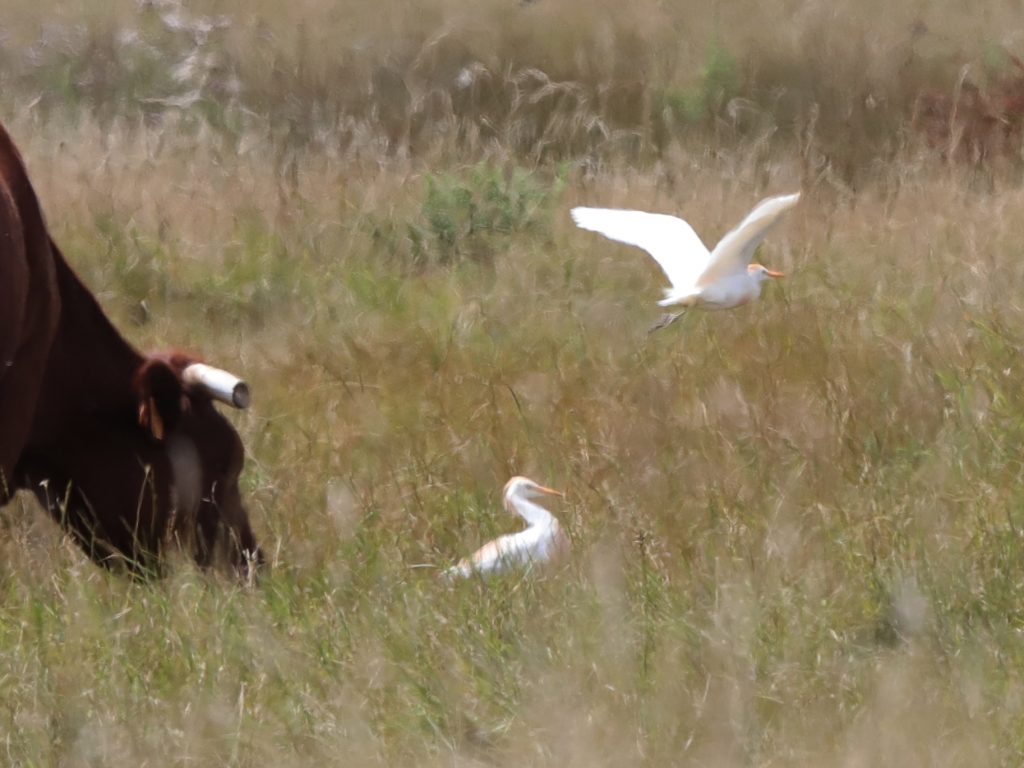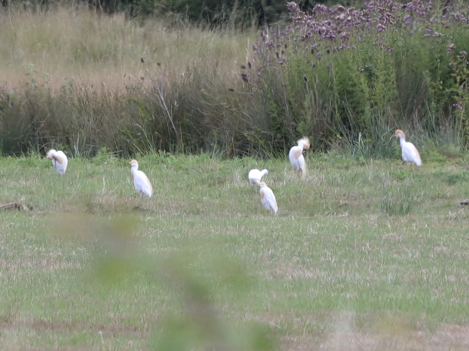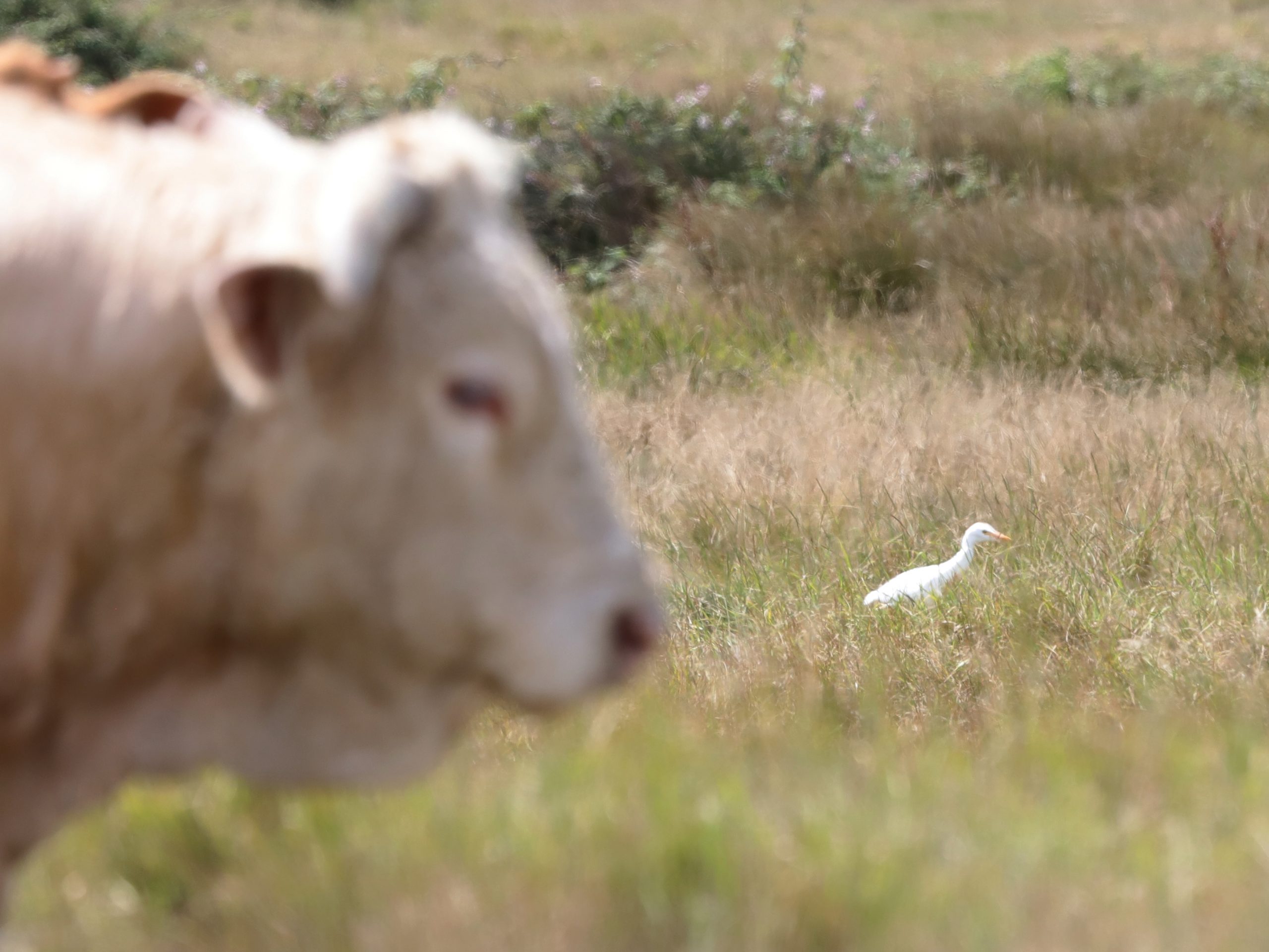 Dans la famille des hérons, voici d’abord les biens nommés Hérons garde-boeufs, petits hérons à la tête orange, plutôt terrestres.