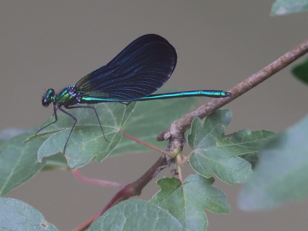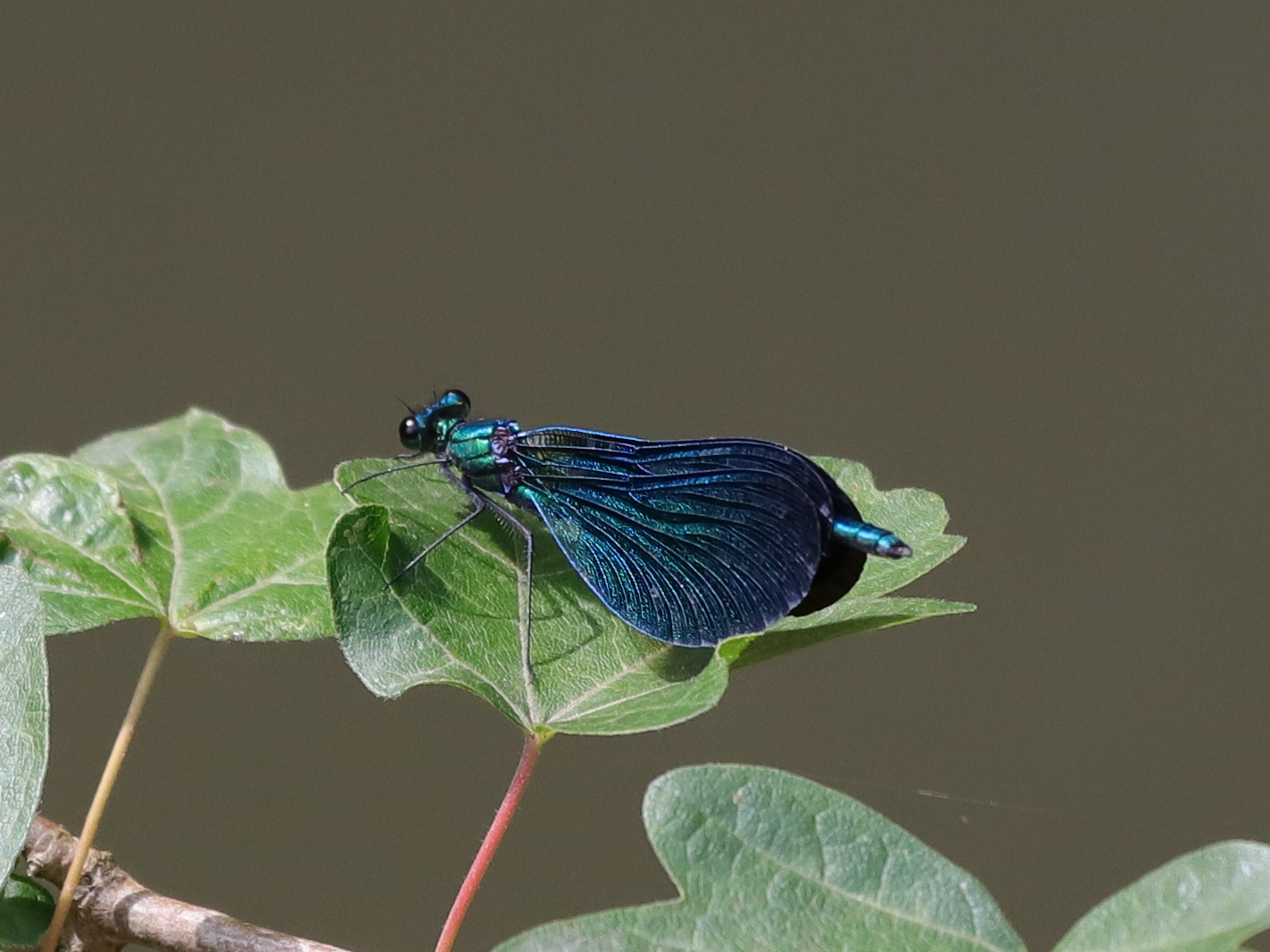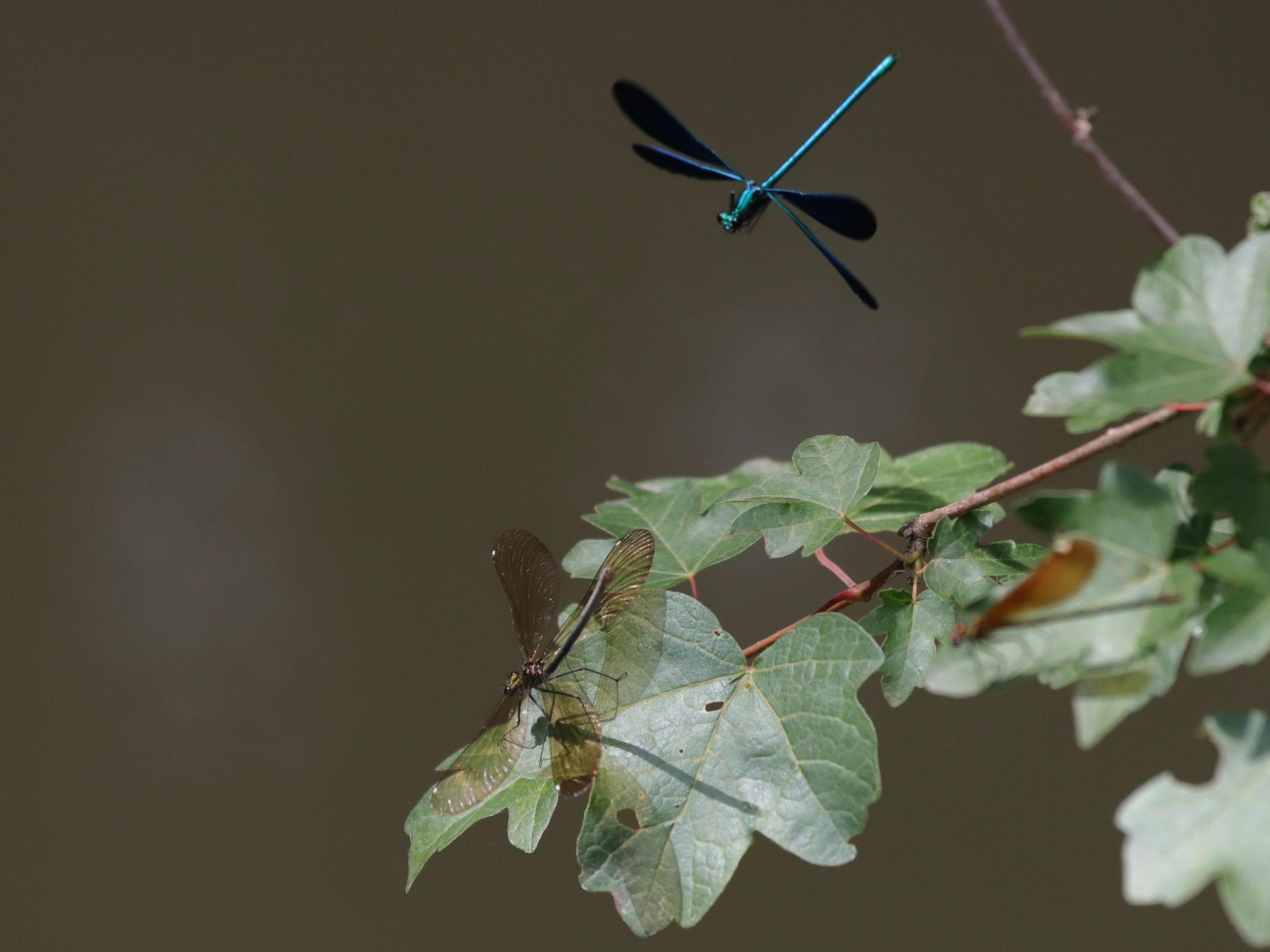 Et une série de Calopteryx, dont les femelles sont vertes avec l’extrémité de l’abdomen blanc et les mâles d’un beau bleu. Entre le Calopteryx occitan, vierge et vierge méridional, je peine à distinguer.