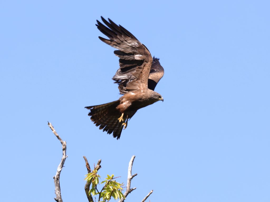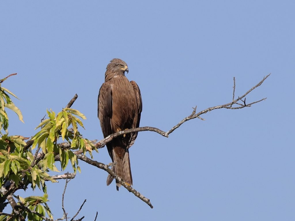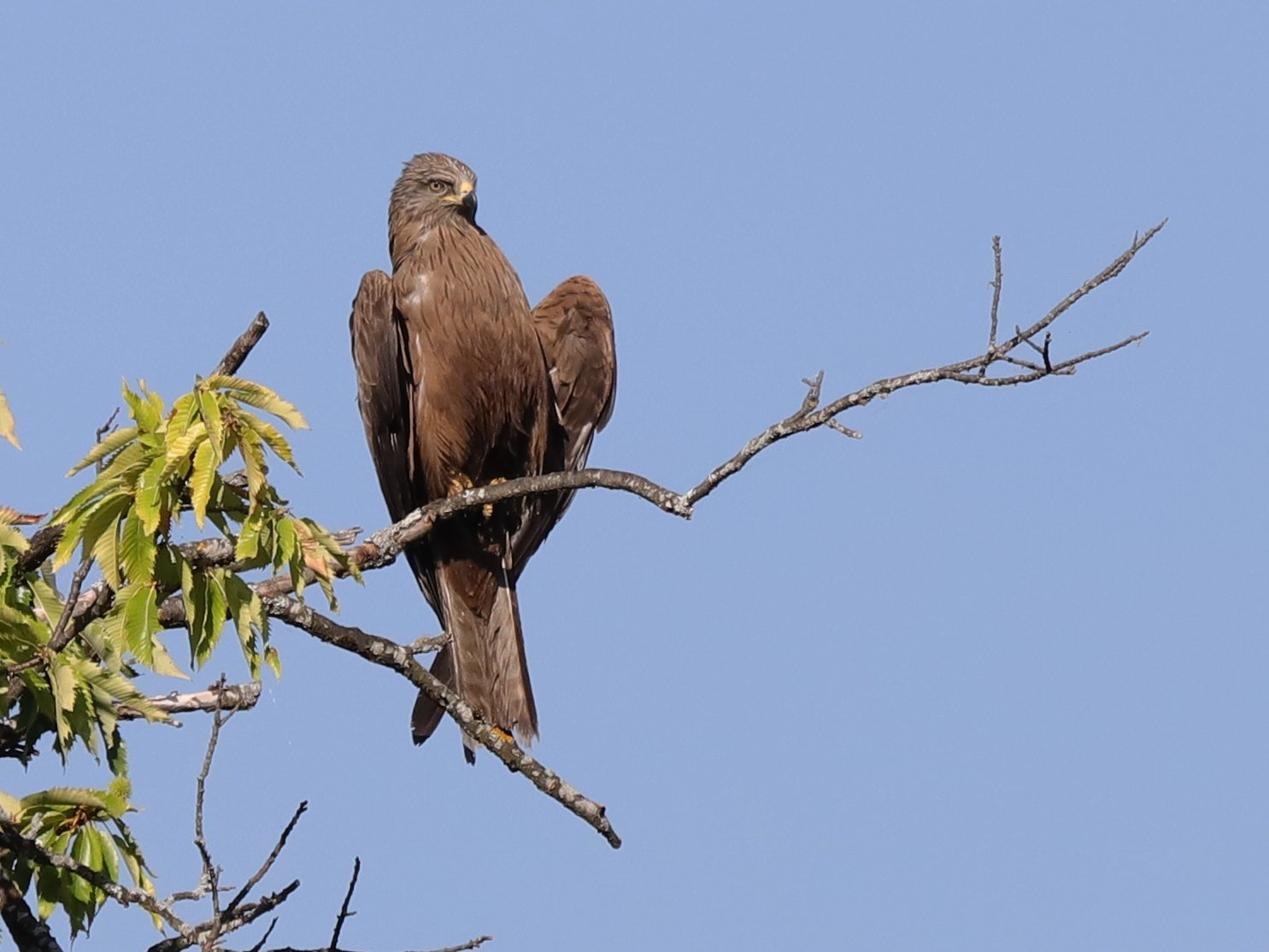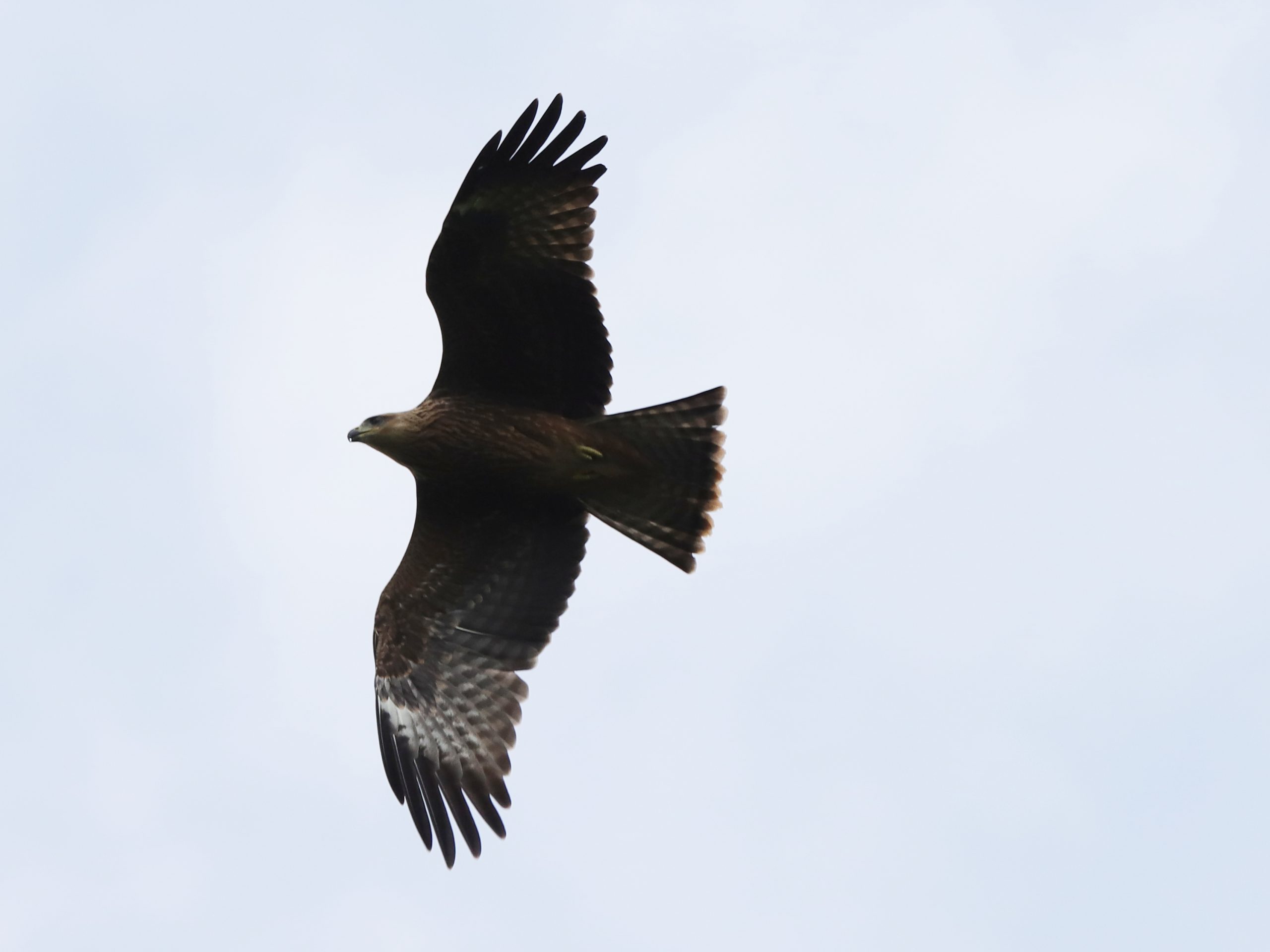 Le 10 juillet, j’avais constaté le départ de la plupart des Milans noires adultes. Il reste cependant toujours des jeunes de l’année. On les reconnaît à leur plumage moucheté dans le dos, la tête parfois grisâtre et l’orbite foncée.