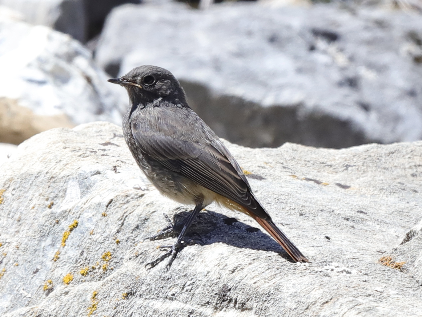 Face à cette abondance de proies, il ne pouvait pas ne pas y avoir de prédateur. L’aigle royal a fini par être visible, bien que très loin. J’espérais le voir prendre son envol, surtout lorsque les Chocards à bec jaune sont venus le survoler de près pour l’intimider mais il n’a bougé que lorsque, lassé d’une longue attente, j’ai tourné le dos pour quitter mon point d’observation peu confortable.