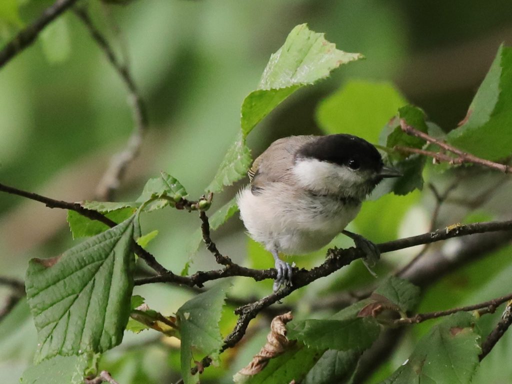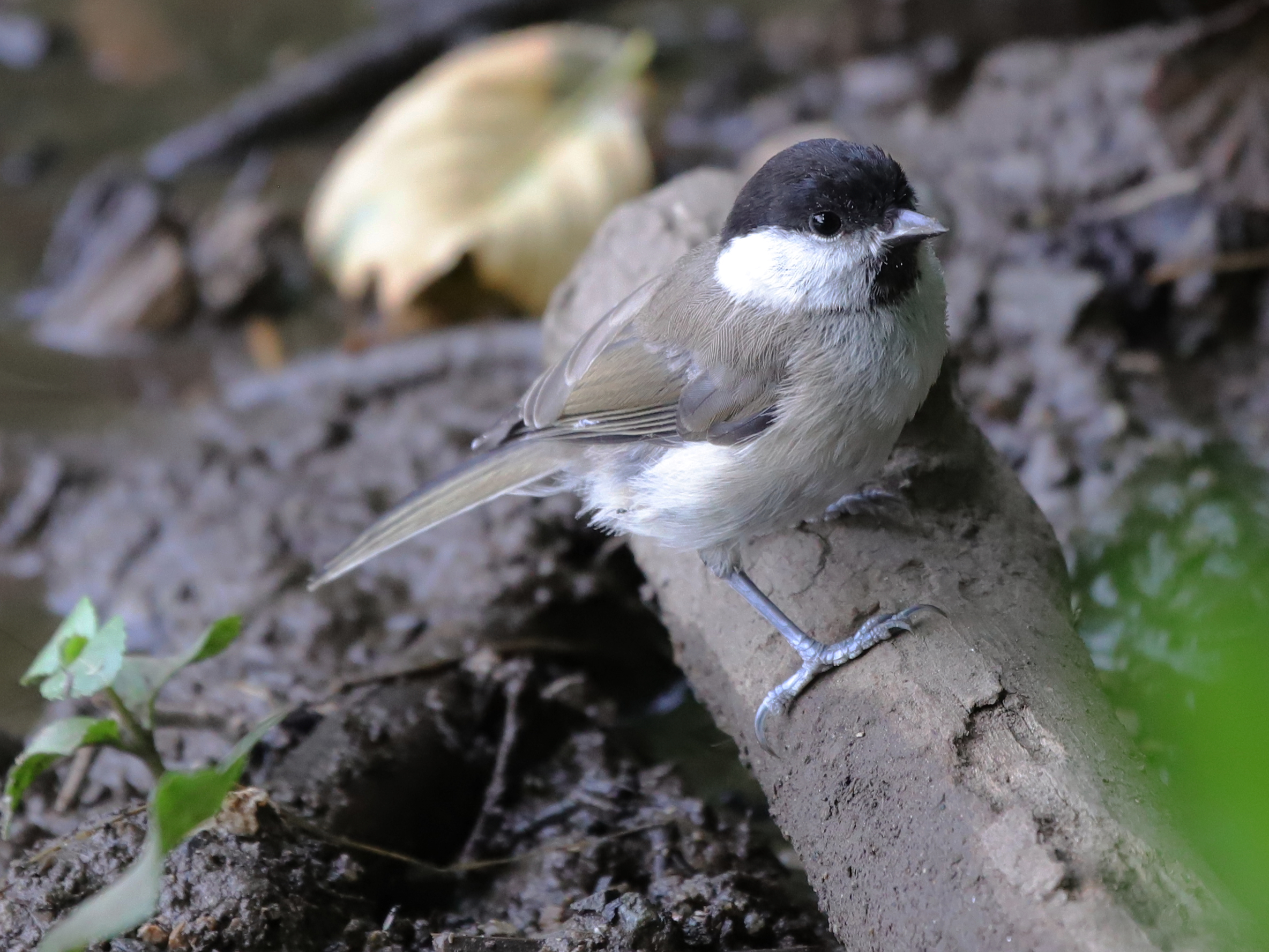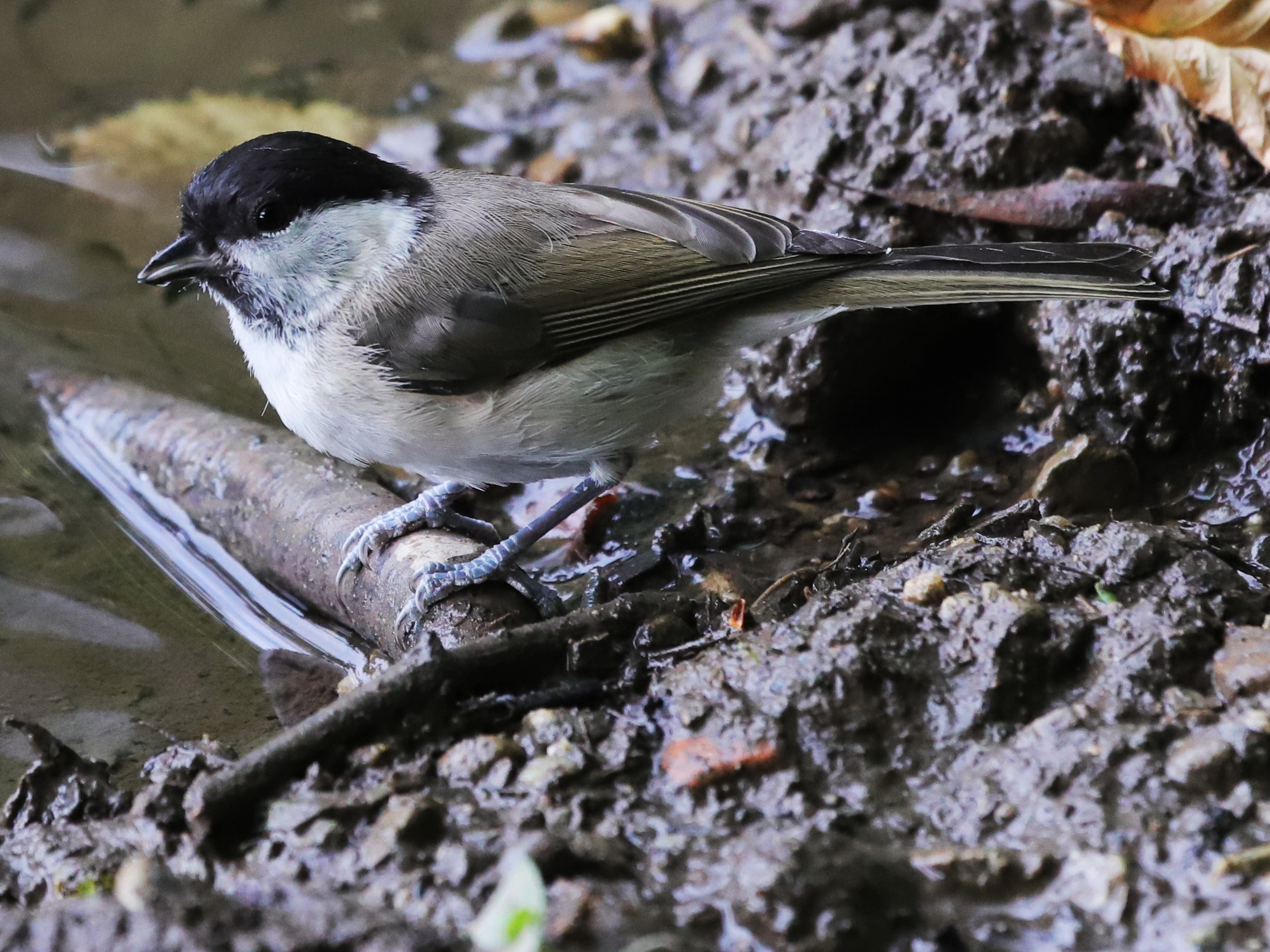 Une Mésange nonnette semble considérer avec circonspection la flaque d’eau sous ses pattes. J’y vais, j’y vais pas ?