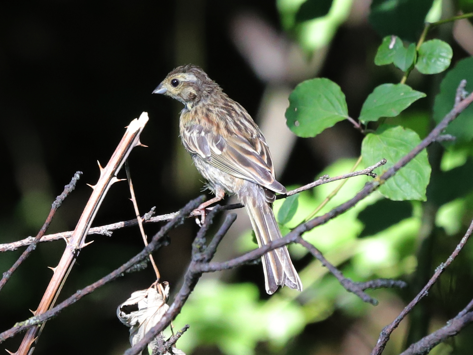 Ce jeune oiseau a le bec d’un bruant et une trace rouille dans le plumage du dos mais je n’ai pas encore pu l’identifier plus précisément.