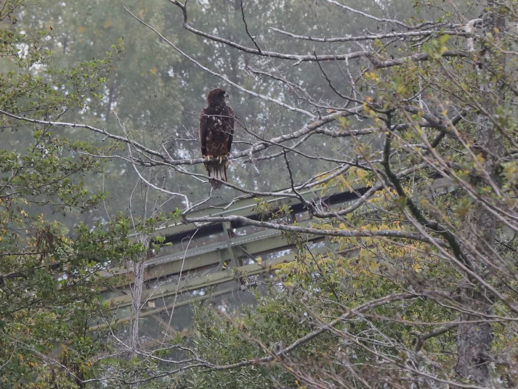 Un Epervier d’Europe, jeune de l’année je crois, est passé plus près, donnant la fausse impression d’être plus gros que l’aigle.