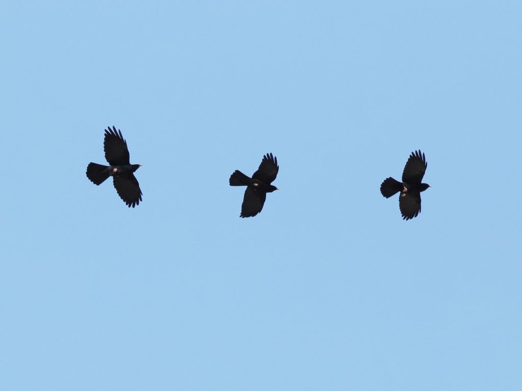 Oiseau montagnard, le Chocard à bec jaune est généralement occupé à picorer paisiblement ou à voler en bande …