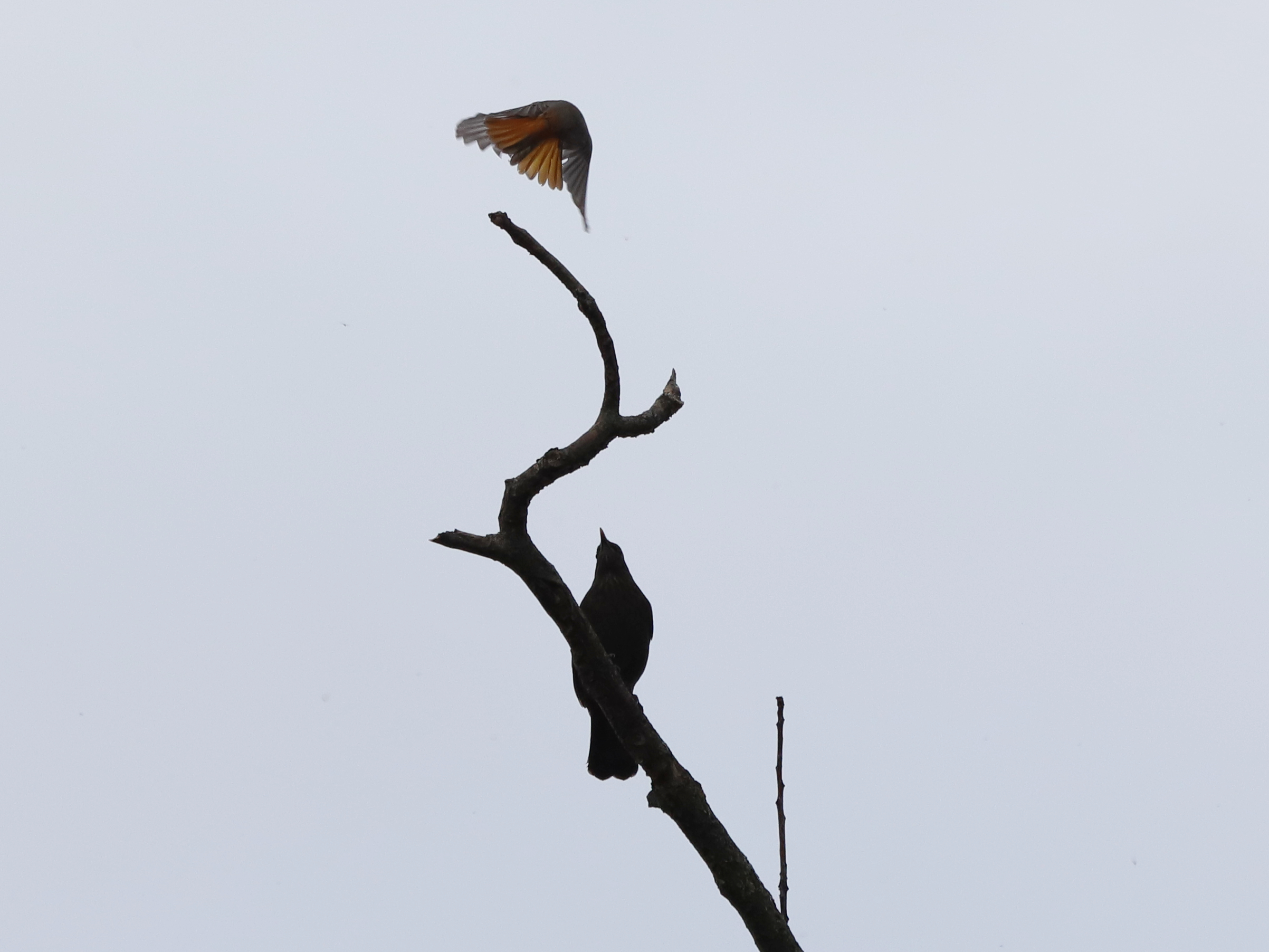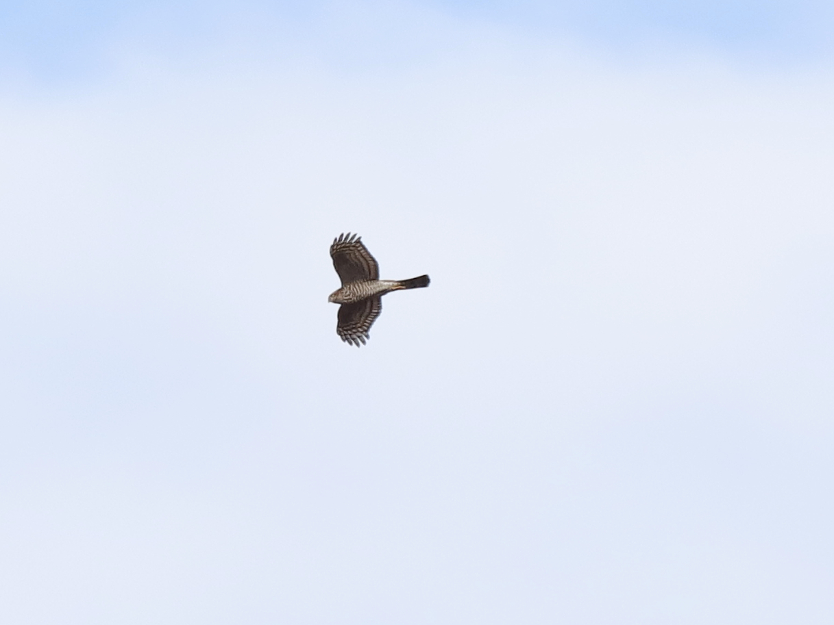 Un Epervier d’Europe, jeune de l’année je crois, est passé plus près, donnant la fausse impression d’être plus gros que l’aigle.