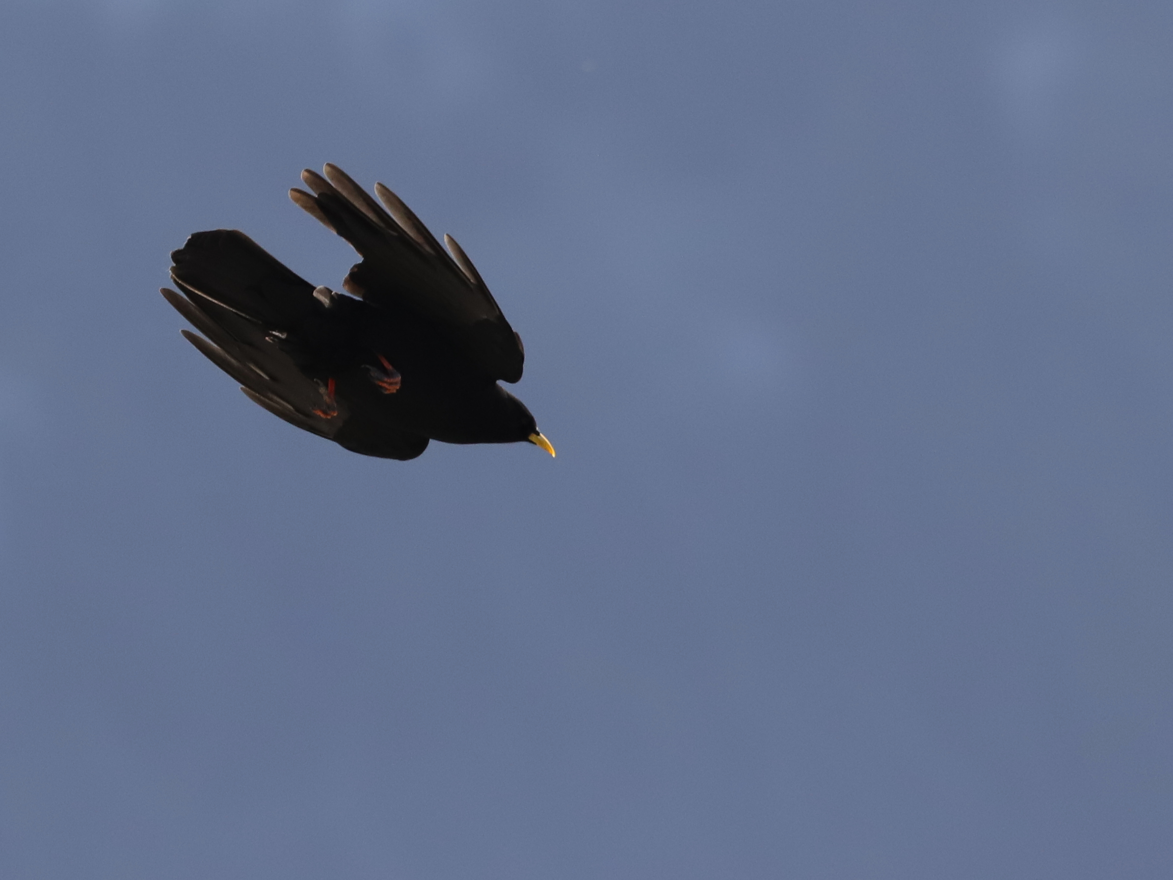 Oiseau montagnard, le Chocard à bec jaune est généralement occupé à picorer paisiblement ou à voler en bande …