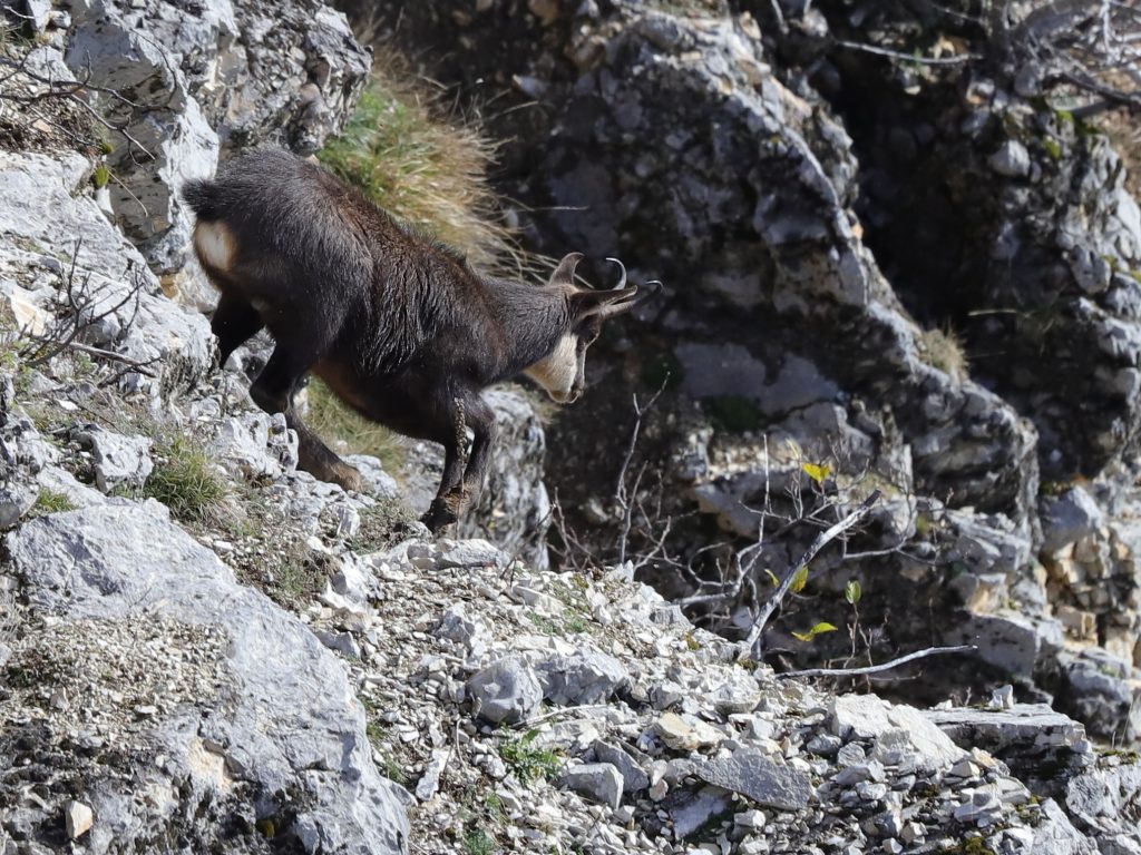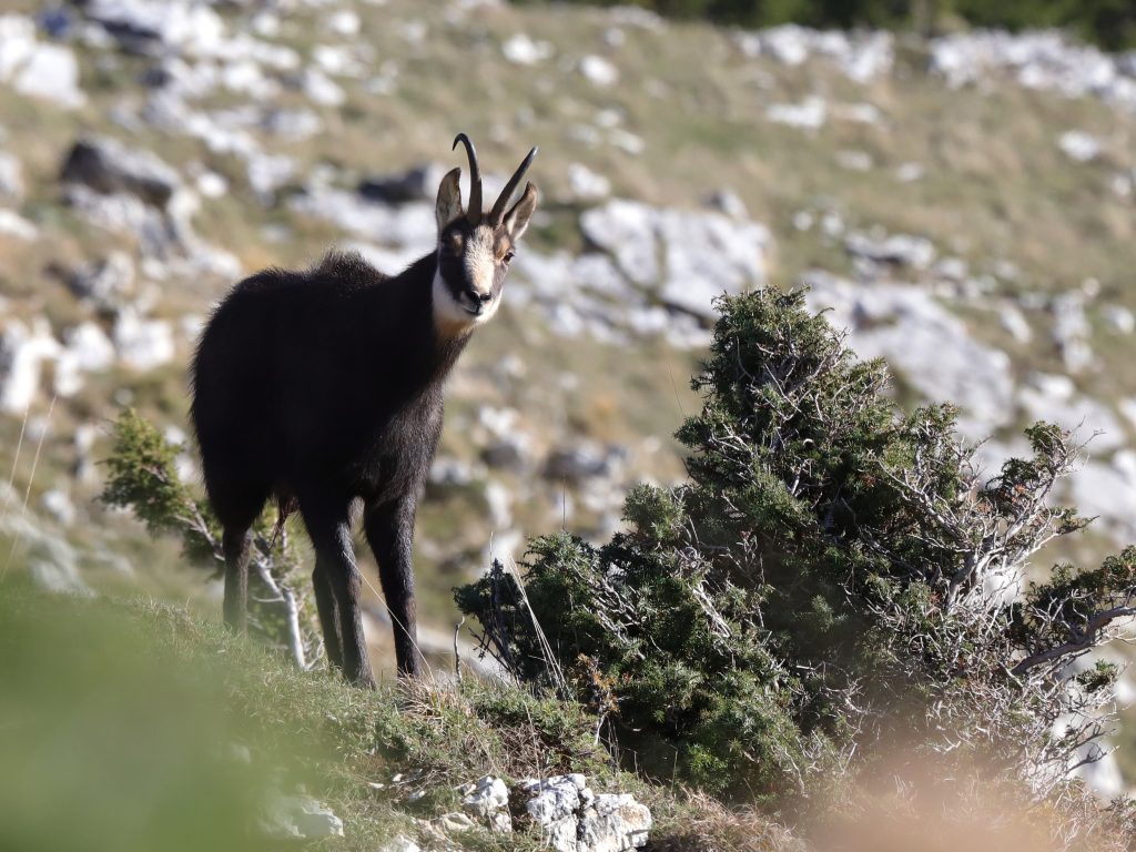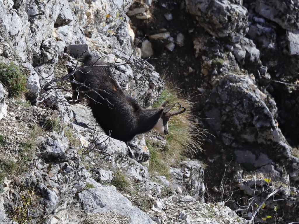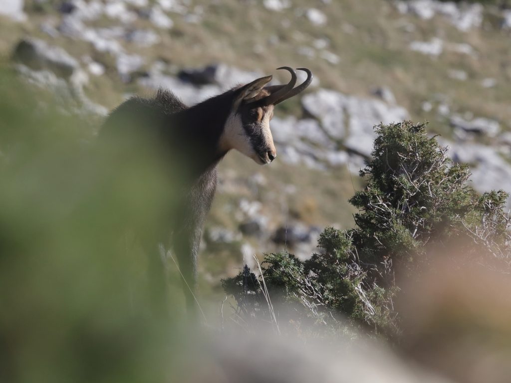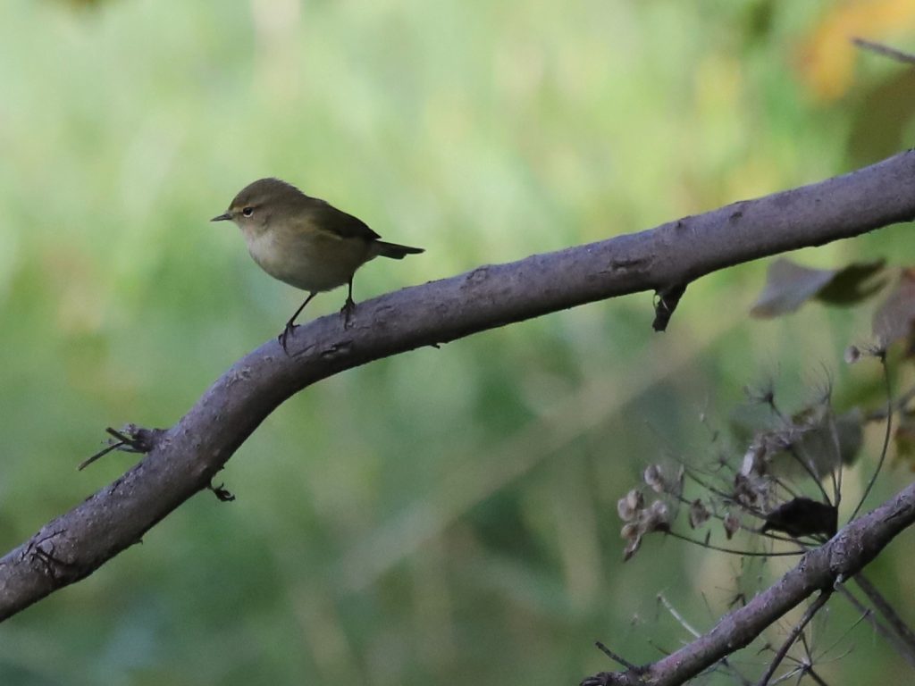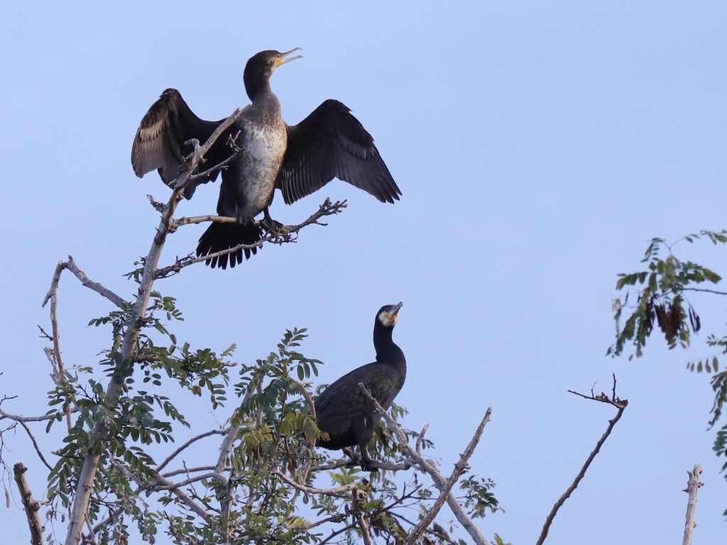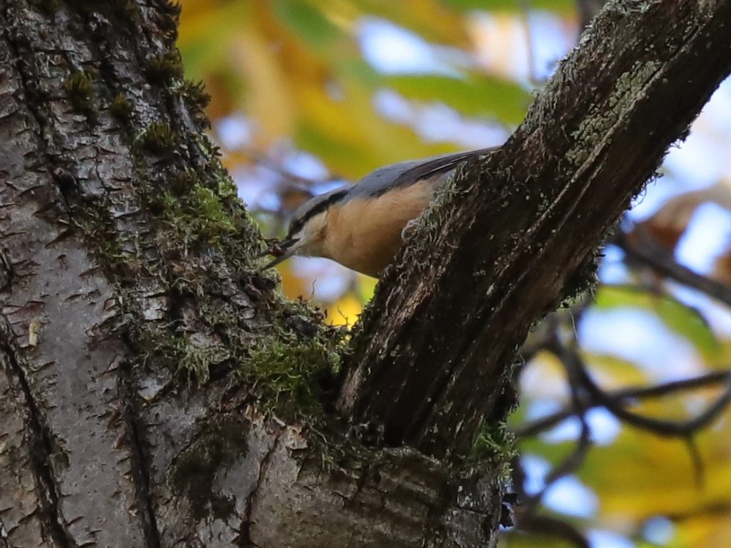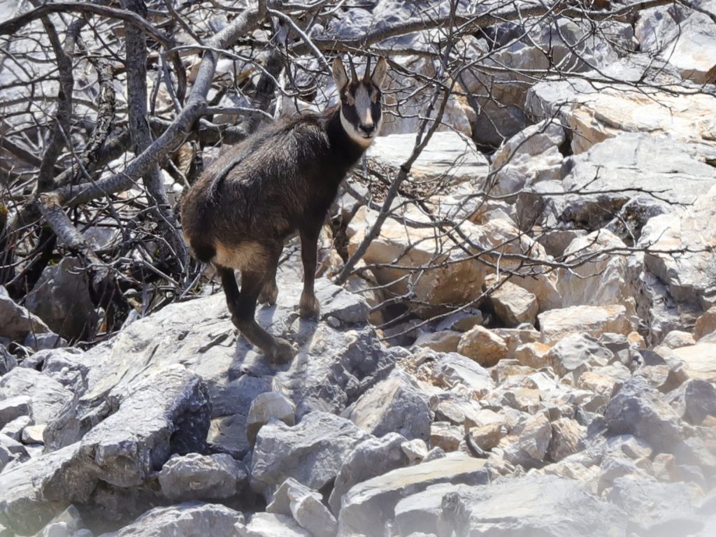 La voici, la menace. Je penche pour un Autour des palombes, femelle. Comme la tête est masquée par une branche et que l’oiseau était très loin, ce pourrait aussi être un Epervier d’Europe. Je reste dans le doute.