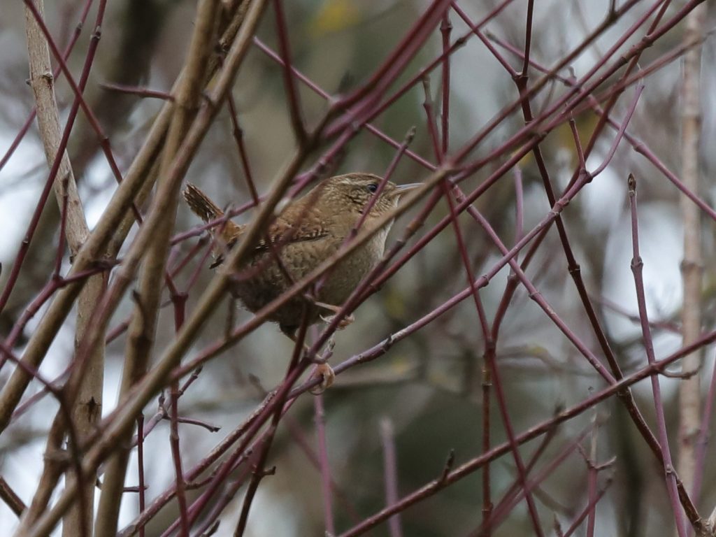 Les Troglodytes mignons sont assez faciles à observer à cette saison car ils courrent dans les buissons ou au sol à la recherche d’insectes. Mais leur mobilité les rend difficiles à photographier.