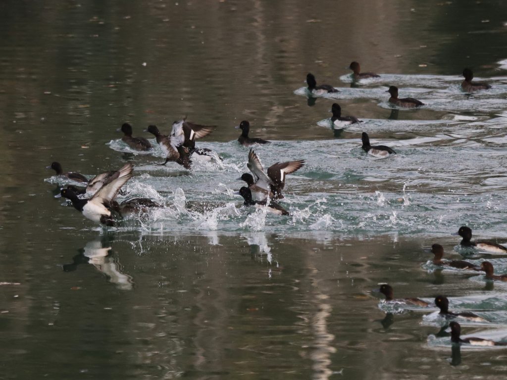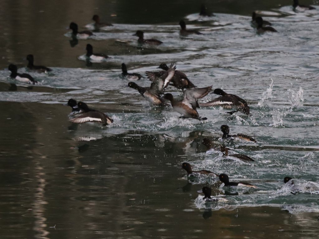 Après avoir photogaphié une femelle de Fuligule morillon, c’est toute la troupe qui s’est agitée frénétiquement, visiblement perturbée par une menace.