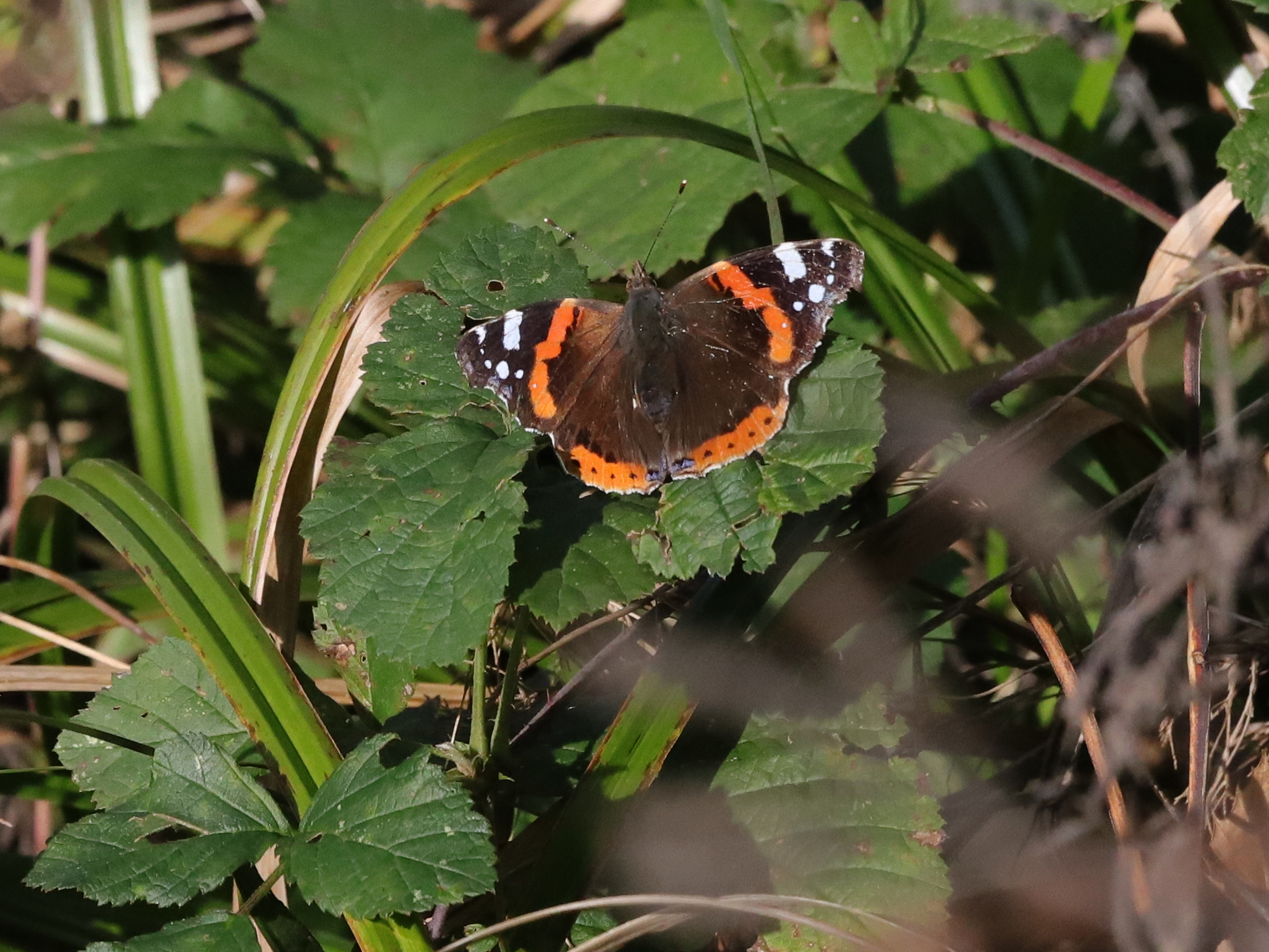 Une longue attente m’a donné le temps de voir deux Râles d’eau, en vol caractéristique avec les pattes pendantes, sans pouvoir les photographier. Une deuxième longue attente a enfin vu un Râle d’eau se faufiler dans la végétation. A peine de la taille d’un pigeon, il a le bec rouge, la joue gris-bleu et le corps brun, un excellent camouflage.