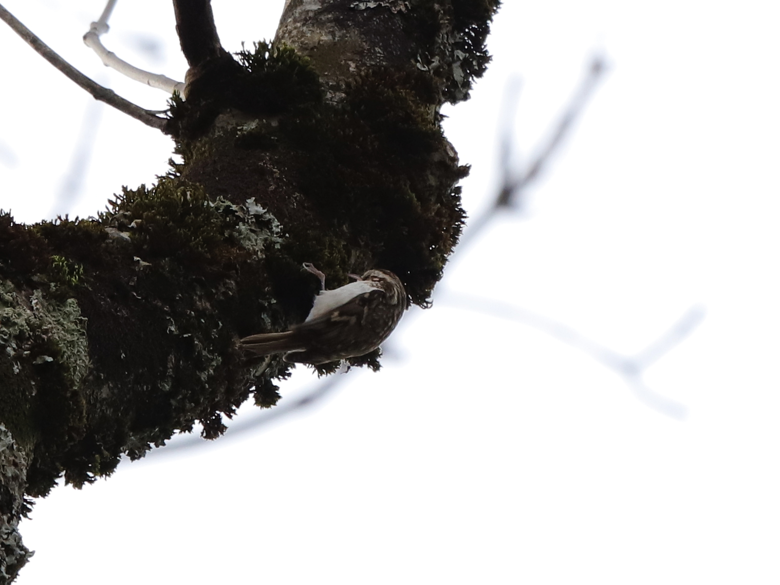 La voici, la menace. Je penche pour un Autour des palombes, femelle. Comme la tête est masquée par une branche et que l’oiseau était très loin, ce pourrait aussi être un Epervier d’Europe. Je reste dans le doute.