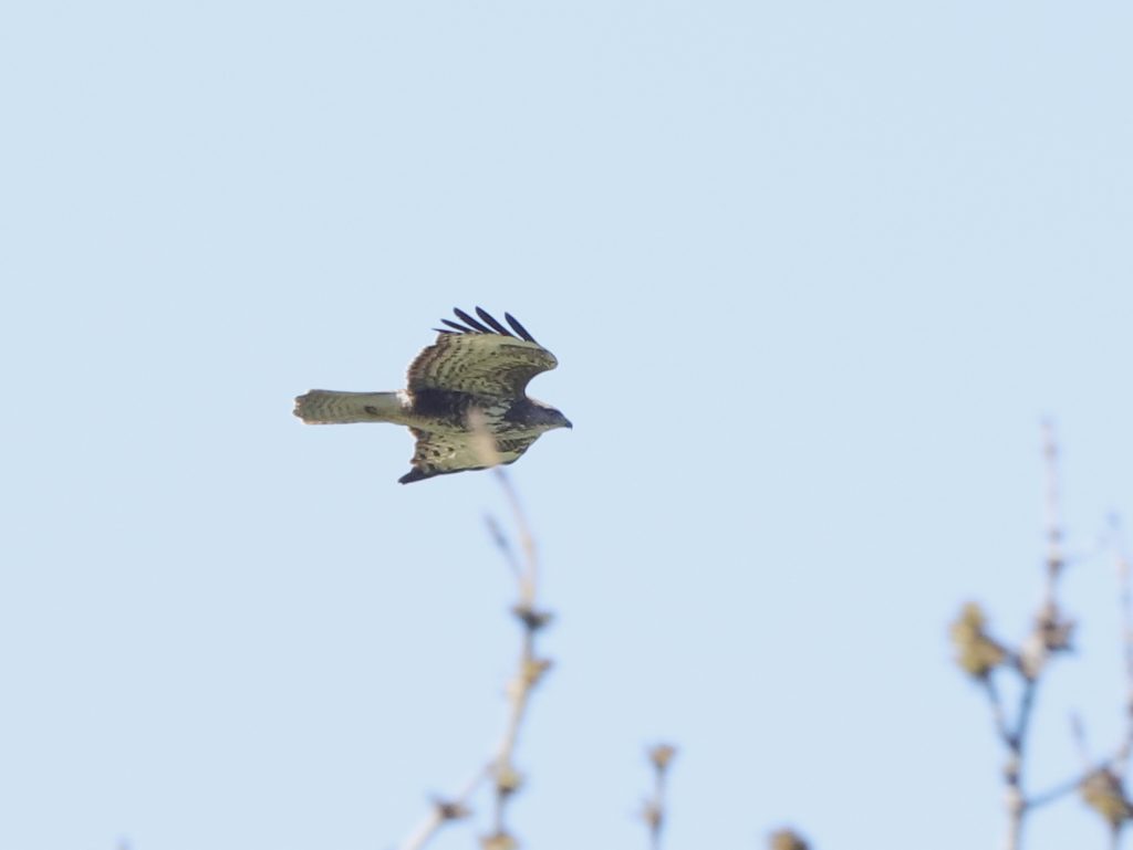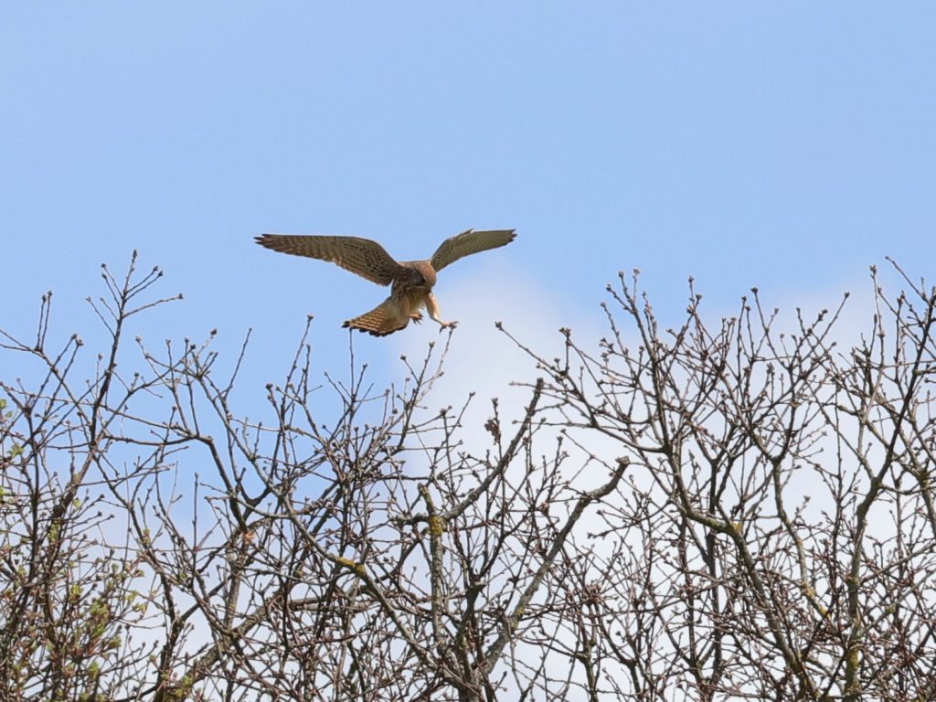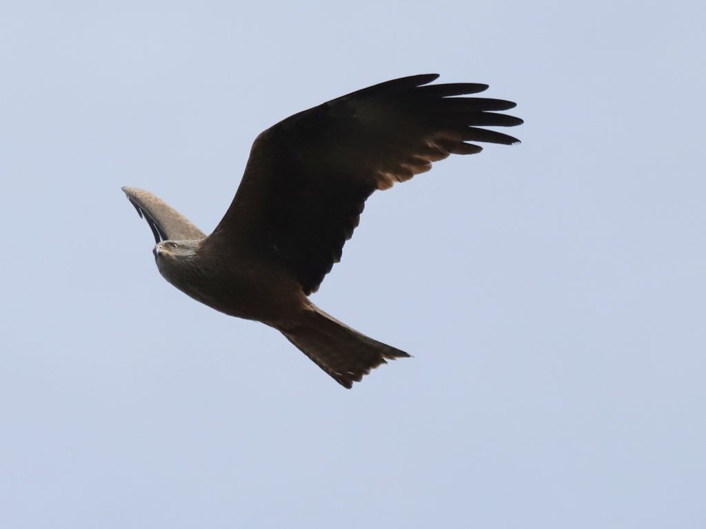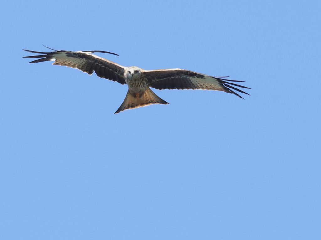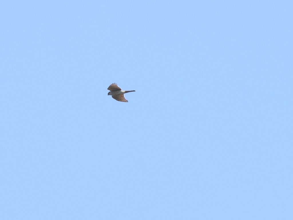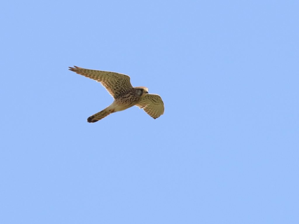 Il y a, naturellement, encore des rapaces qui migrent, comme ce Faucon crécerelle, qui partage quelques instants le ciel avec un Milan noir.