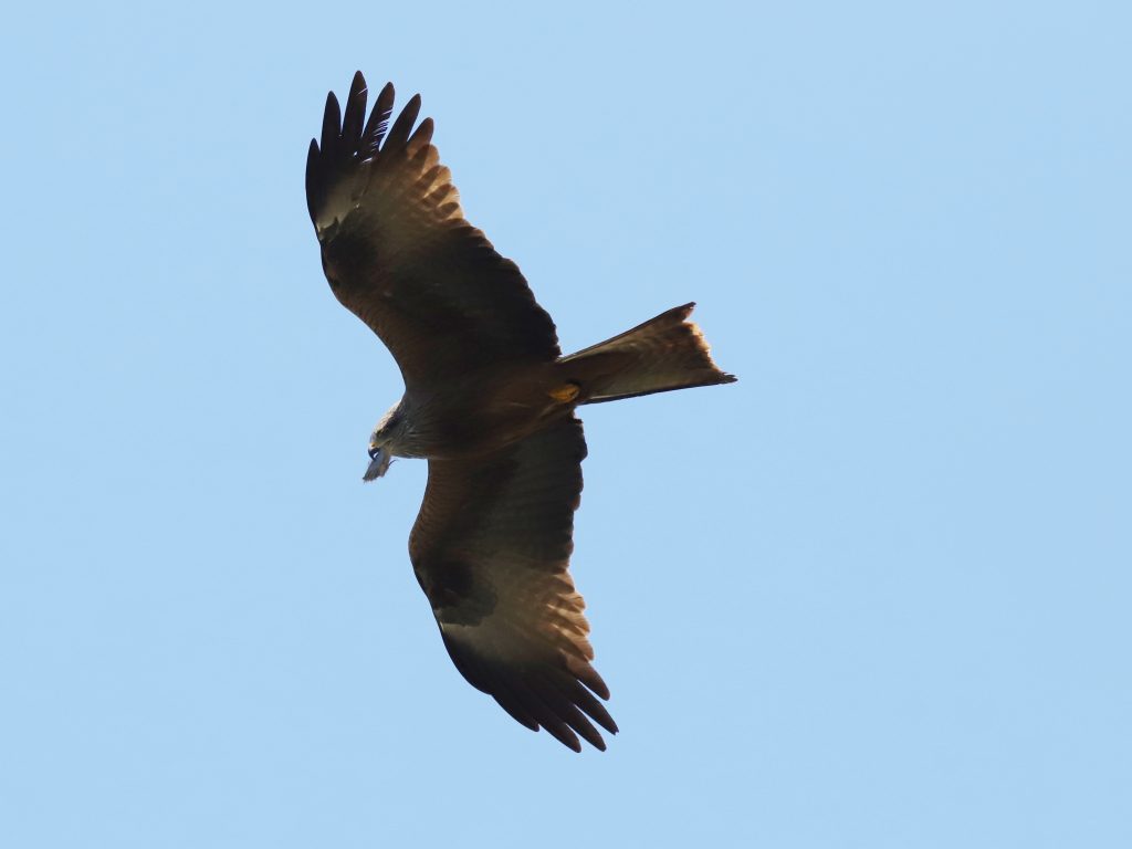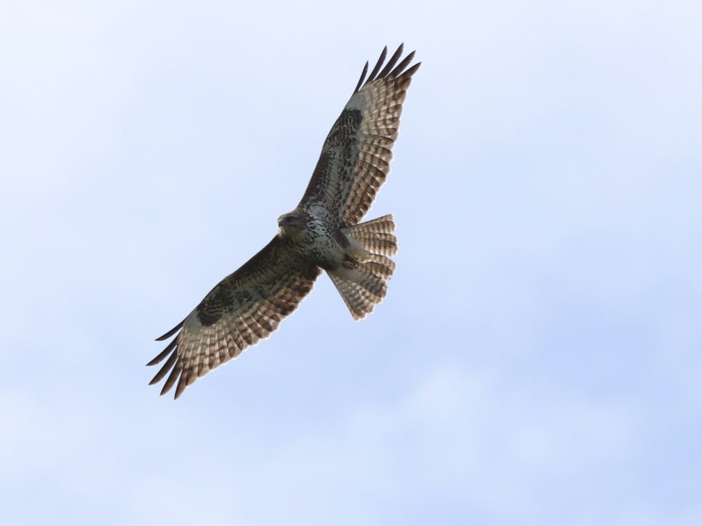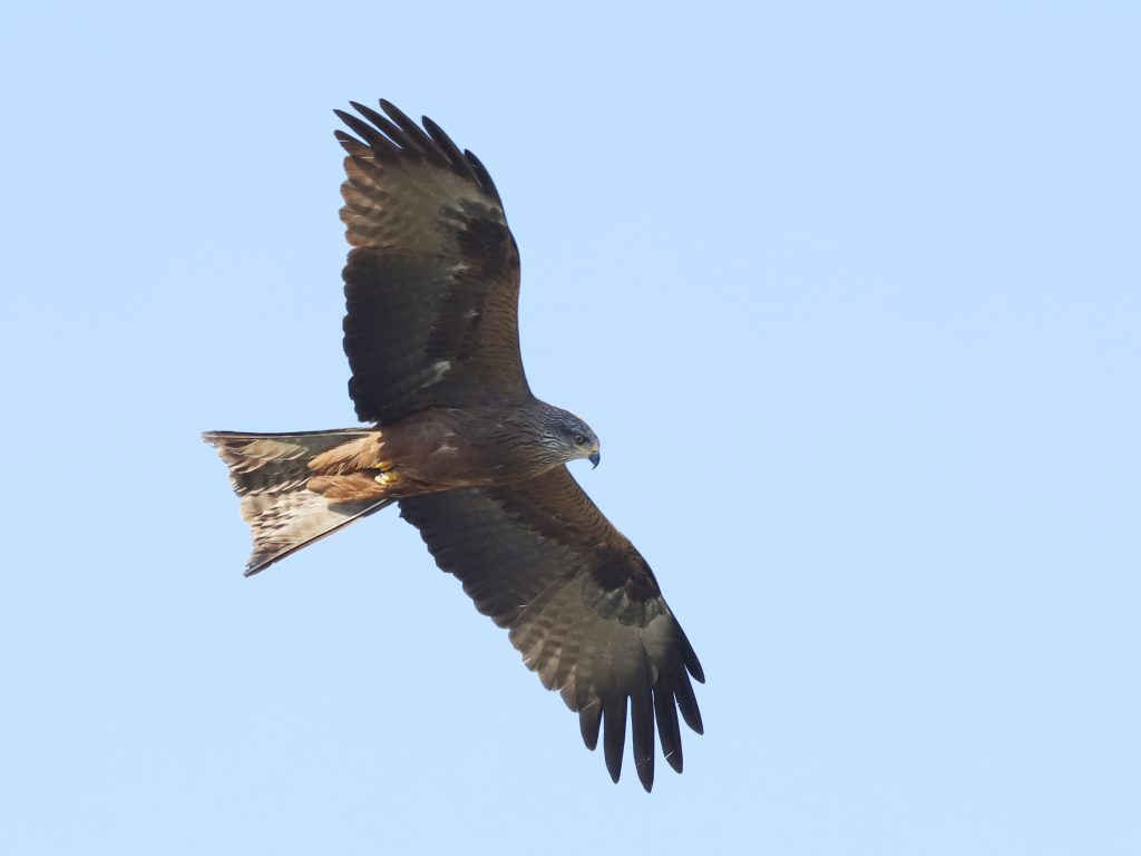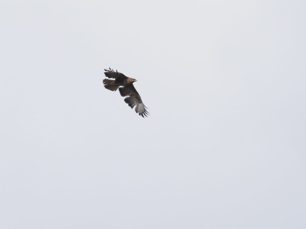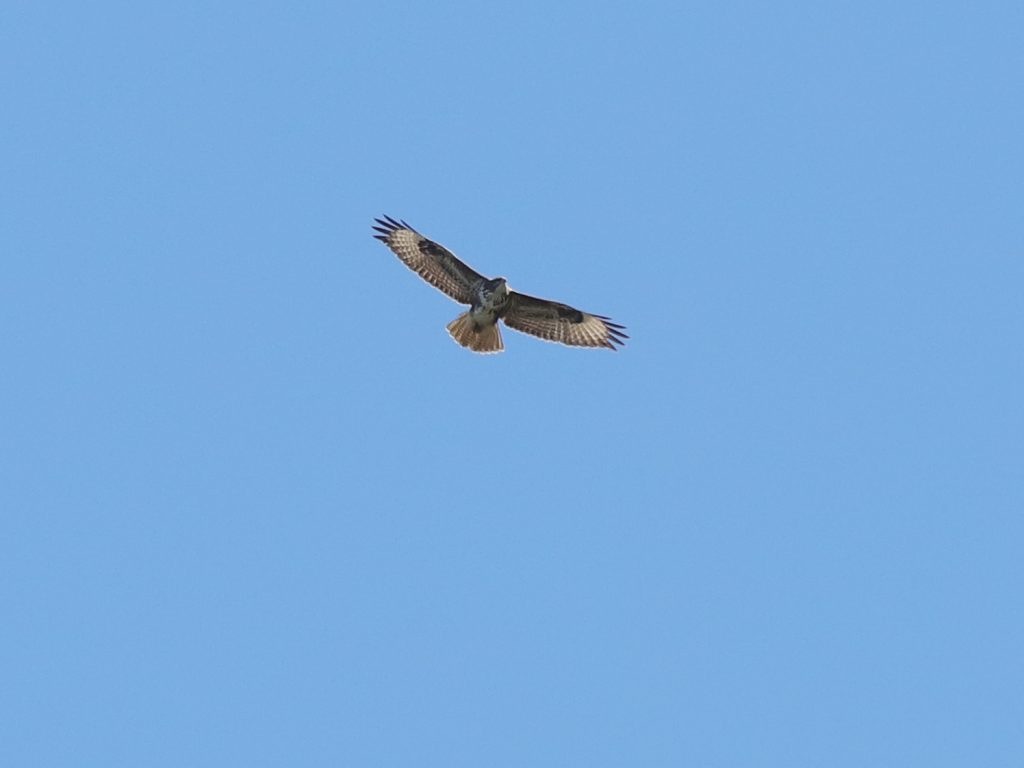 Il y a, naturellement, encore des rapaces qui migrent, comme ce Faucon crécerelle, qui partage quelques instants le ciel avec un Milan noir.